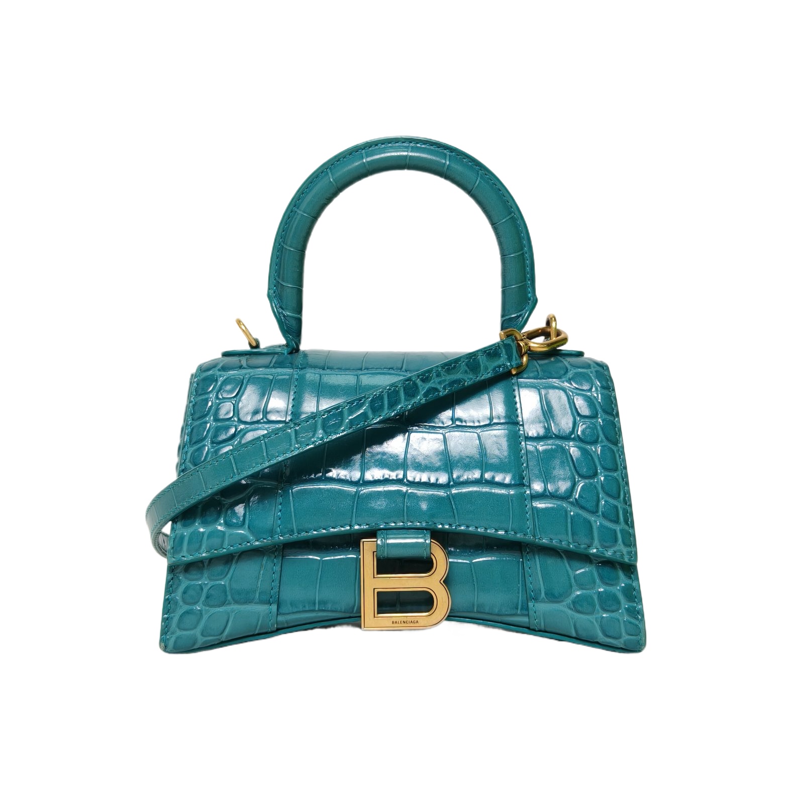 Balenciaga Hourglass XS Bag in Green Crocodile Embossed Leather