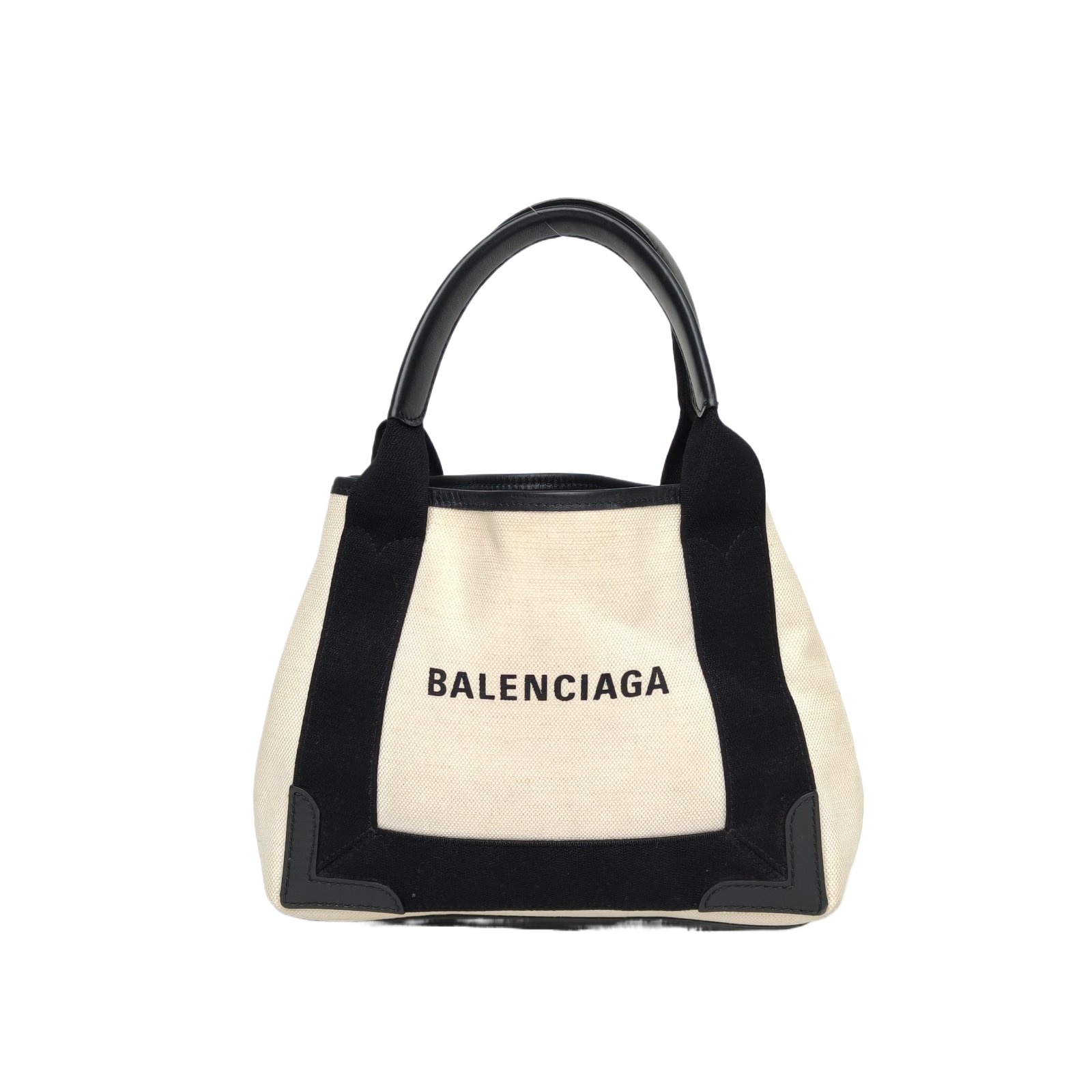Balenciaga Navy Cabas XS Black And White Canvas Tote Bag