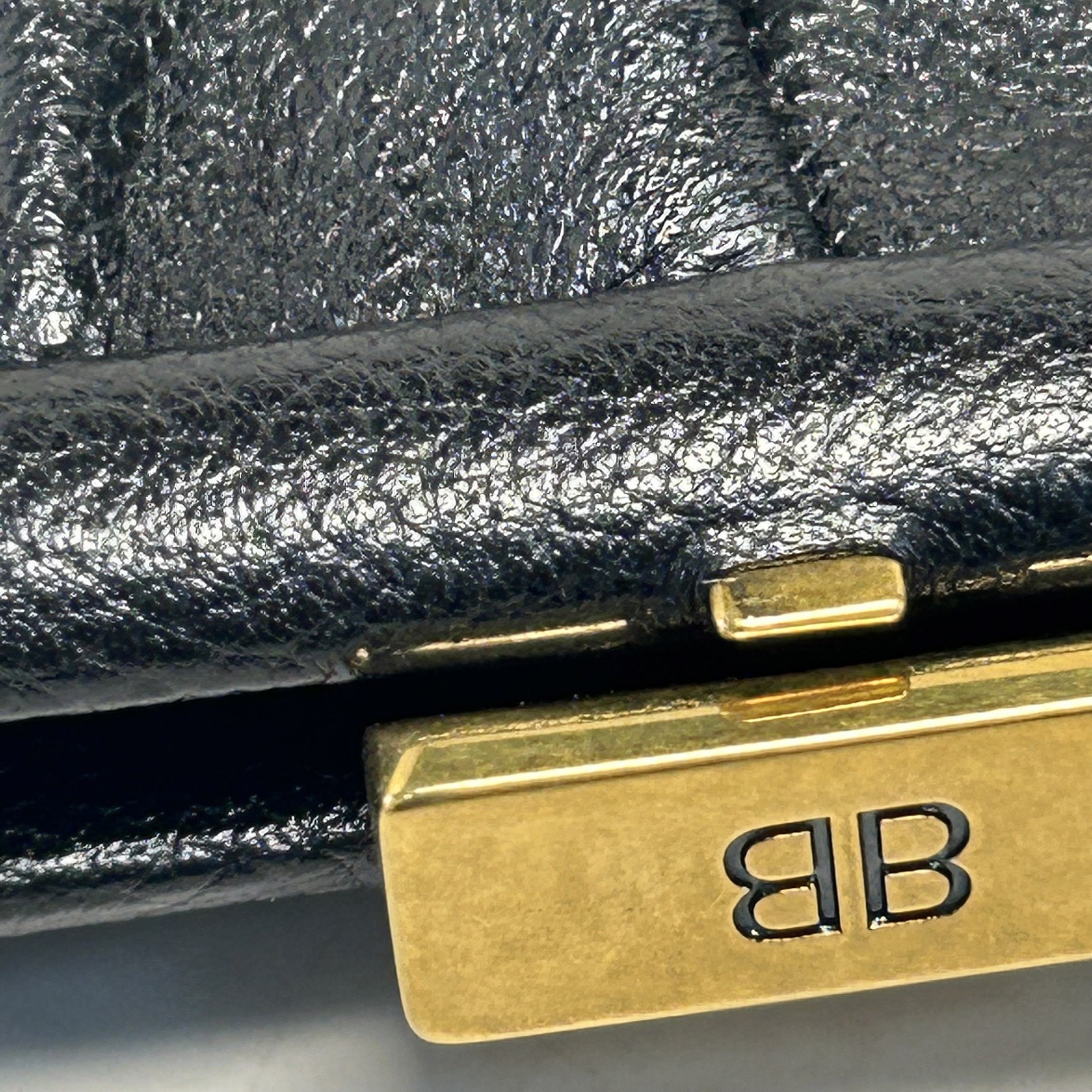 Embodying Balenciaga’s bold urban style, the Cloud Bag is crafted from smooth black leather with polished gold hardware. Its slouchy, structured silhouette blends casual charm with luxury, making it a perfect everyday accessory.