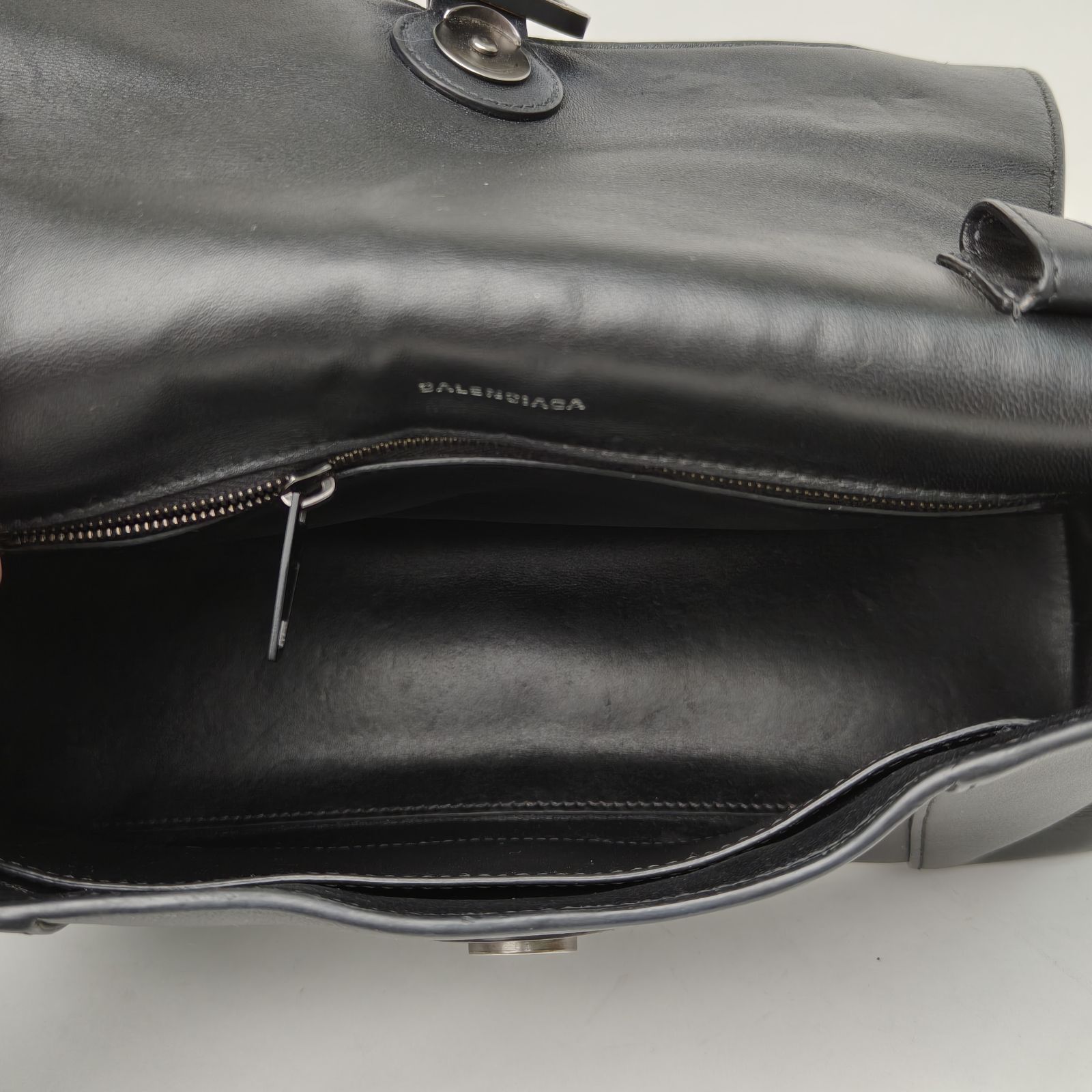 Crafted from black leather with iconic Balenciaga hardware, this Downtown small 30 bag features a detachable strap, a minimalist daily luxury piece.
