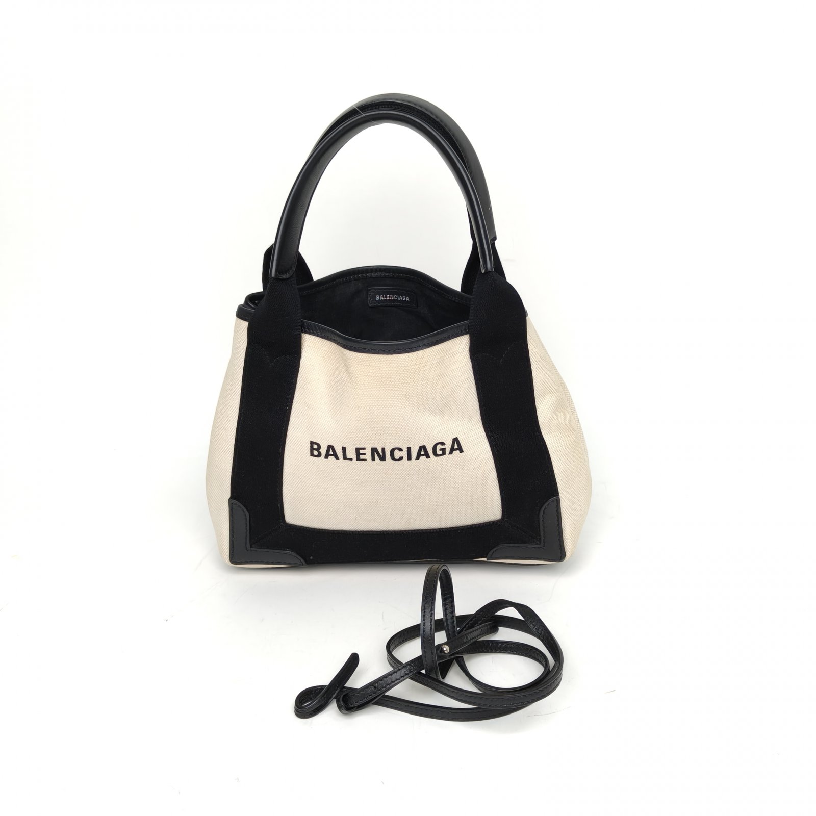 Balenciaga Navy Cabas XS Black And White Canvas Tote Bag