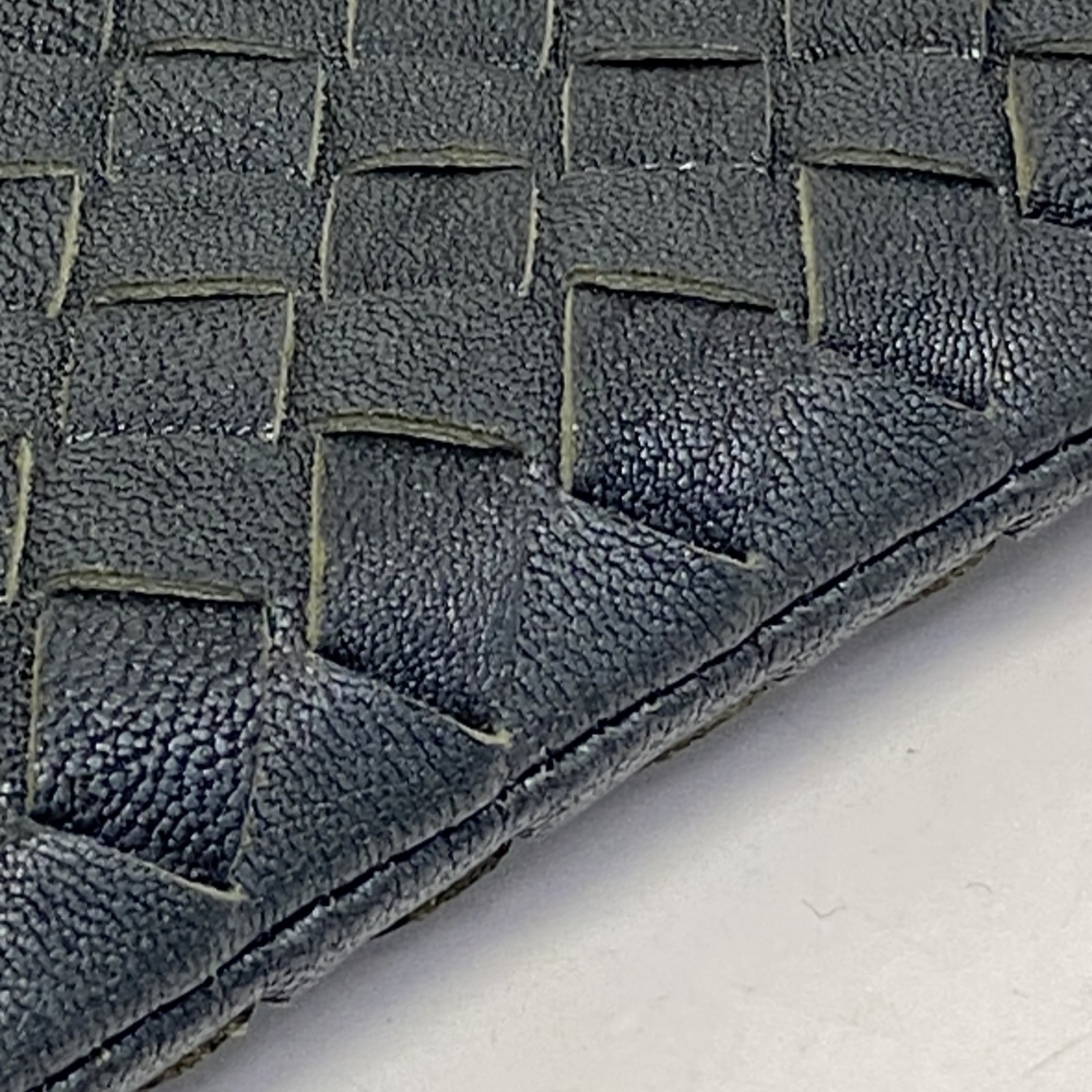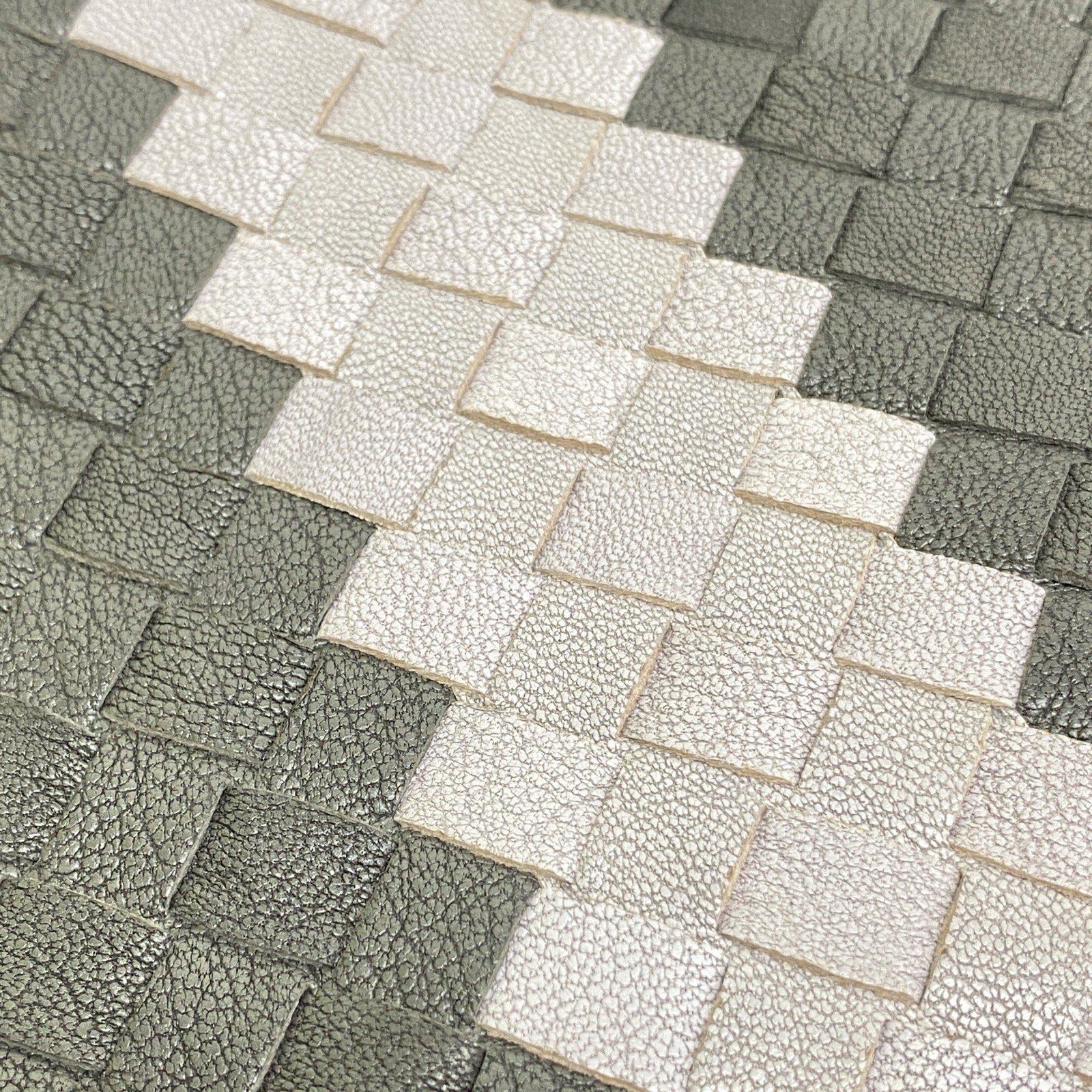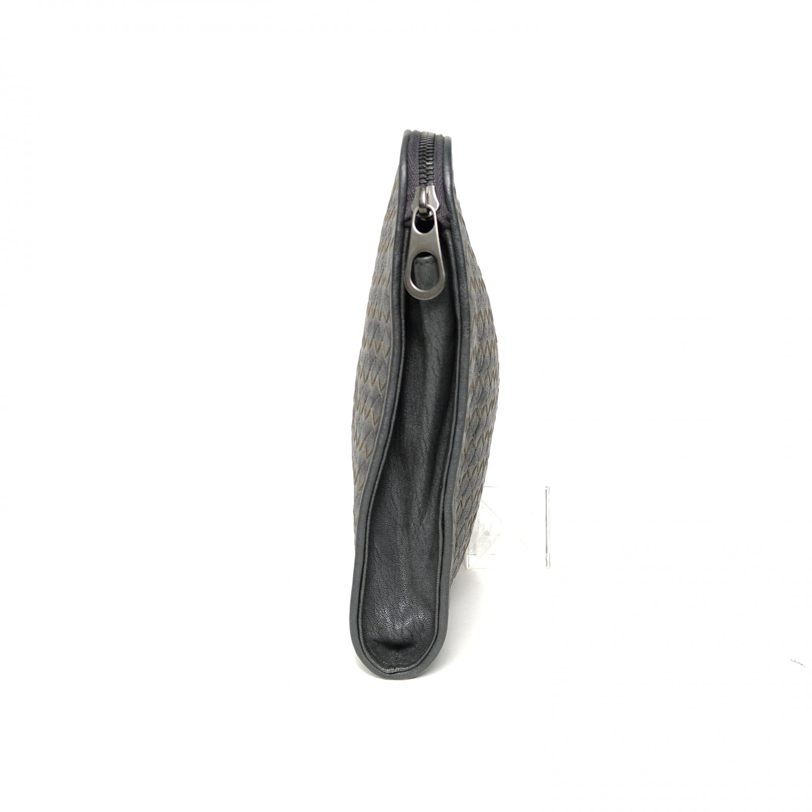 This Bottega Veneta clutch bag is made of two-tone leather with signature intrecciato weaving, offering a sleek and minimalist design for evening use.