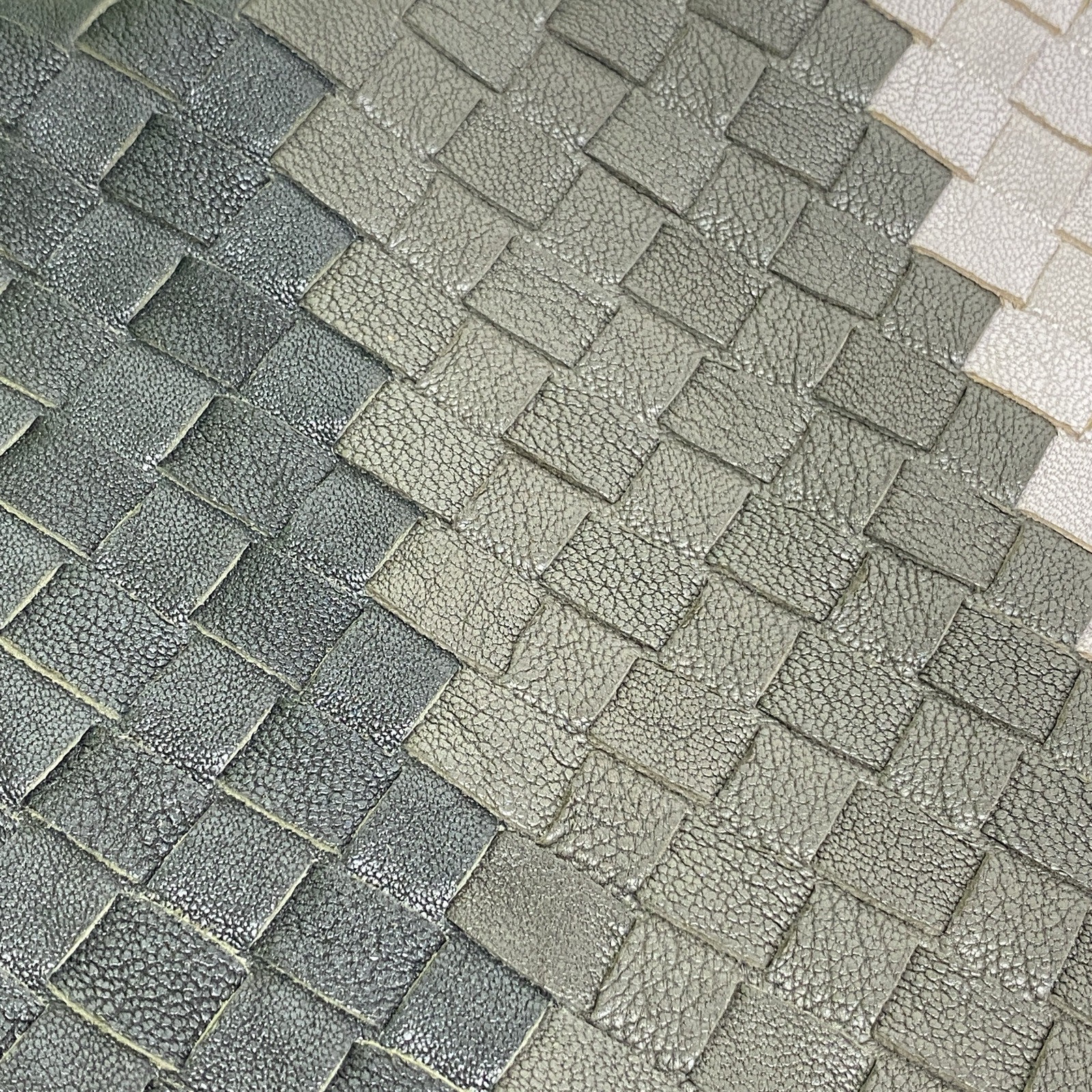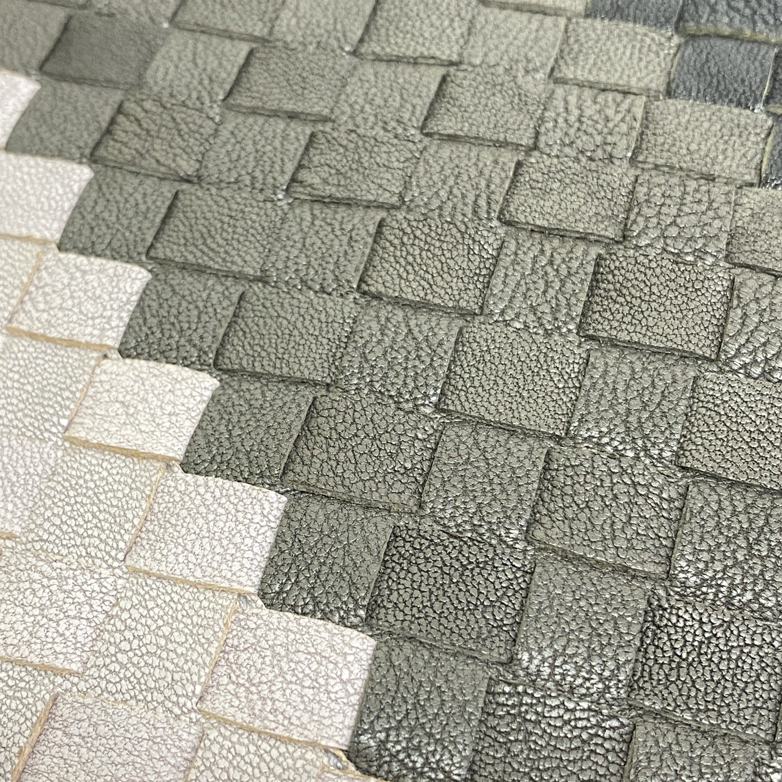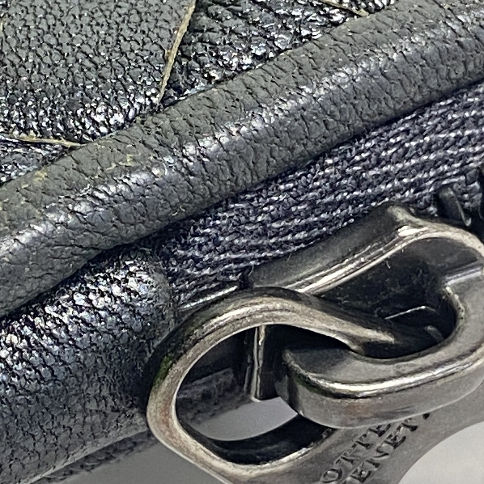 This Bottega Veneta clutch bag is made of two-tone leather with signature intrecciato weaving, offering a sleek and minimalist design for evening use.