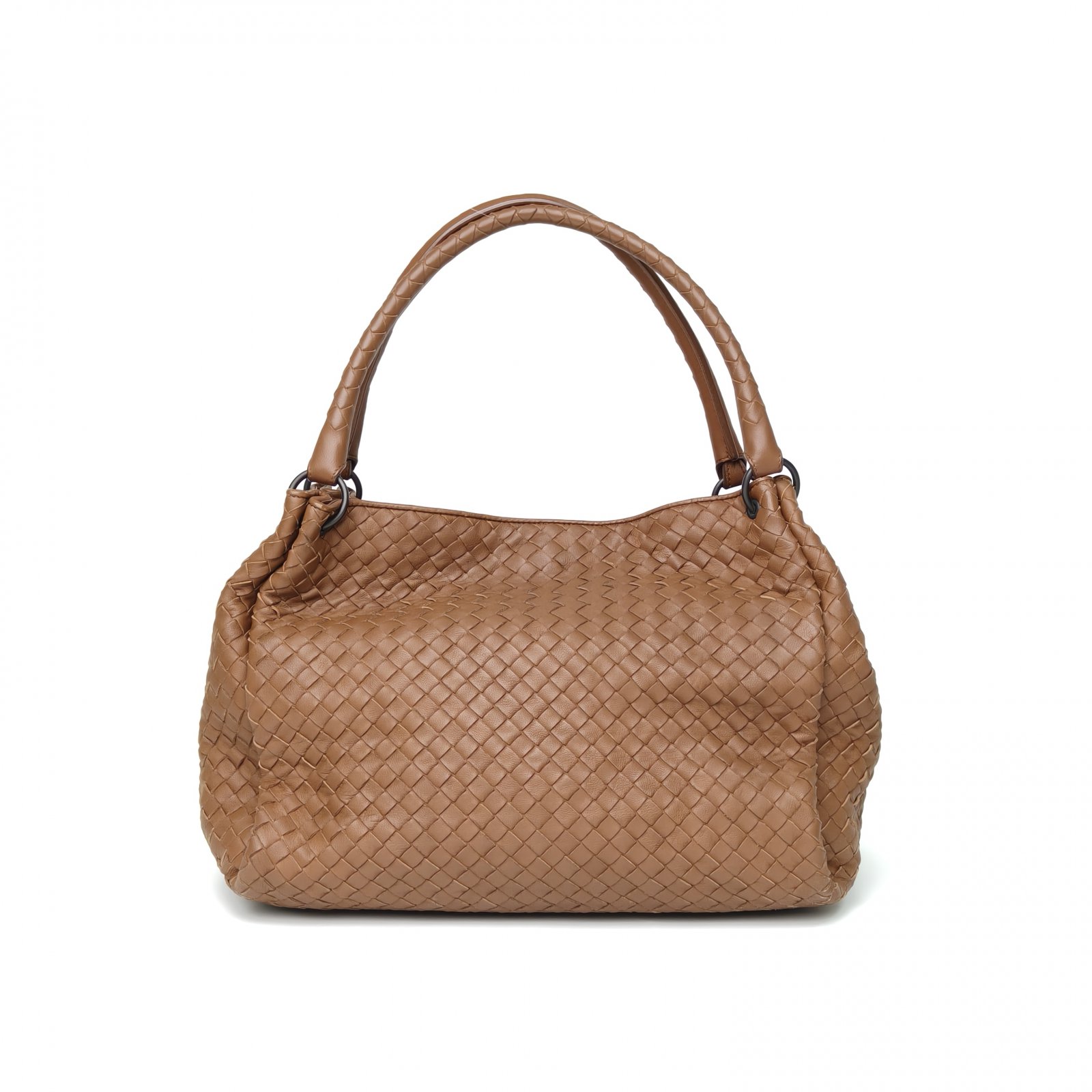 Bottega Veneta Small Shoulder Bag in Brown Intrecciato Leather