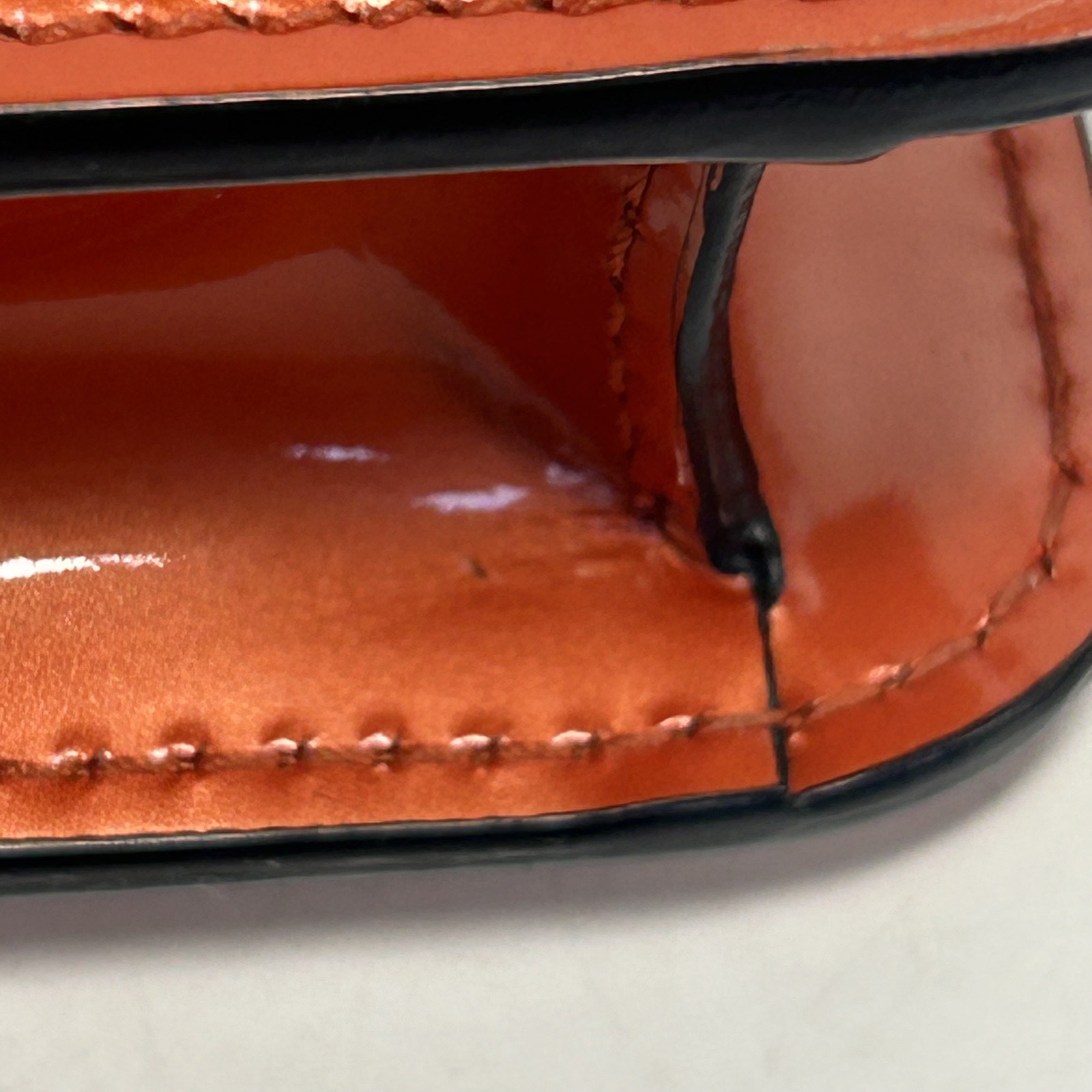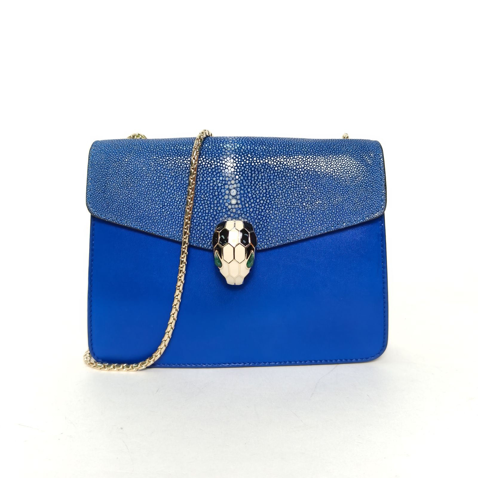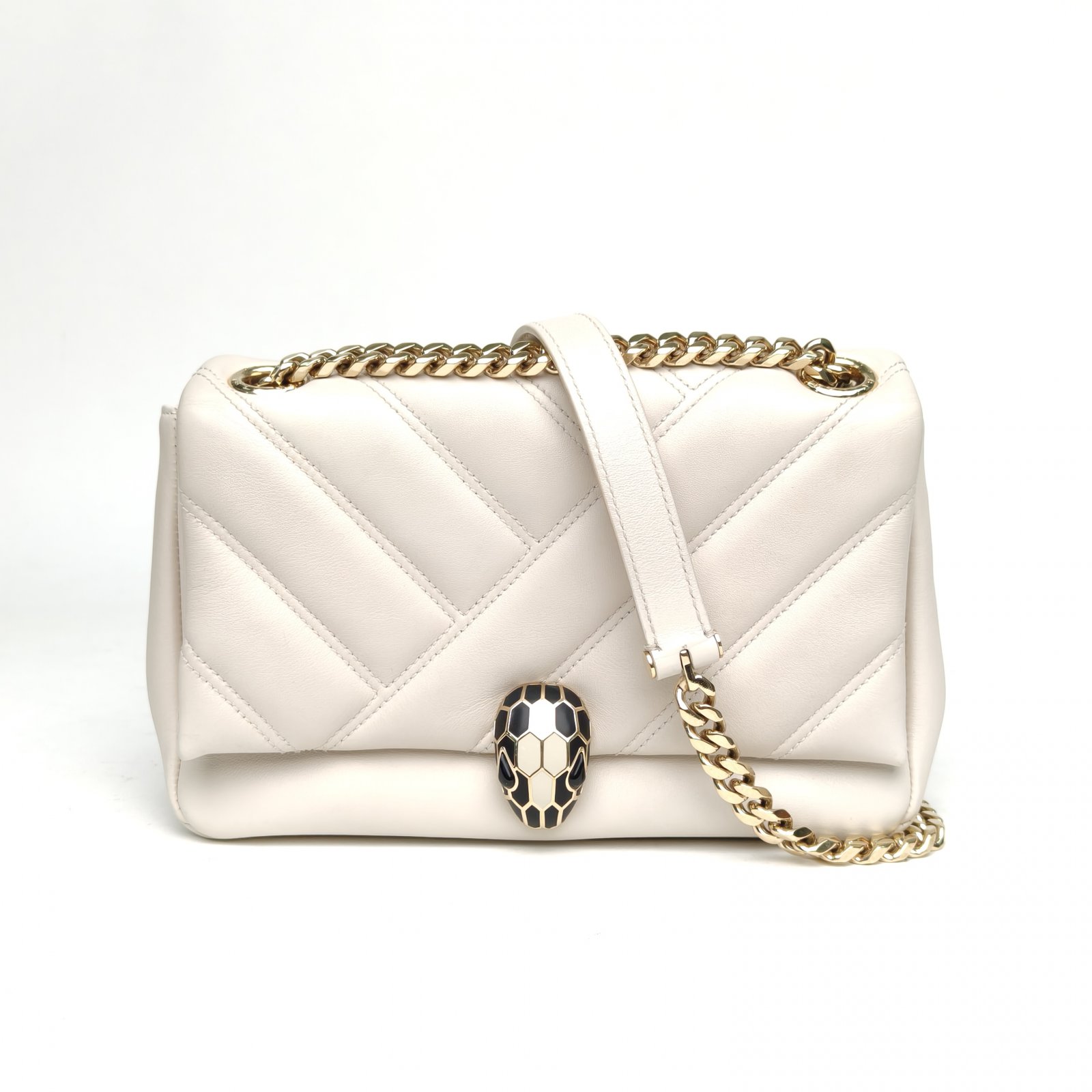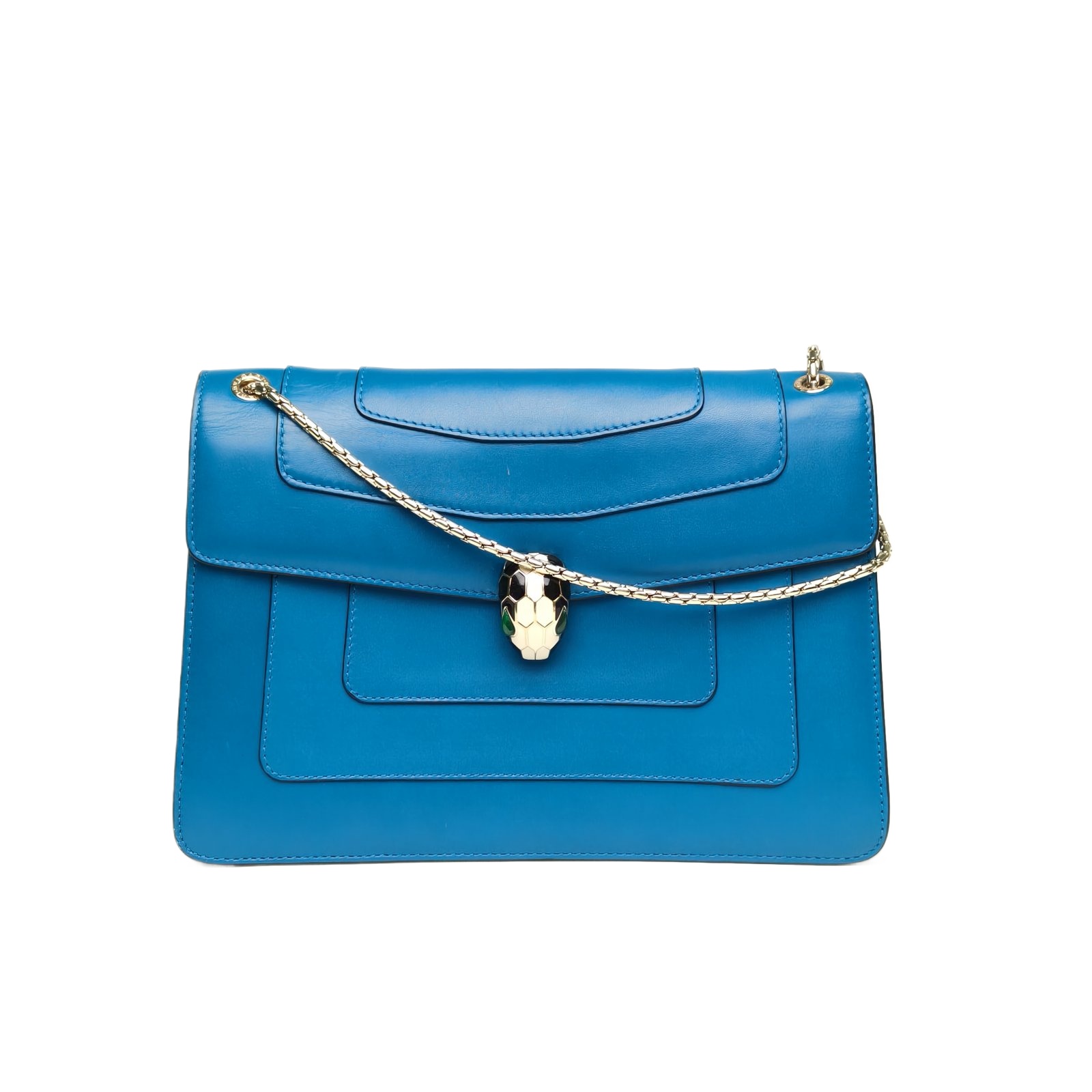 Embodying Bulgari’s iconic serpentine elegance, the Serpenti Forever Horizontal Bag is crafted from smooth orange leather with a signature snake-head clasp. Its structured silhouette blends timeless luxury with modern practicality, making it a perfect accessory for elevating any ensemble.