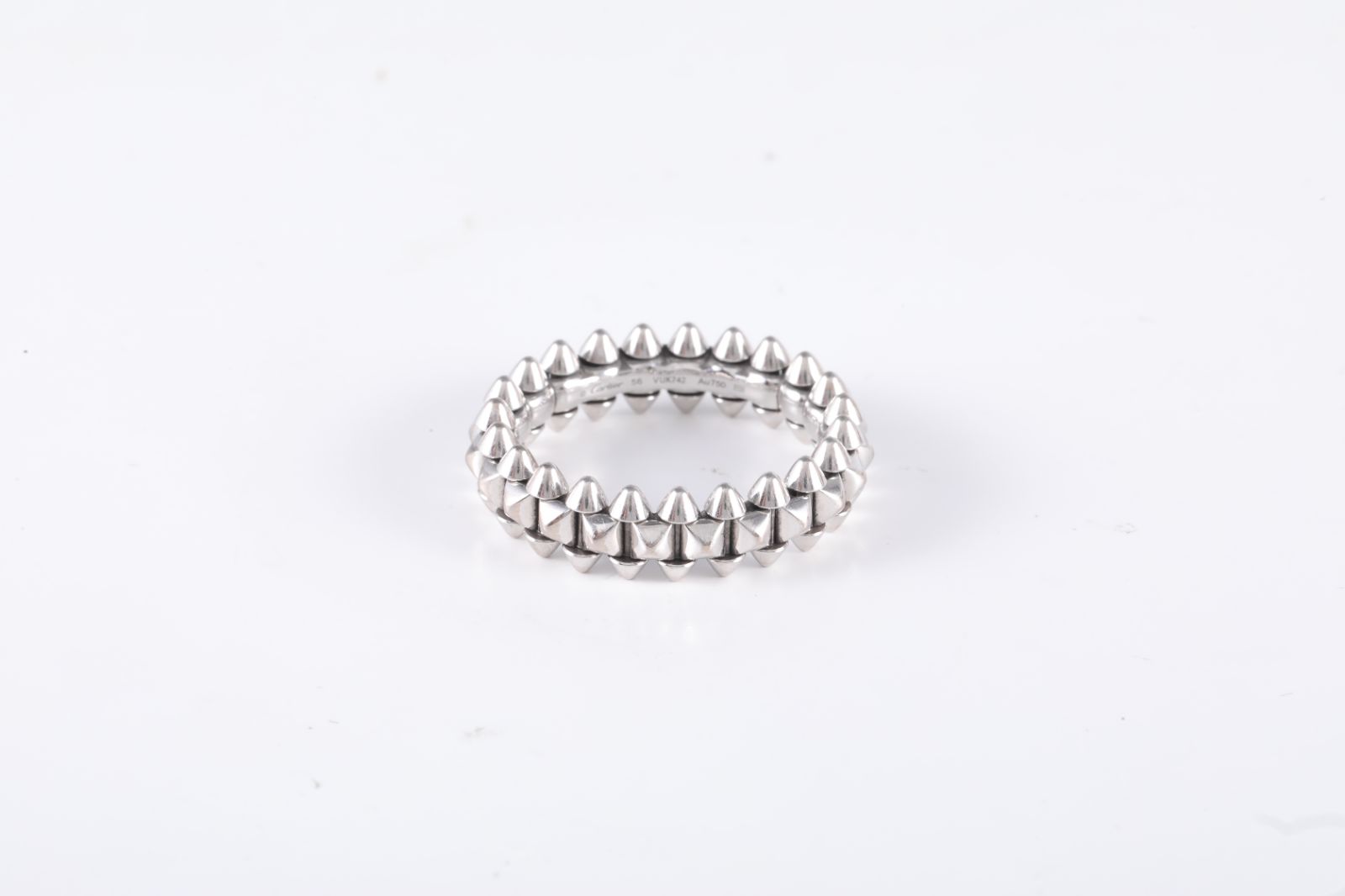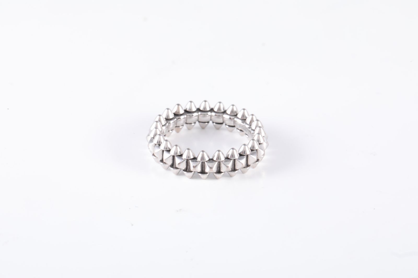 The Cartier Clash 18K gold ring is a dynamic and contemporary band crafted from sleek 18K white gold featuring the signature deconstructed nail motif with intersecting lines and textured edges, complete with modern geometric accents, superior Italian artistry and edgy Cartier innovation in pure white gold. Feel free to click below for more consultation.