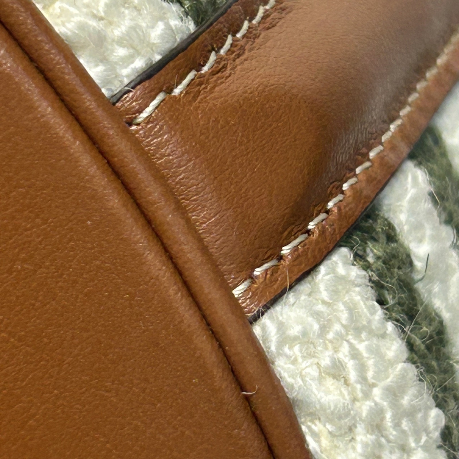 Crafted from colorblock wool with iconic Triomphe hardware, this Bucket 16 bag features a detachable strap, a stylish daily luxury piece.