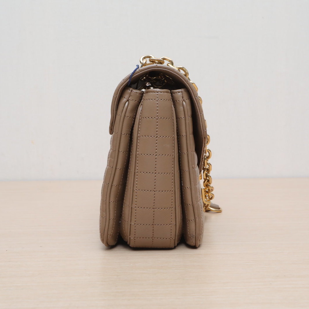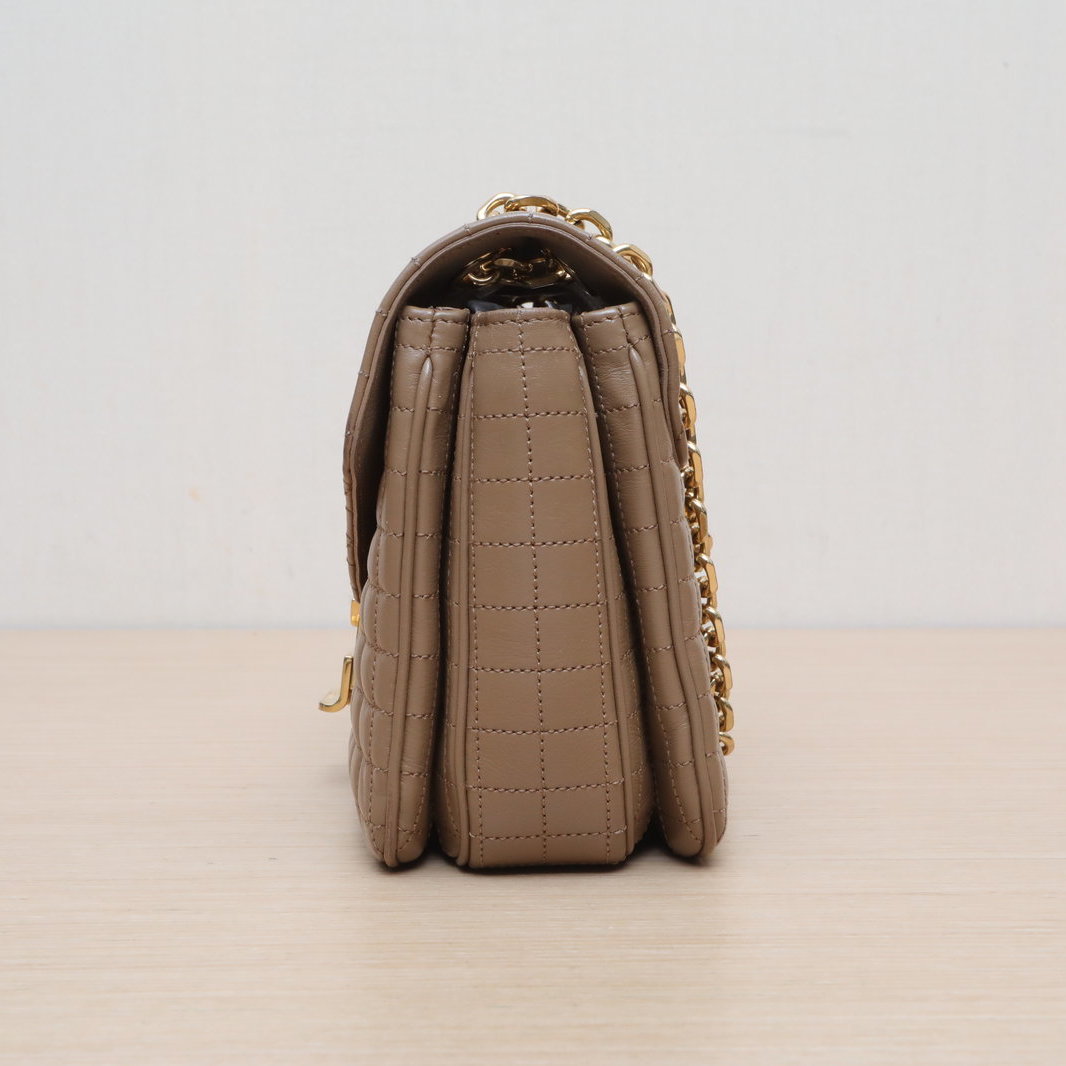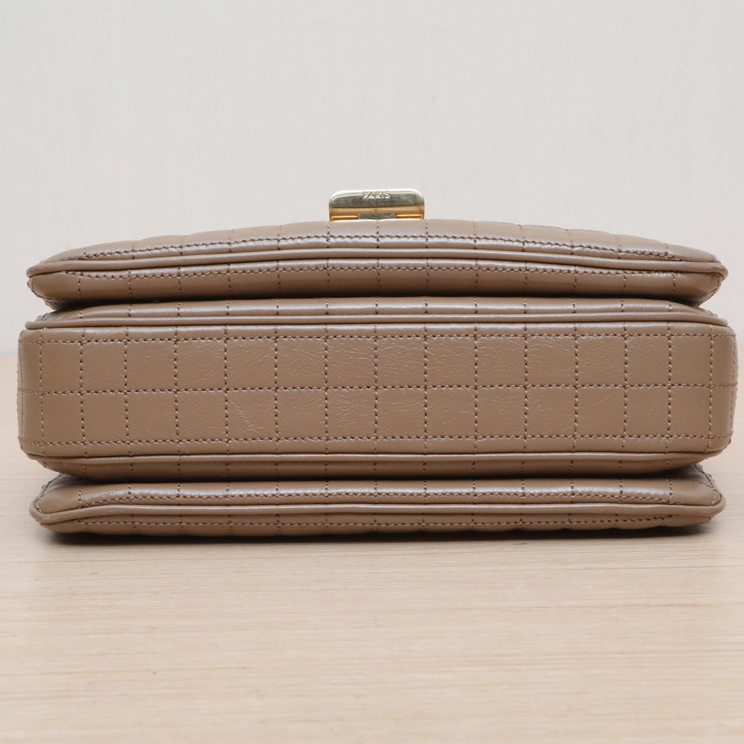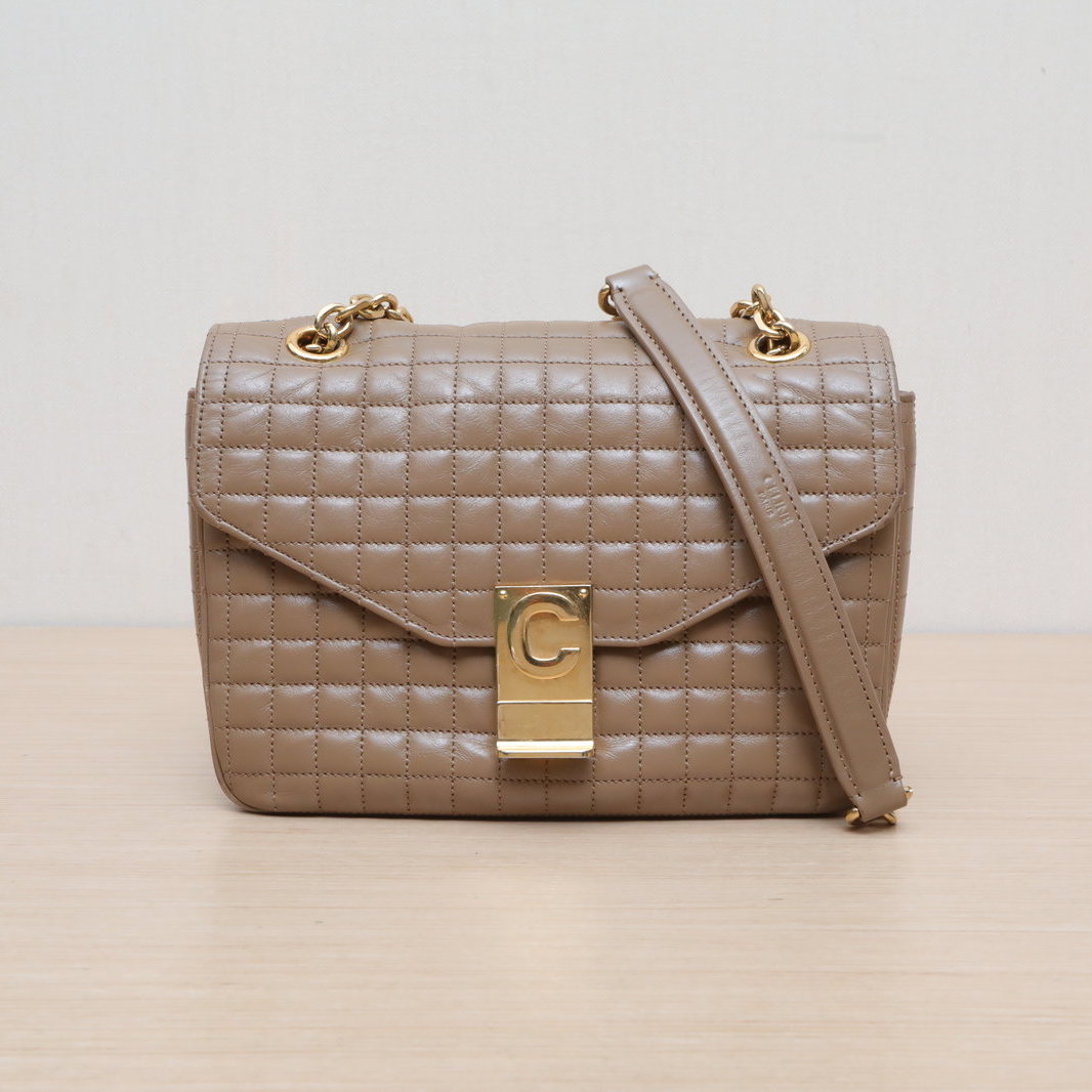 Made from beige leather with iconic quilted pattern and 16 bag hardware, this C BAG medium bag features a detachable strap, embodying Celine’s minimalist luxury.
