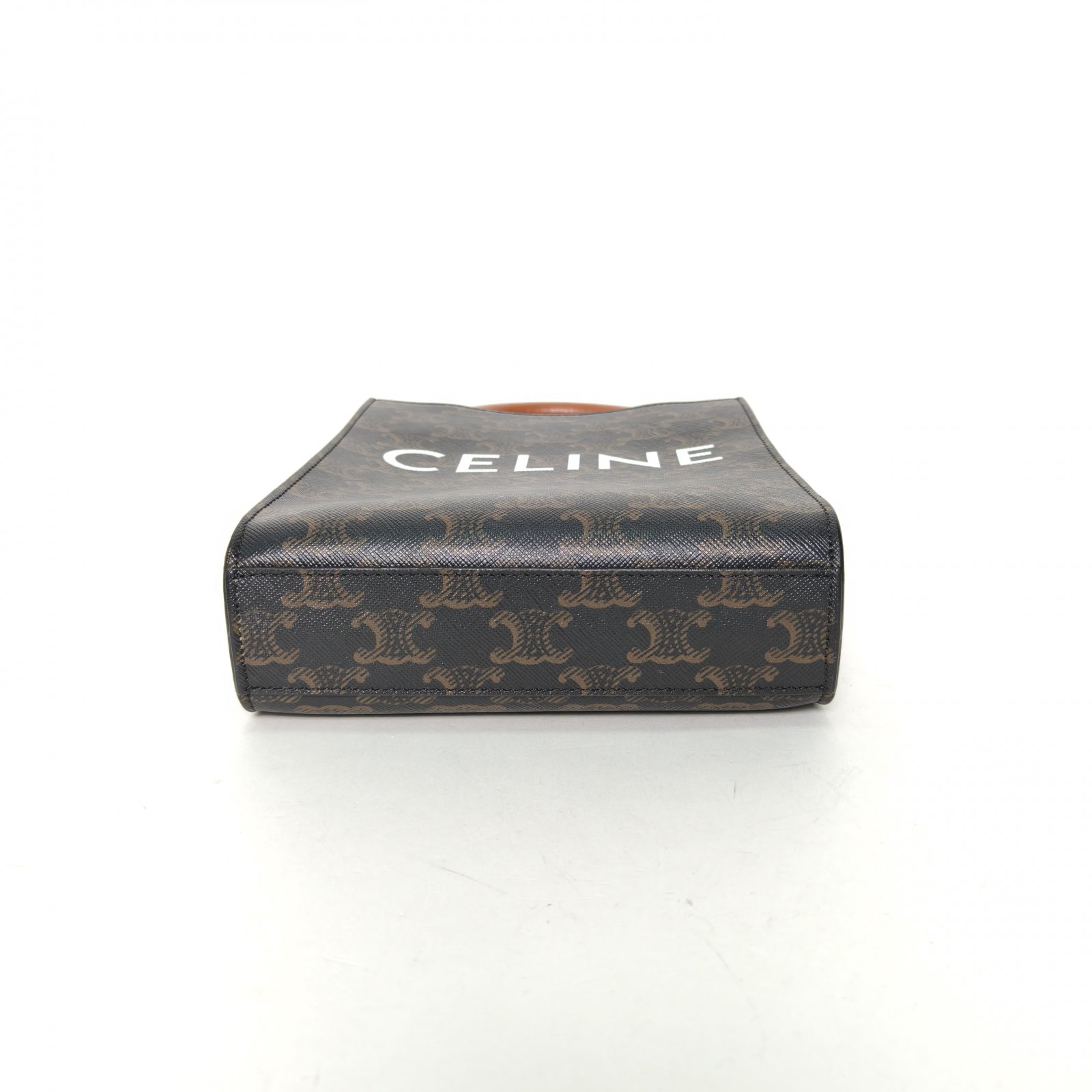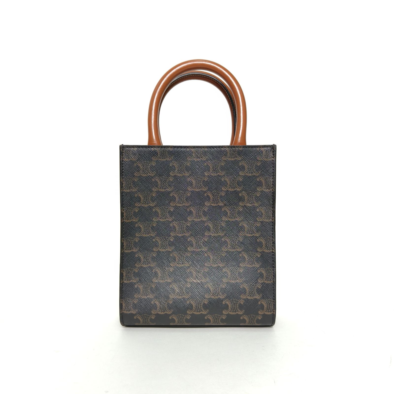 Embodying a minimalist and structured luxury tote bag, the Celine Cabas Vertical Mini is crafted from brown coated canvas with the iconic Arc de Triomphe print. The detachable shoulder strap makes it ideal for daily use.