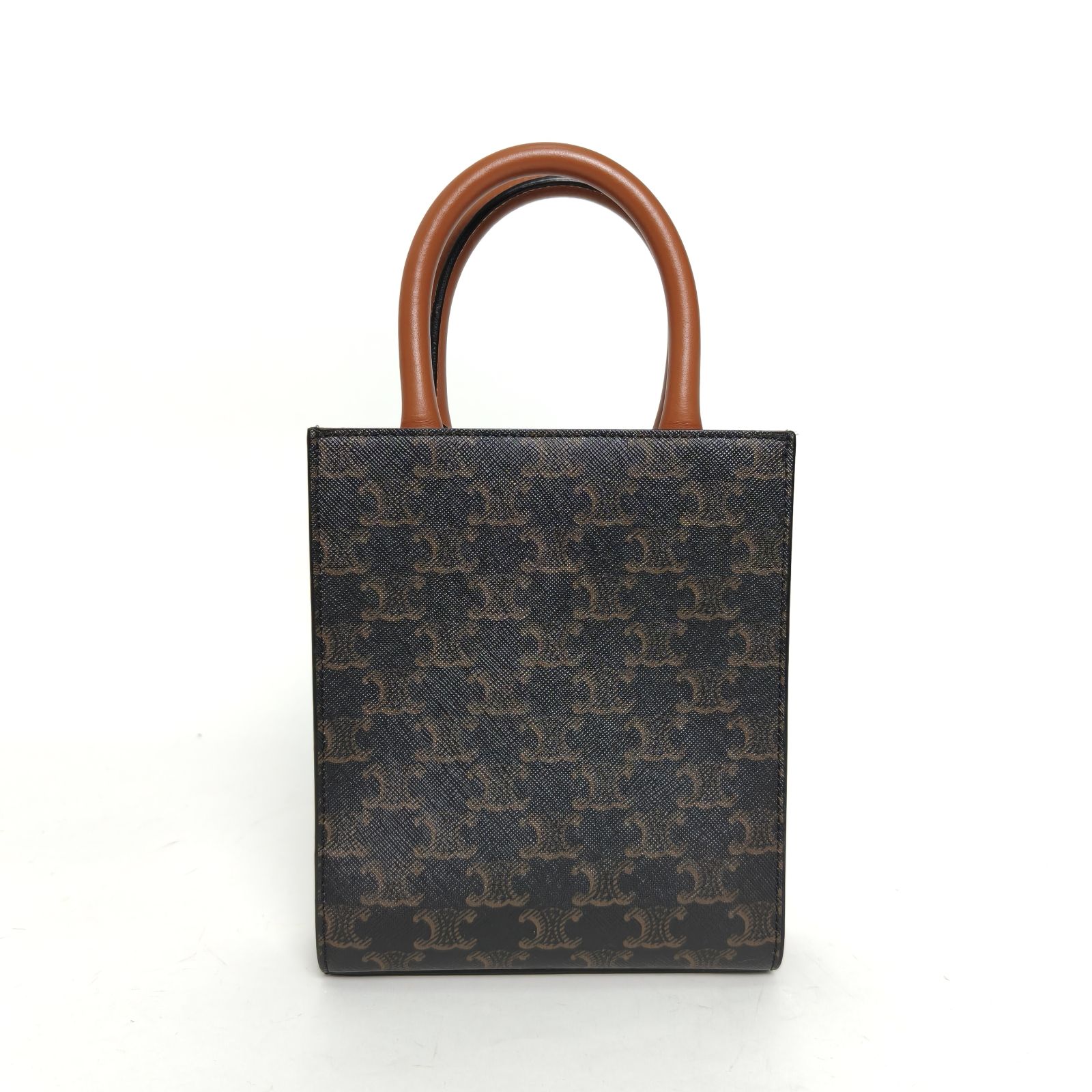 Celine Cabas Vertical Tote Mini Bag in Brown Triomphe Monogram Faux Leather