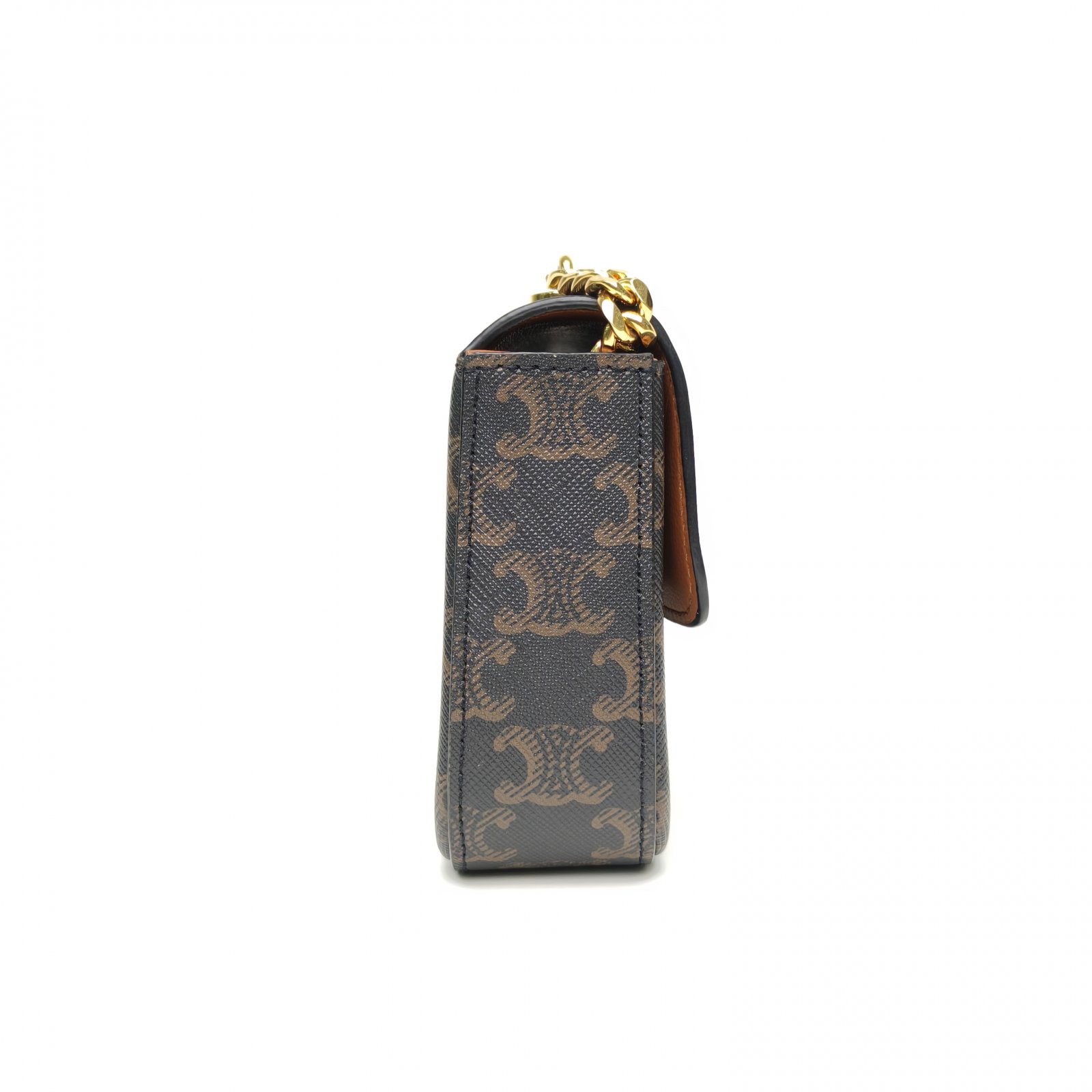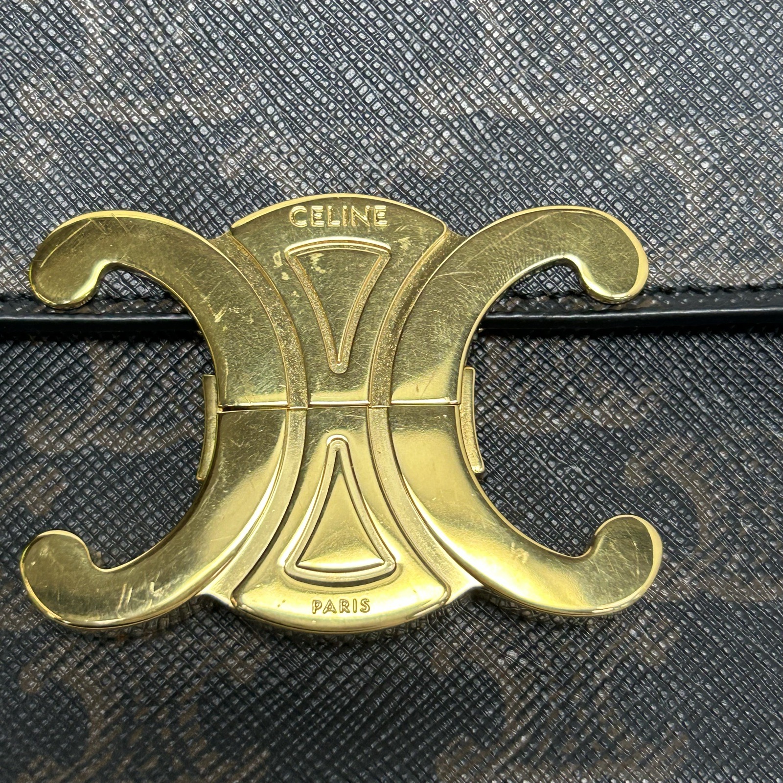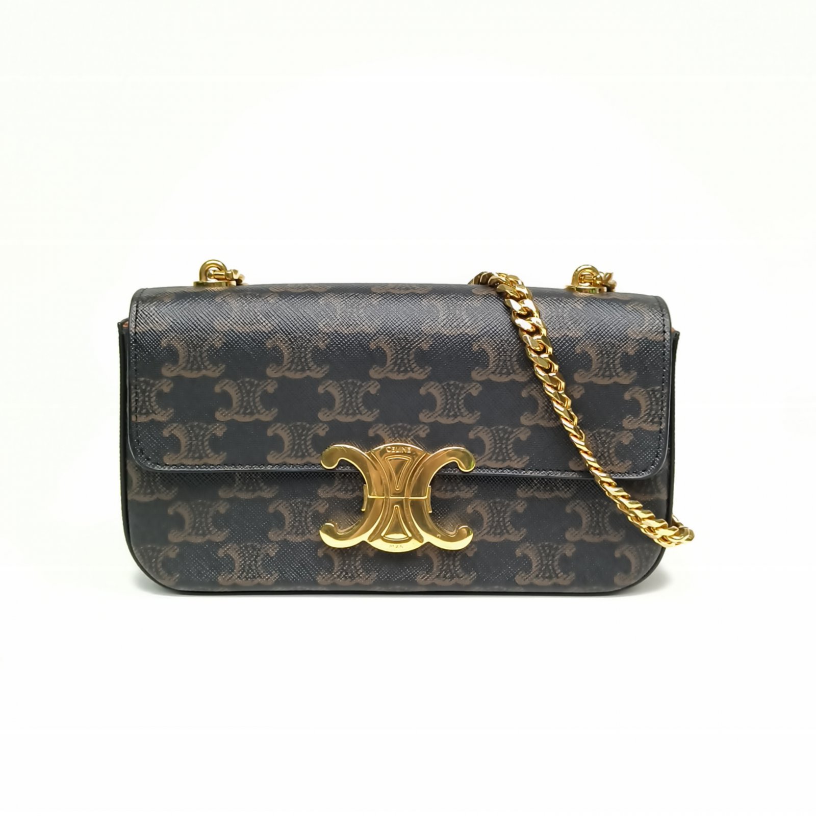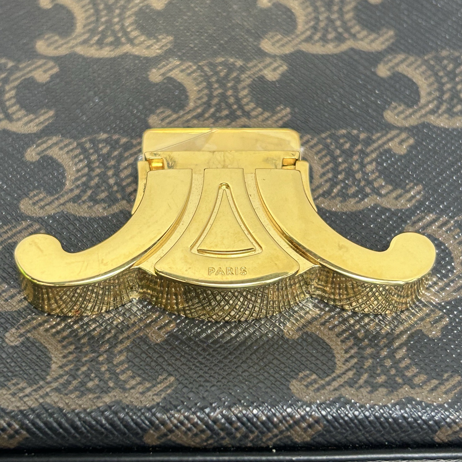 Embodying Celine’s timeless Parisian elegance, the Triomphe crossbody bag is crafted from signature monogram canvas with gold-tone metal hardware. Its compact, structured silhouette blends vintage charm with modern versatility, making it a perfect accessory for elevating casual and formal looks.