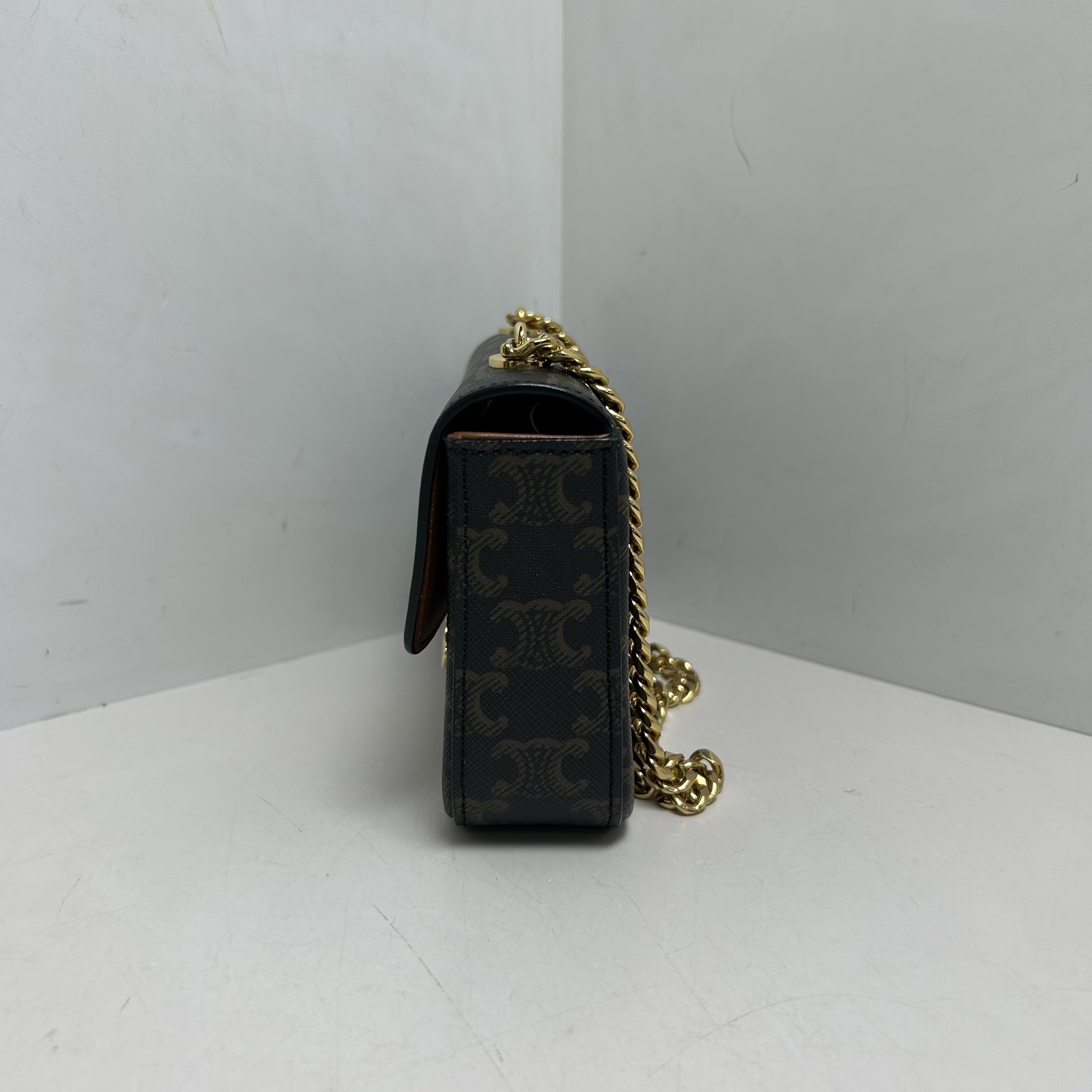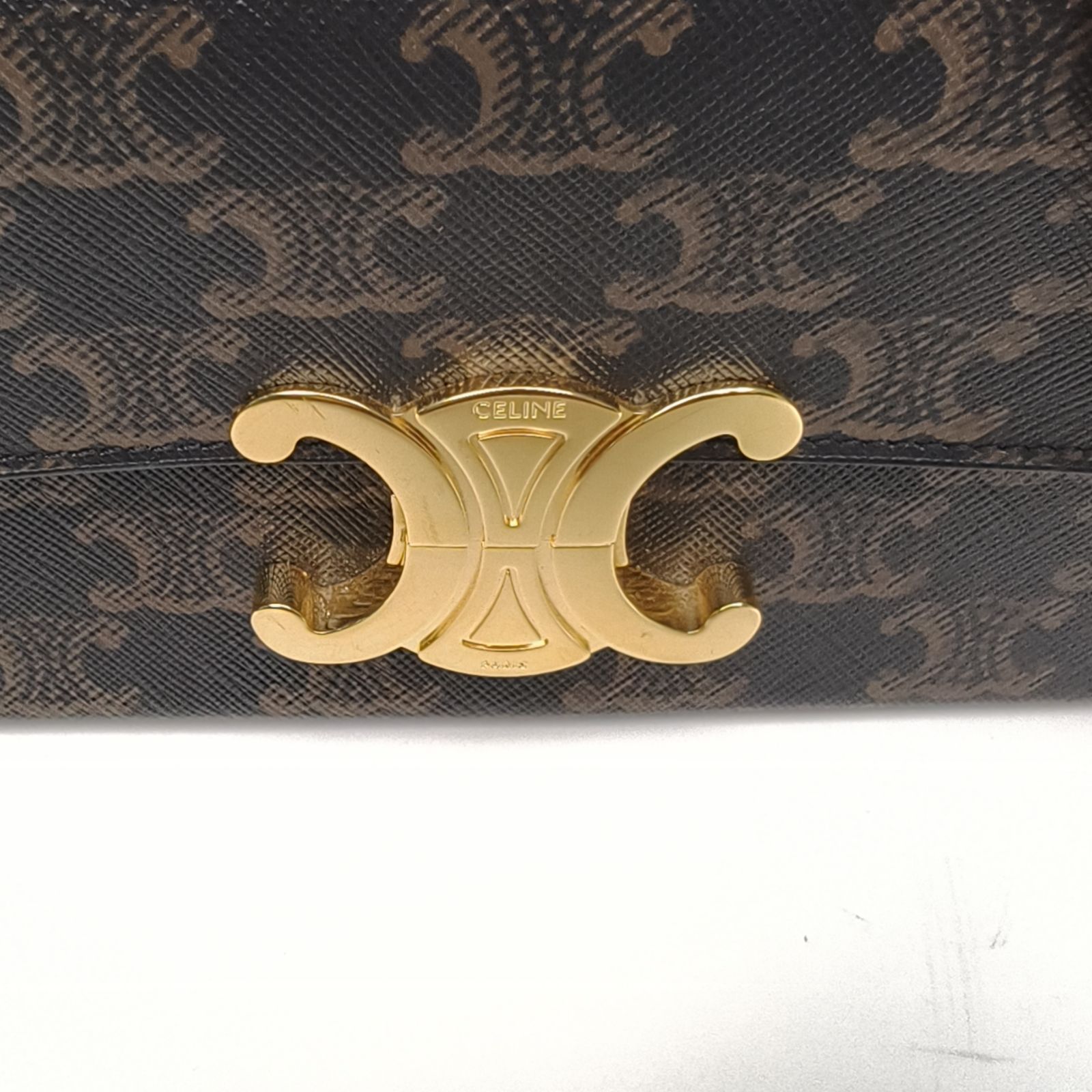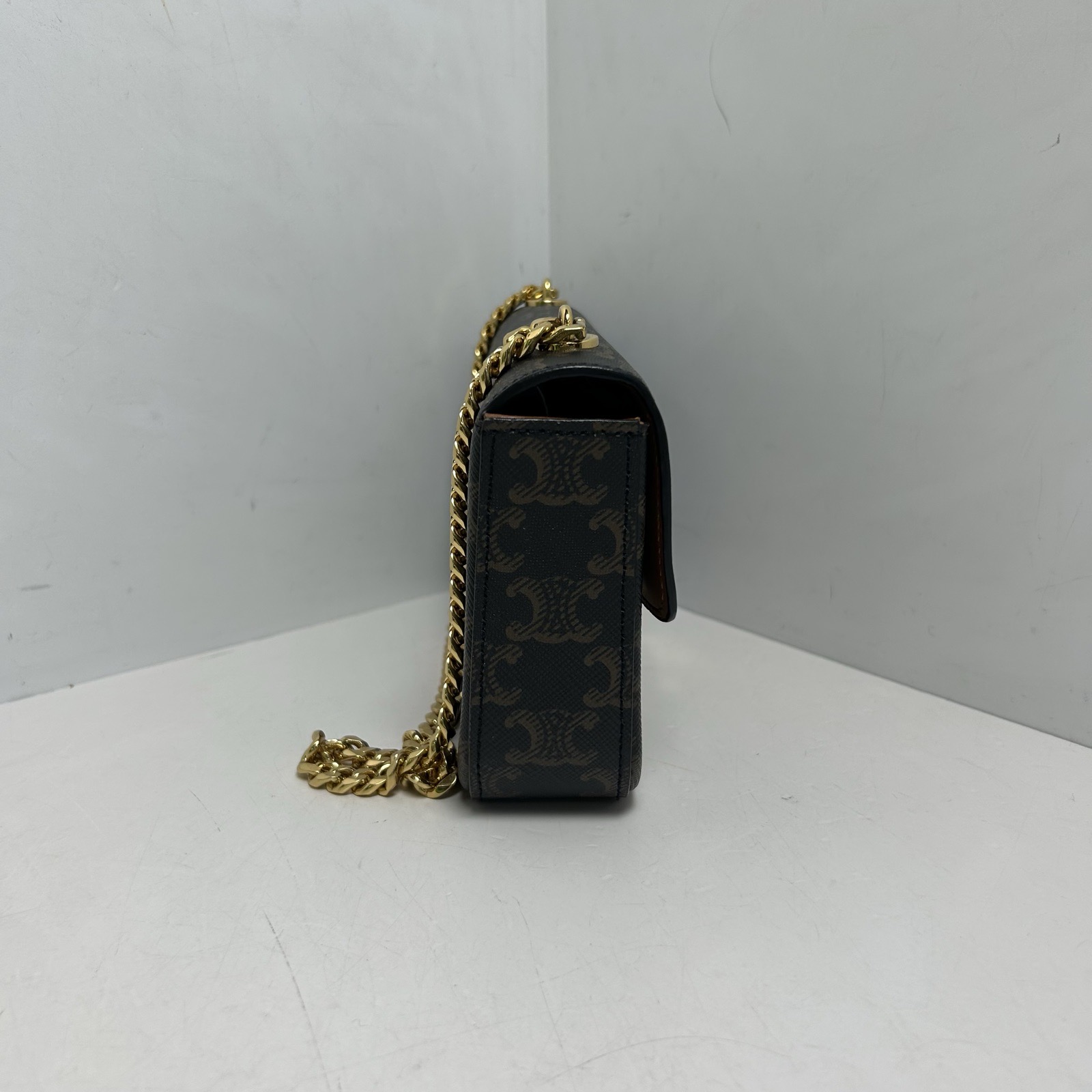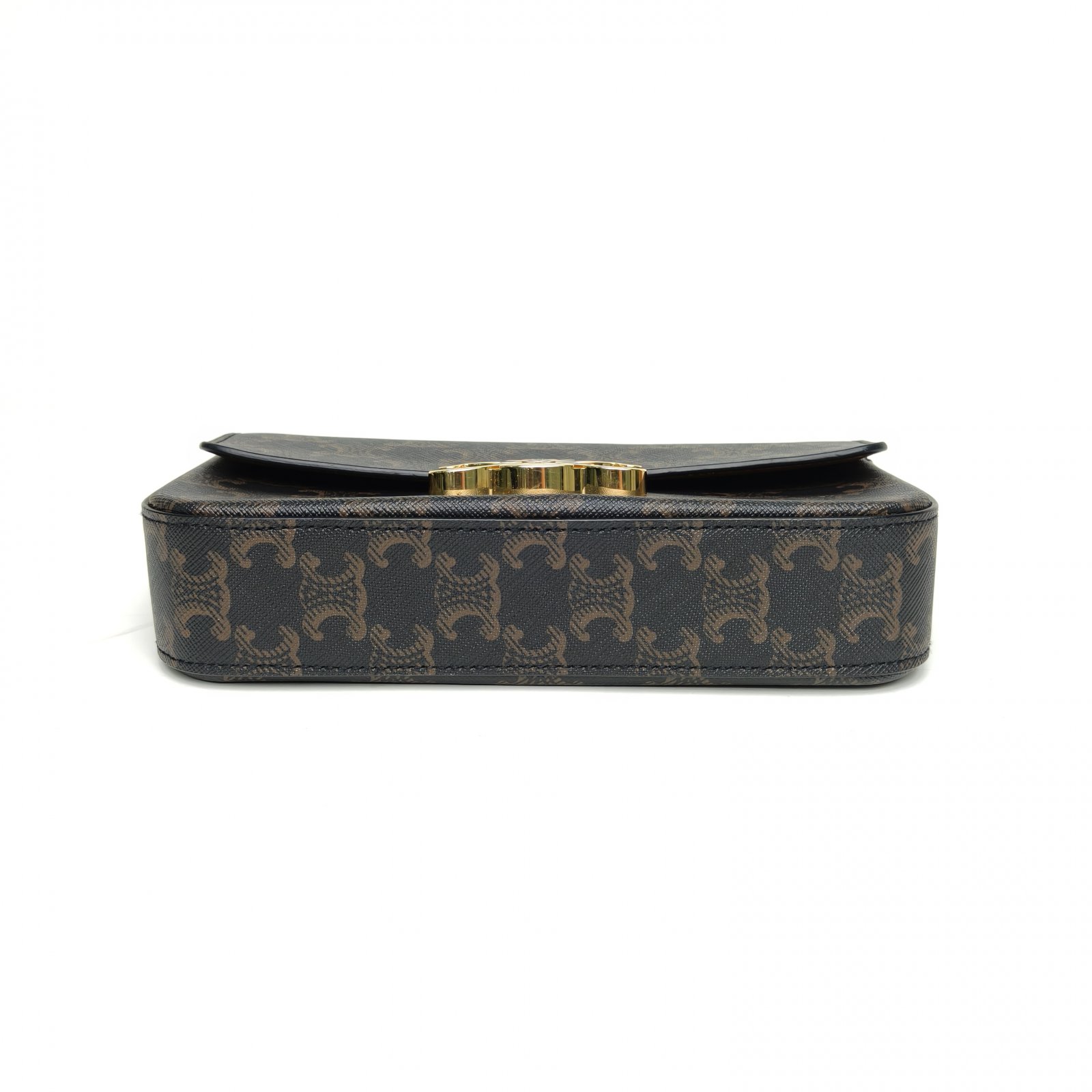 Embodying Celine’s timeless Parisian elegance, the Triomphe crossbody bag is crafted from signature monogram canvas with gold-tone metal hardware. Its compact, structured silhouette blends vintage charm with modern versatility, making it a perfect accessory for elevating casual and formal looks.