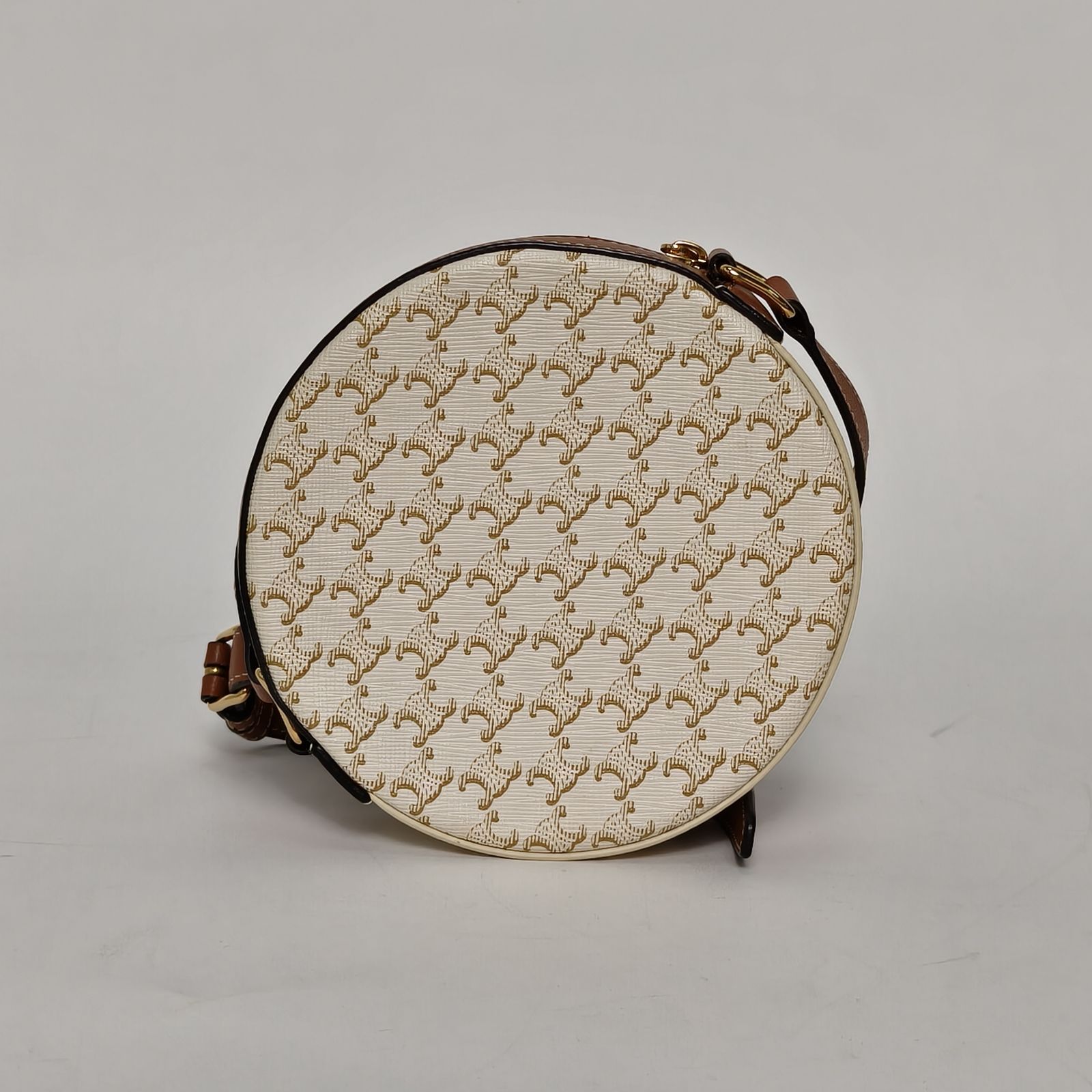 Crafted from durable PVC with iconic Triomphe monogram, this Triomphe round bag features a detachable strap, a stylish daily luxury piece.