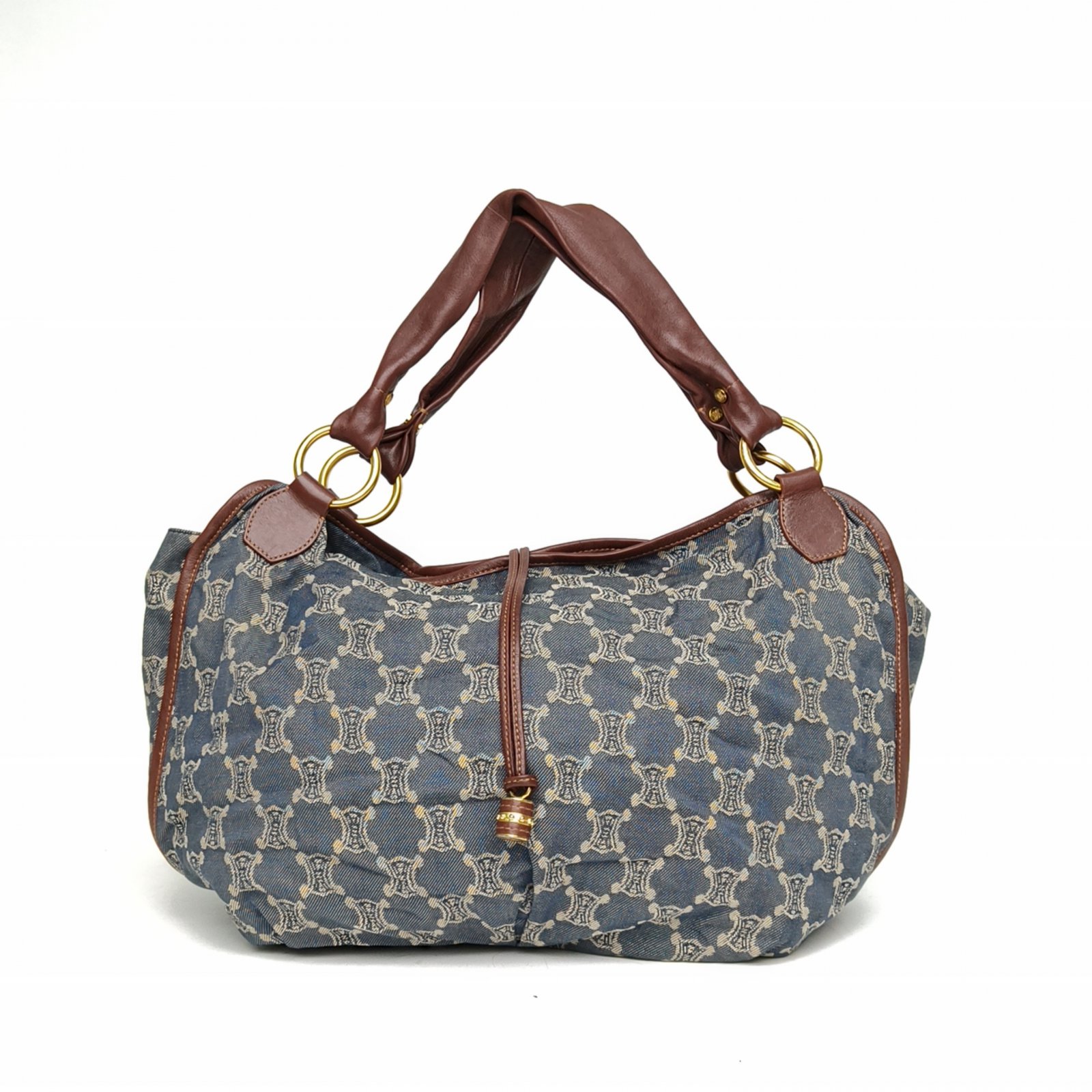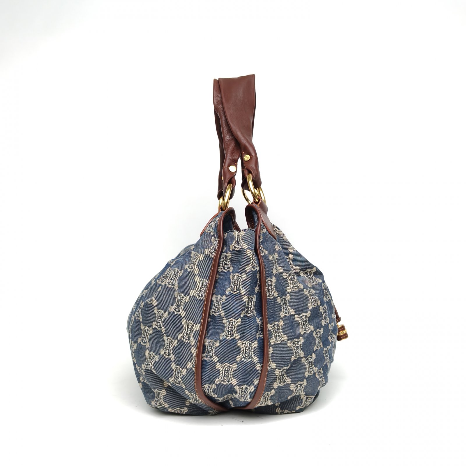 Celine Vintage Triomphe Hobo Denim Blue Denim