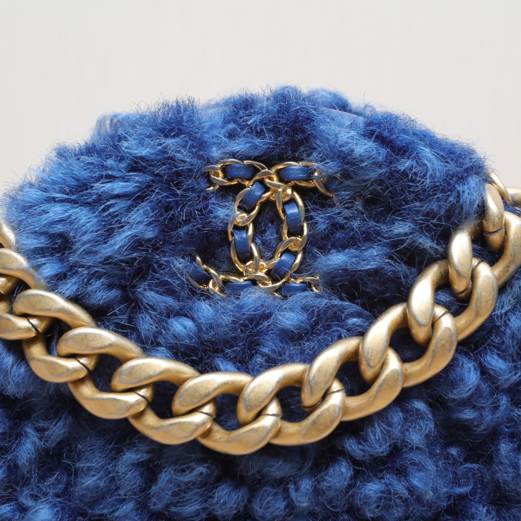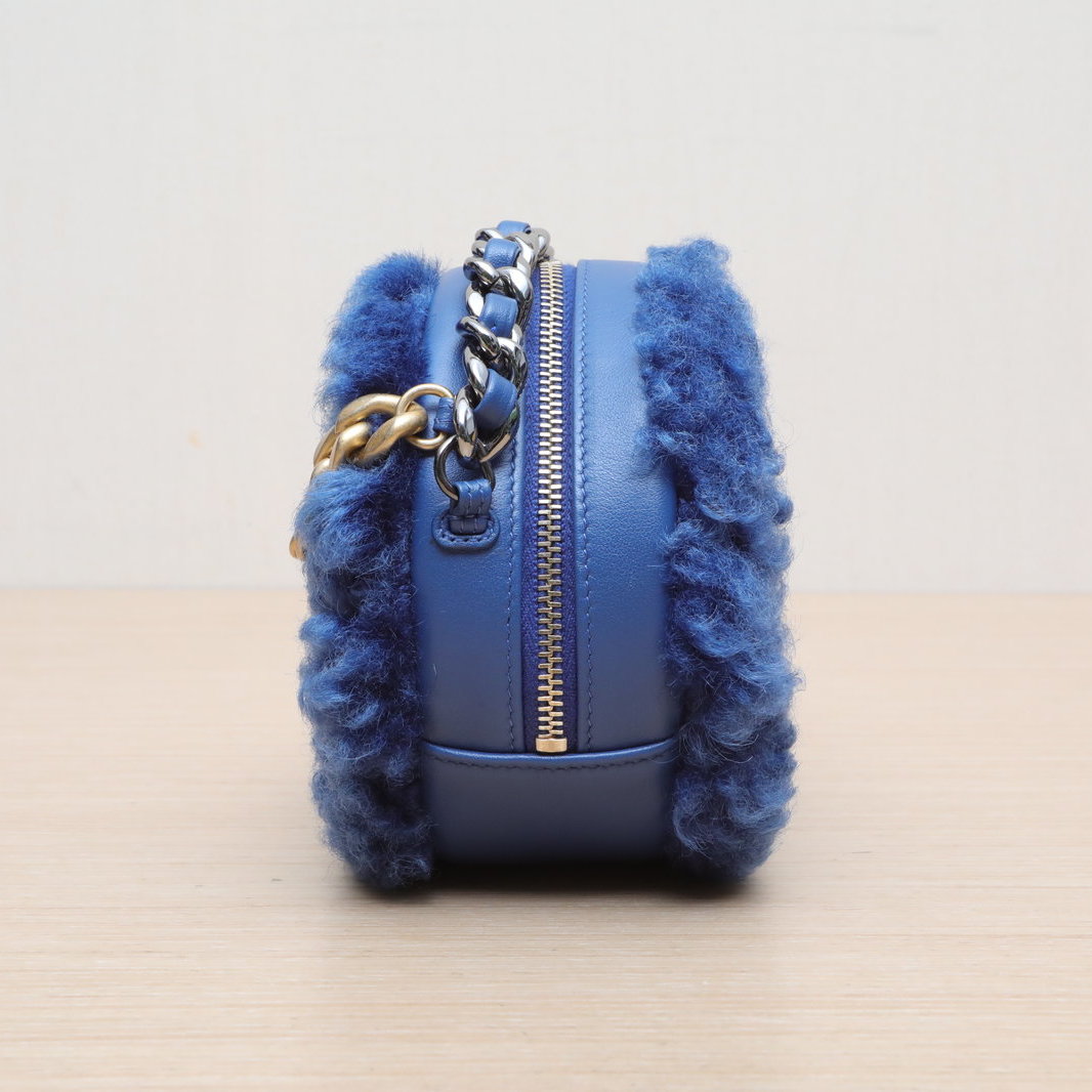Chanel 19BAG Round Bag 12cm in Blue Fleece