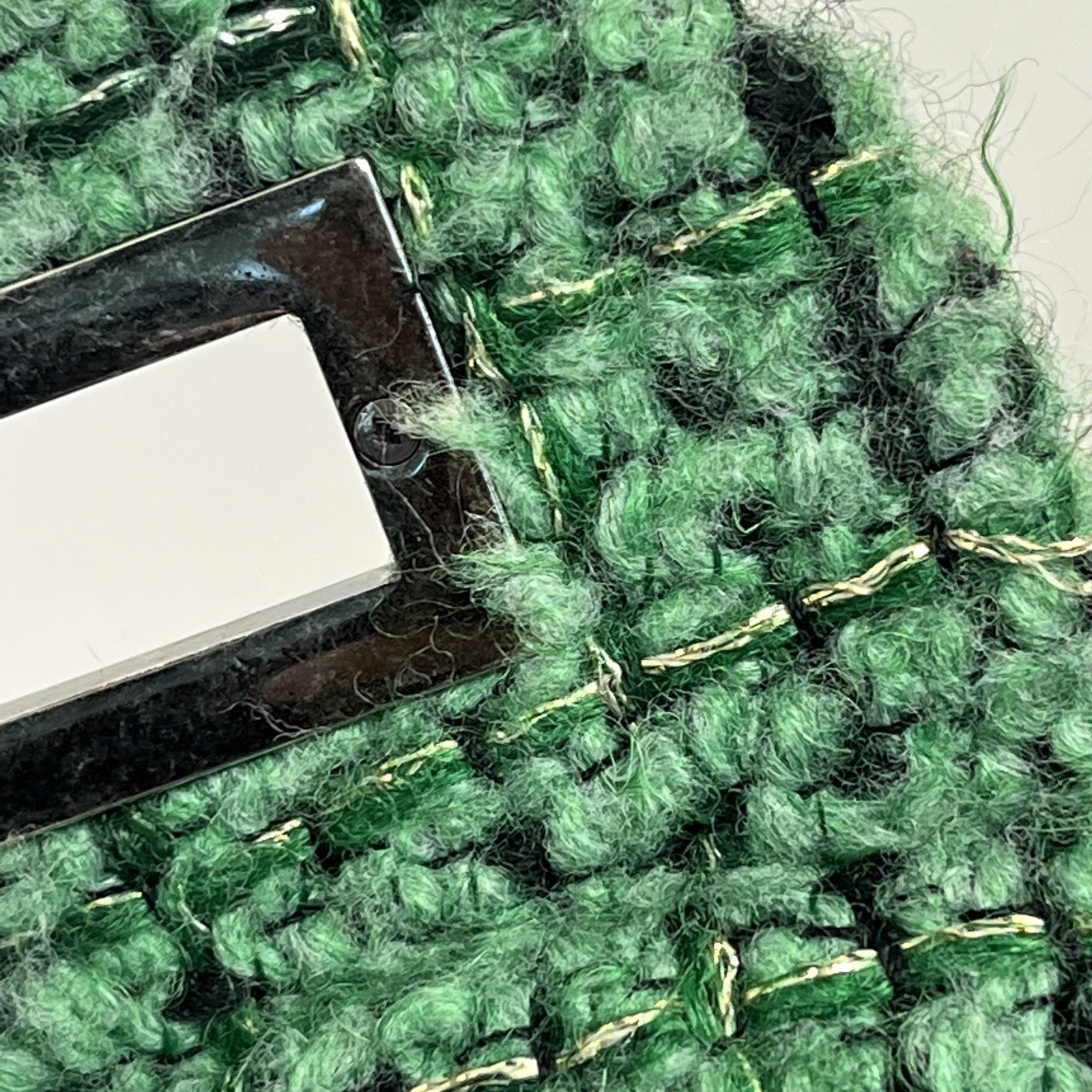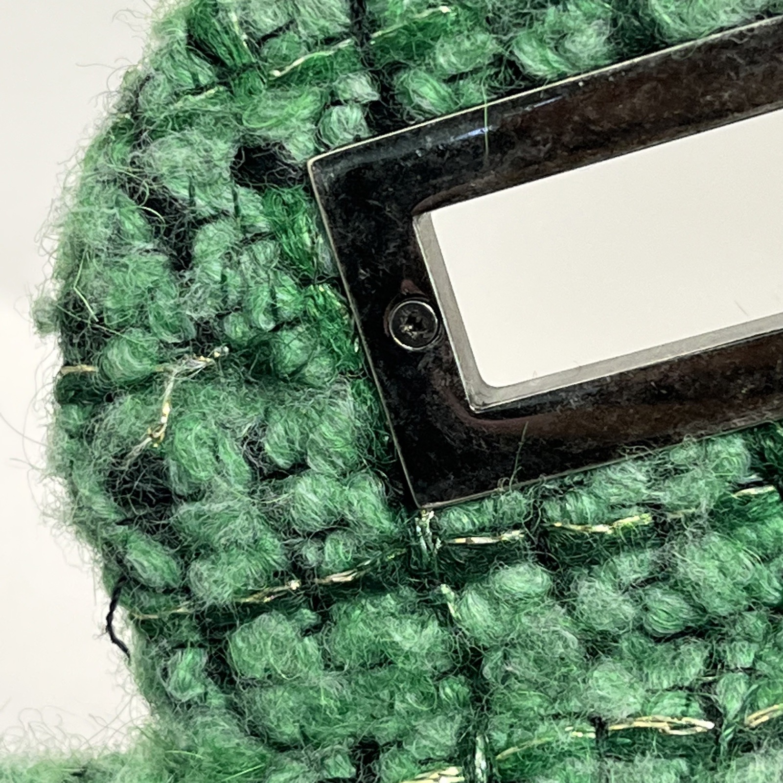 Made from green tweed with silver-tone hardware, this 2.55 Airport bag features a quilted pattern and chain strap, offering a textured, sophisticated silhouette for travel-ready style.