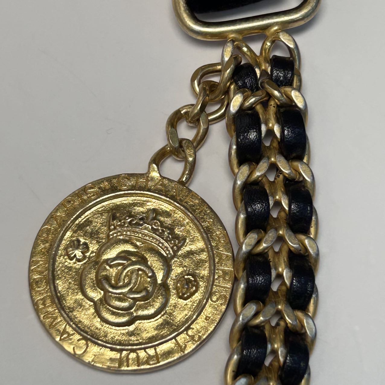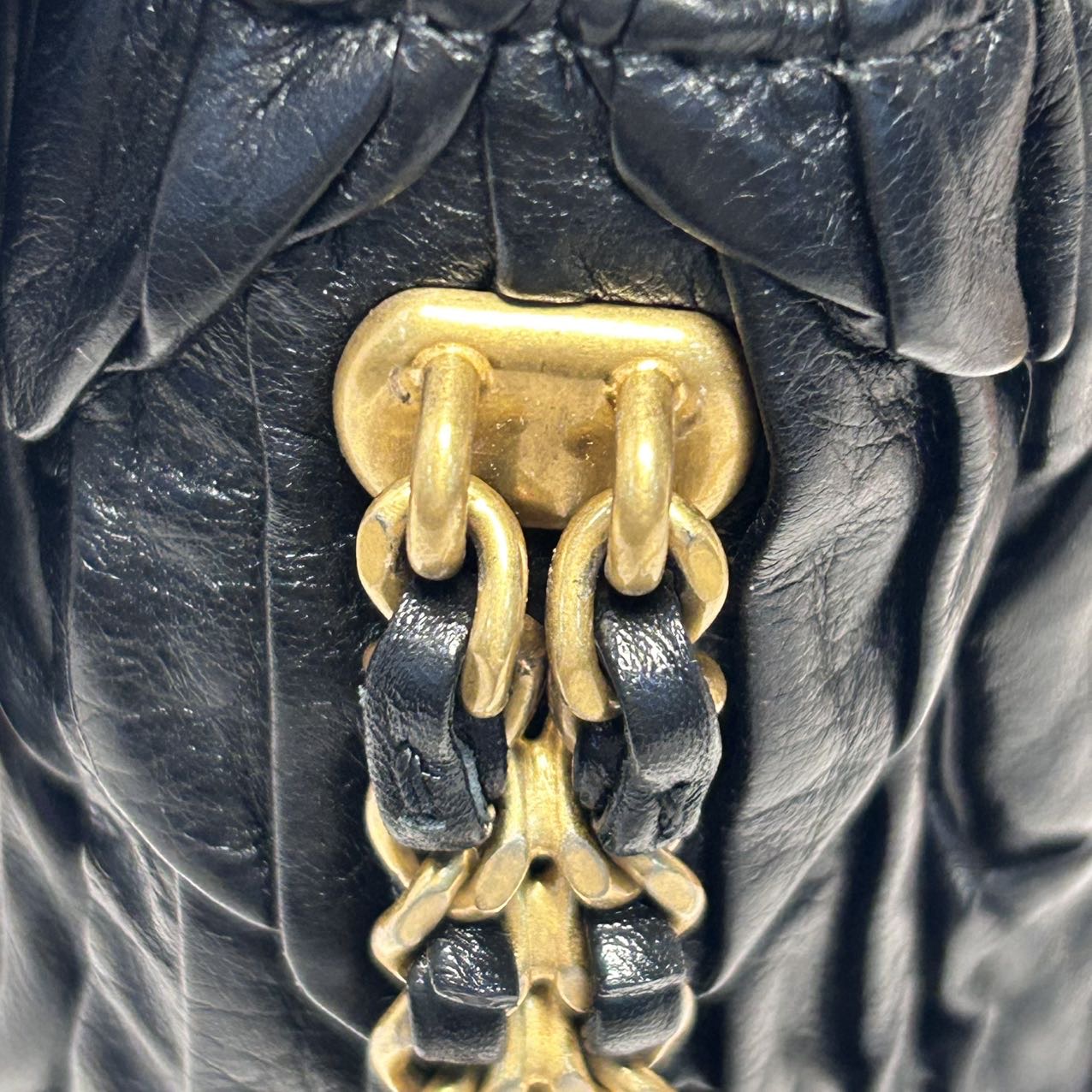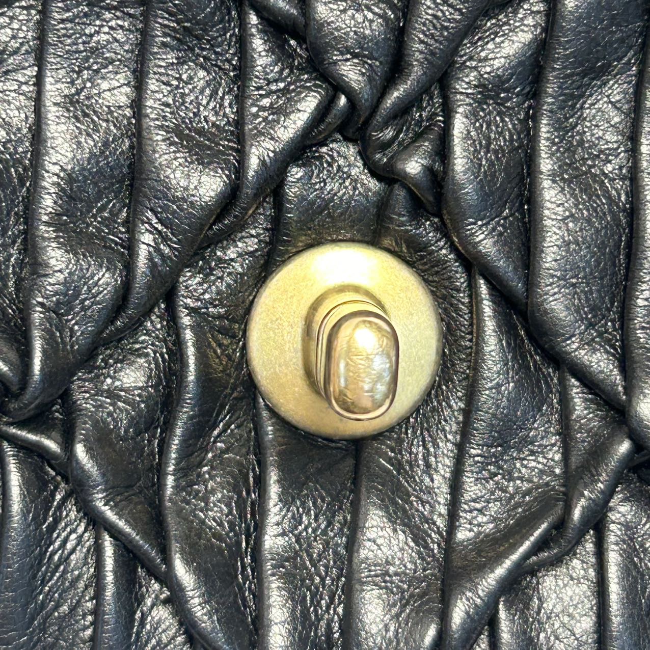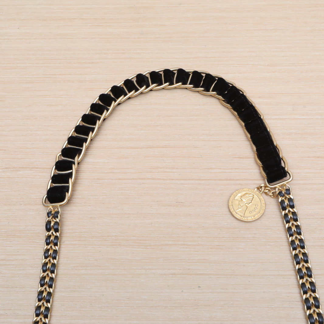 Crafted from black leather with crinkled diamond-quilted pattern and iconic CC logo, this 21A CF flap bag features a gold coin double chain strap, a limited-edition Chanel piece.