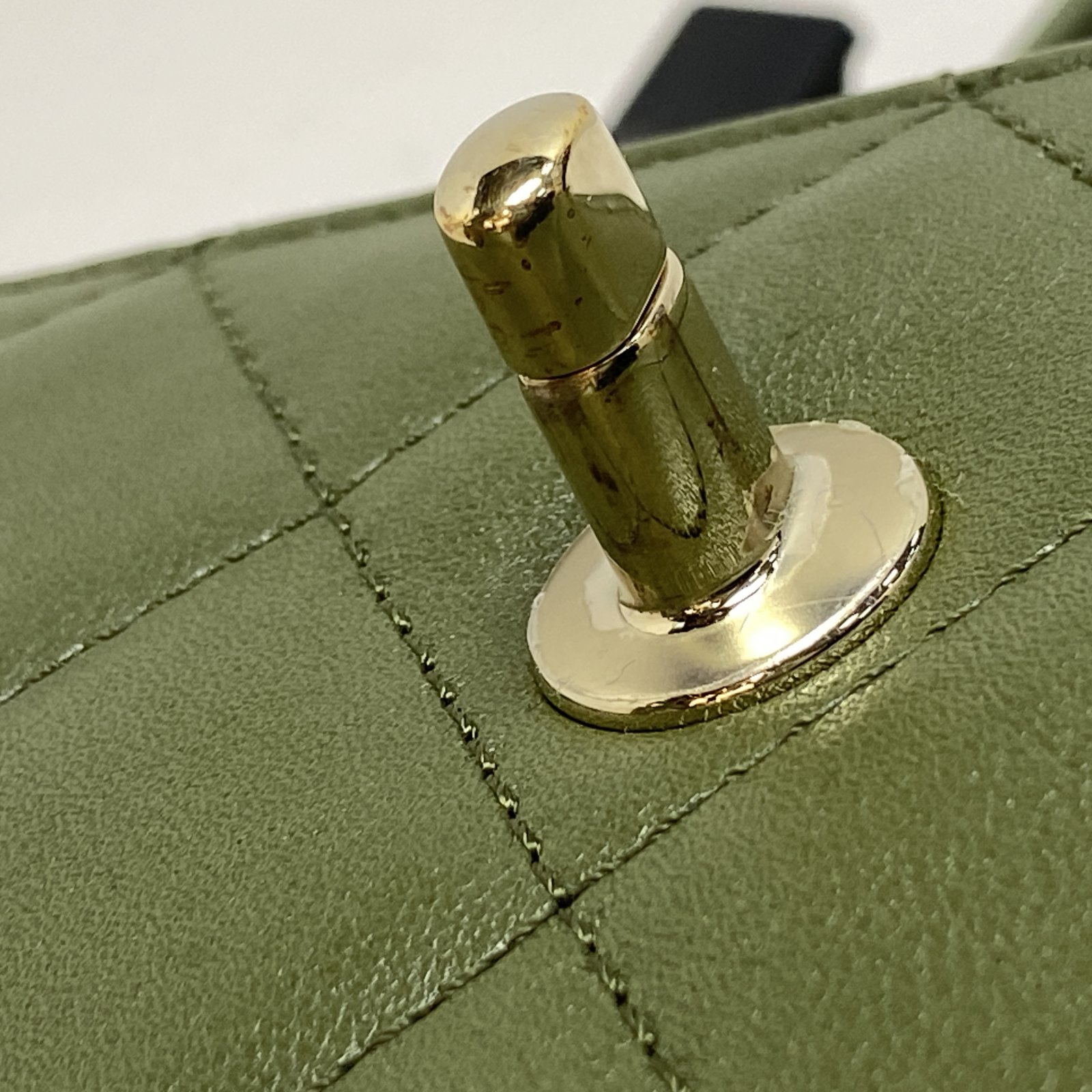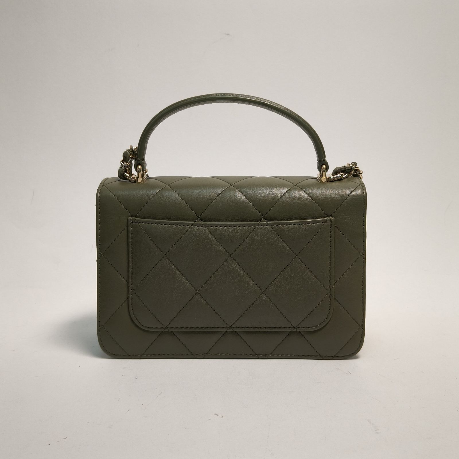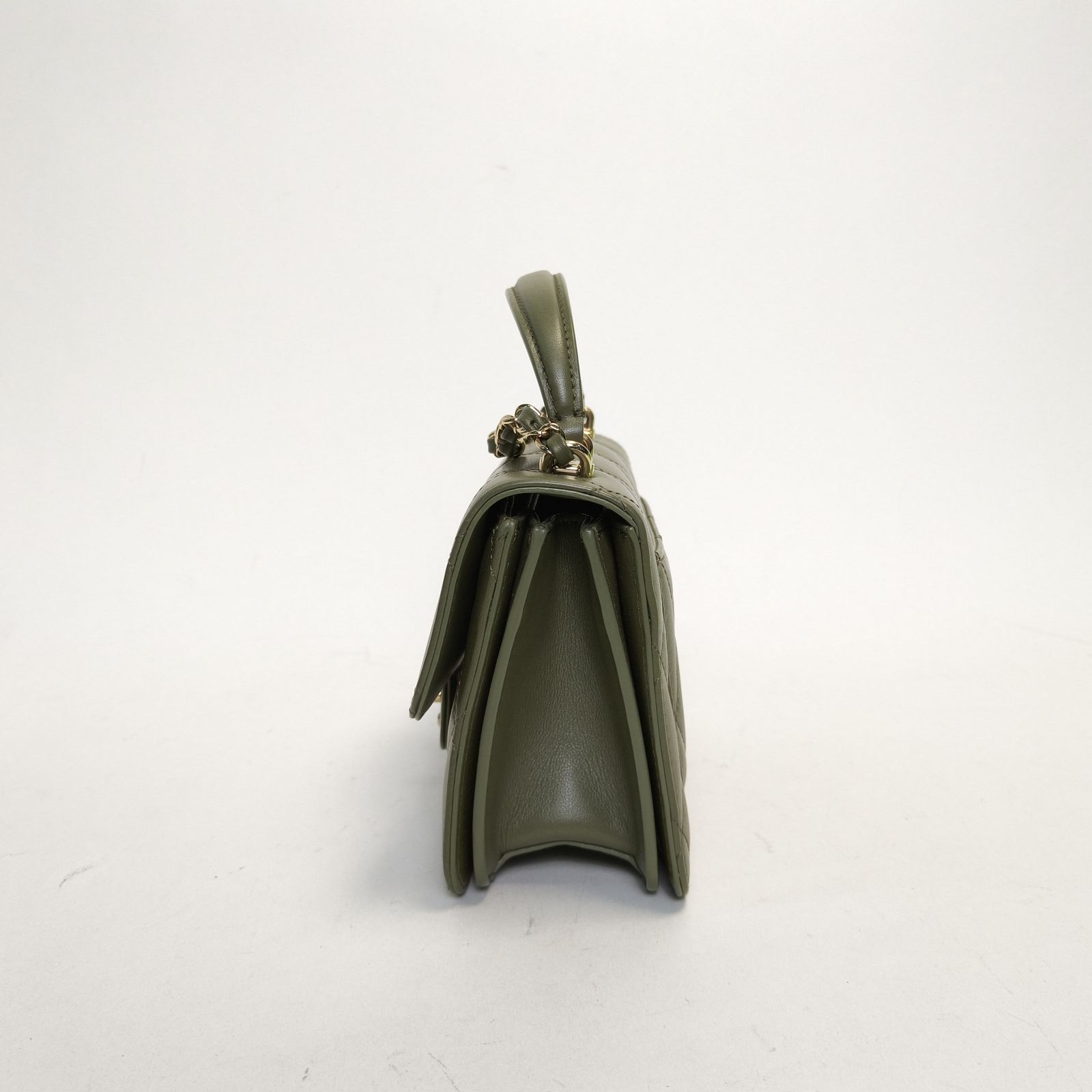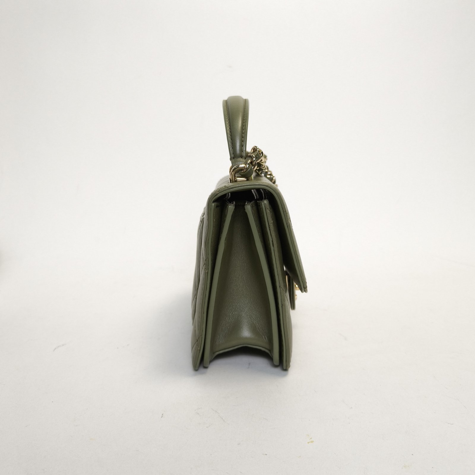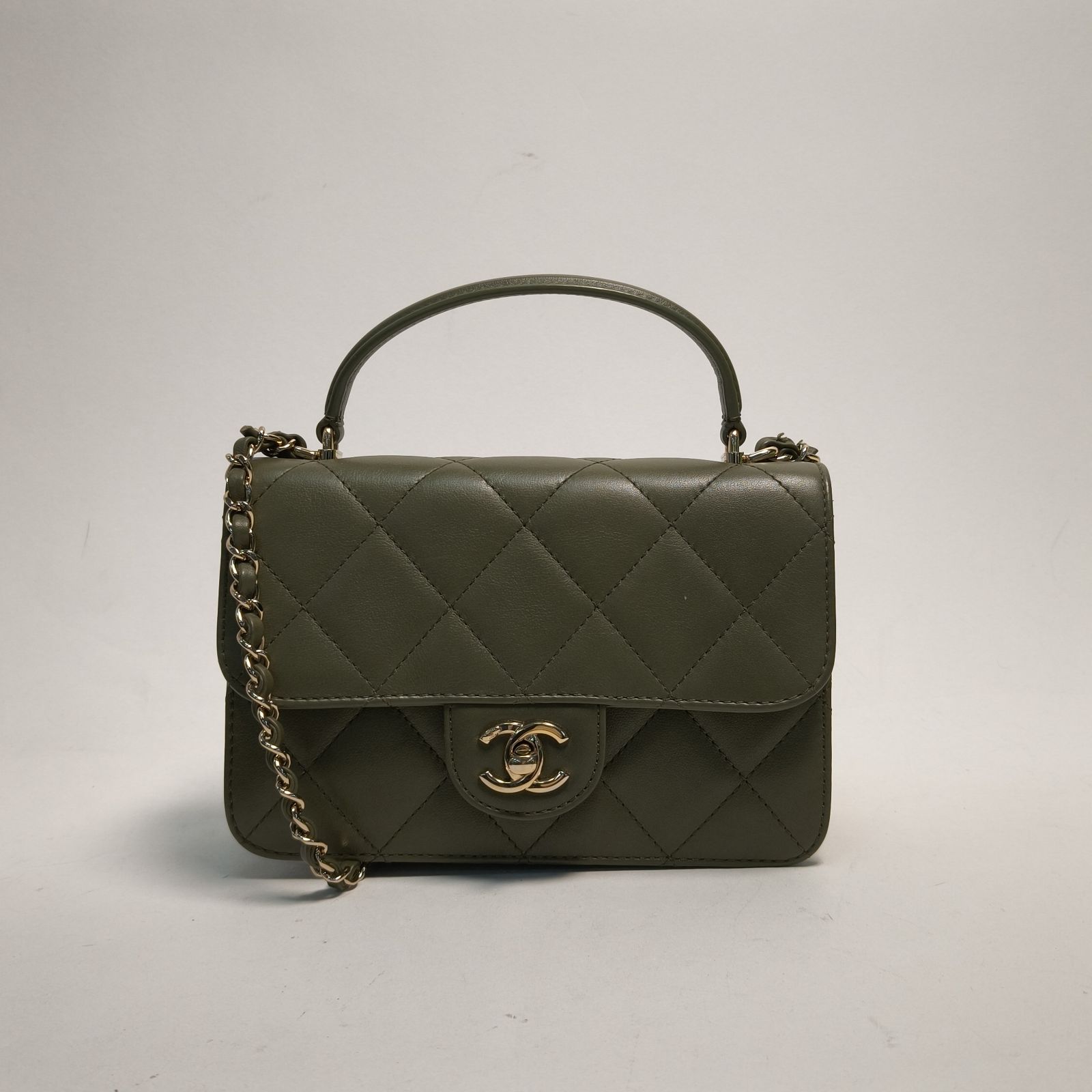 Crafted from green leather with classic quilting and gold-tone CC hardware, this 21B Coco Lady 20cm flap bag features a top handle and detachable strap, a timeless daily luxury piece.
