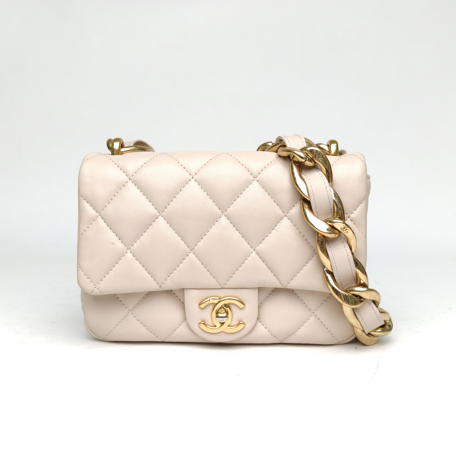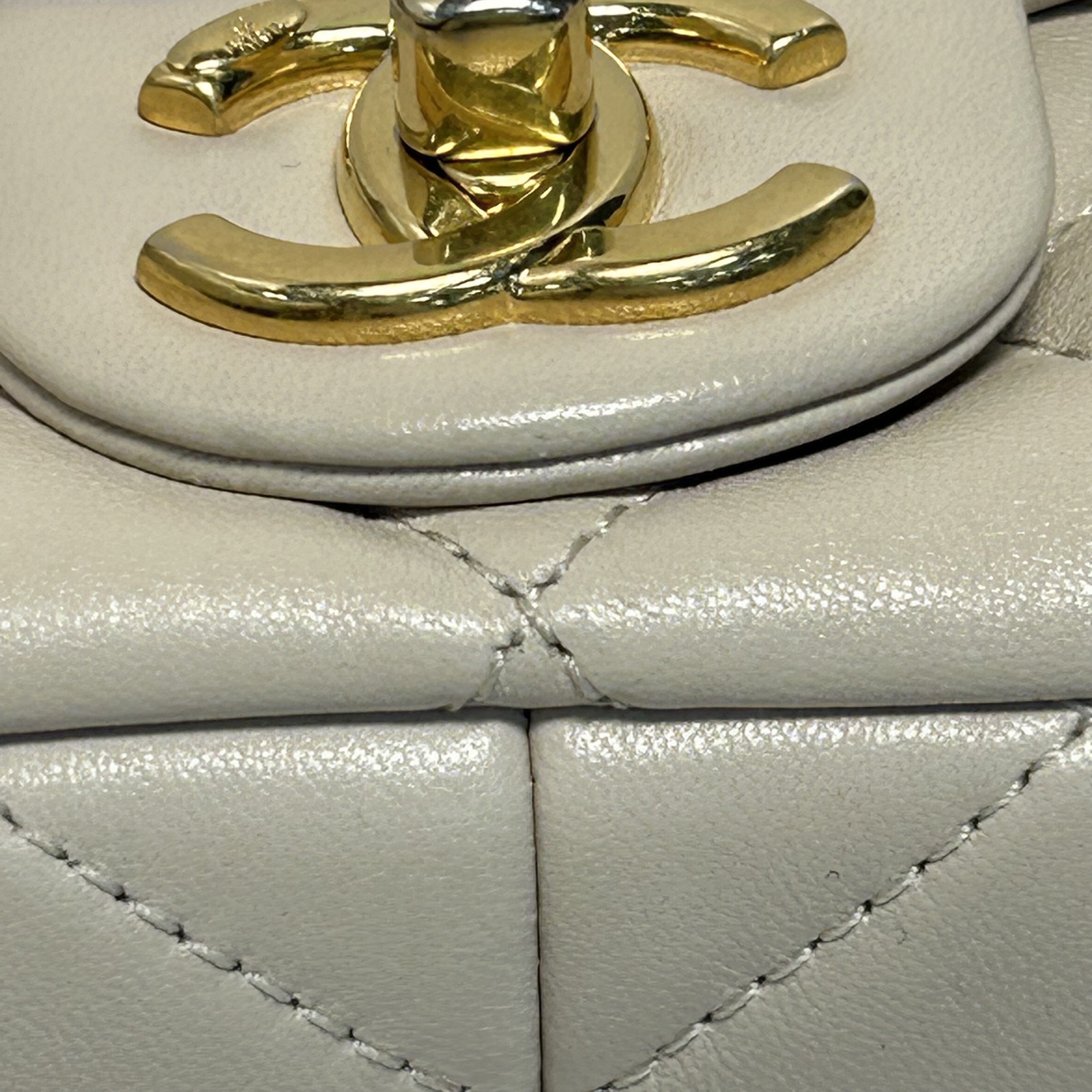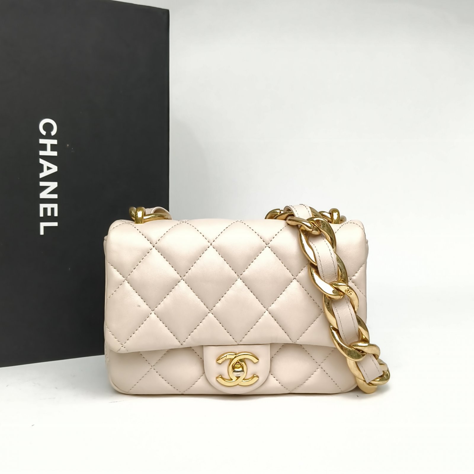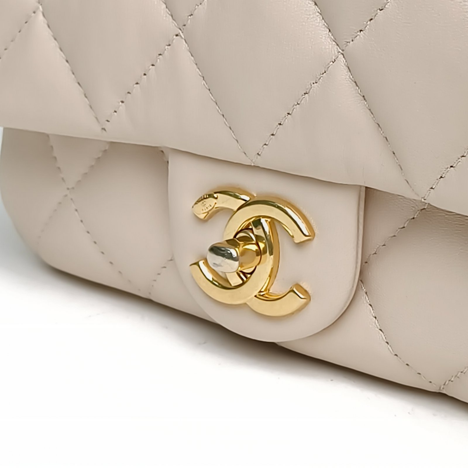 Chanel 22P Classic Flap Mini 20 Beige Lambskin Leather