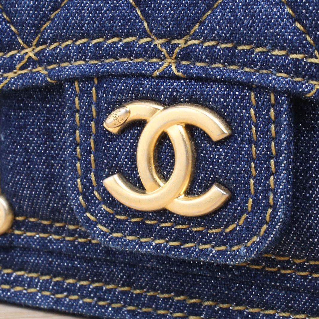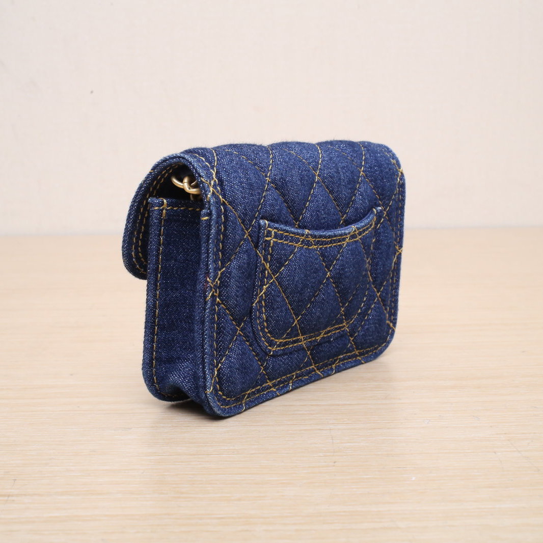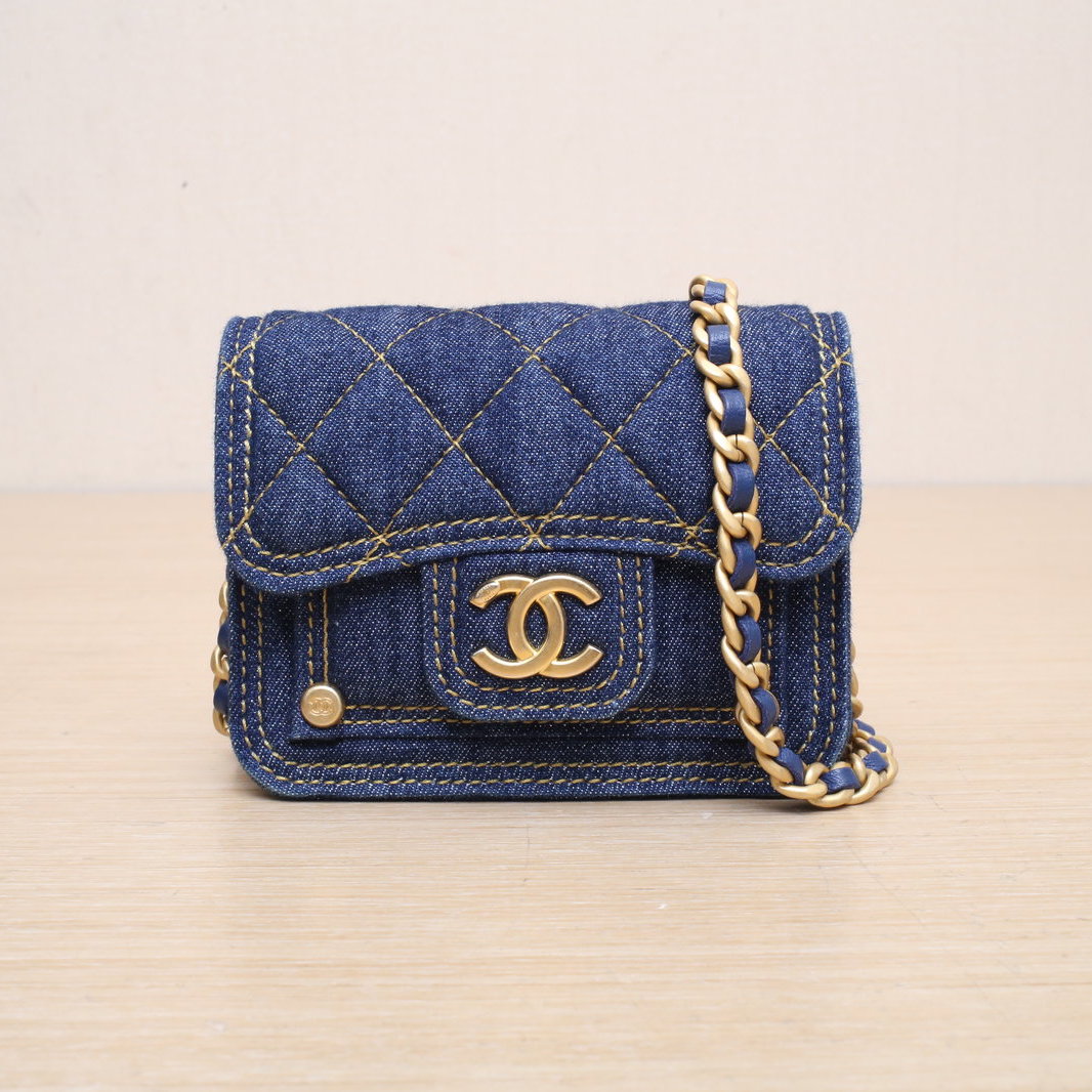 Crafted from durable denim with classic diamond quilting and gold-tone CC hardware, this 23S Double You chain bag mini features a detachable strap, a stylish daily luxury piece.