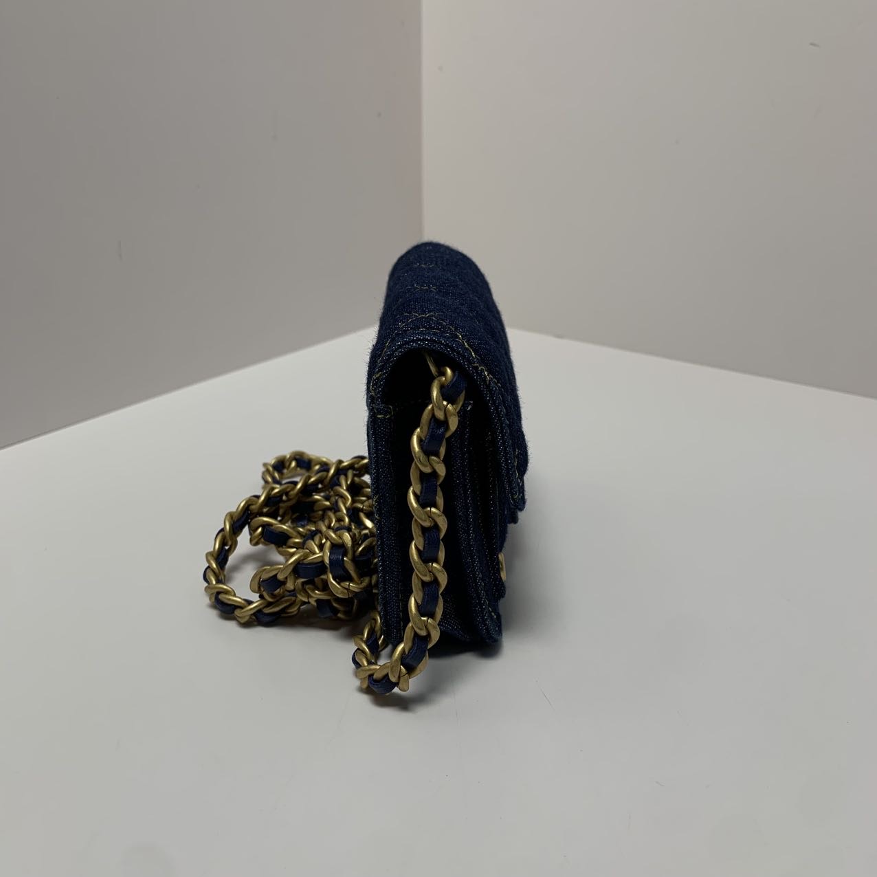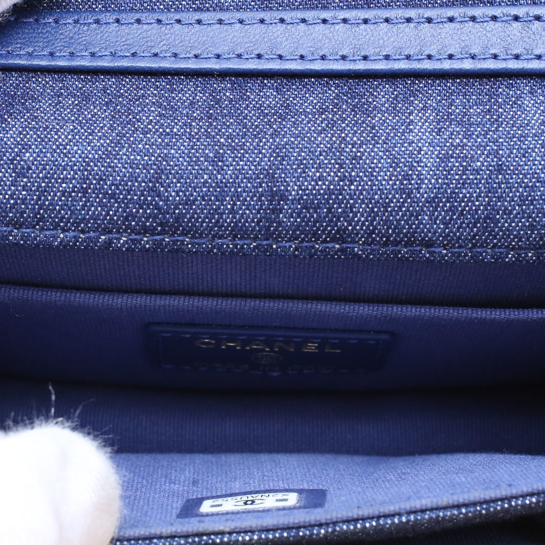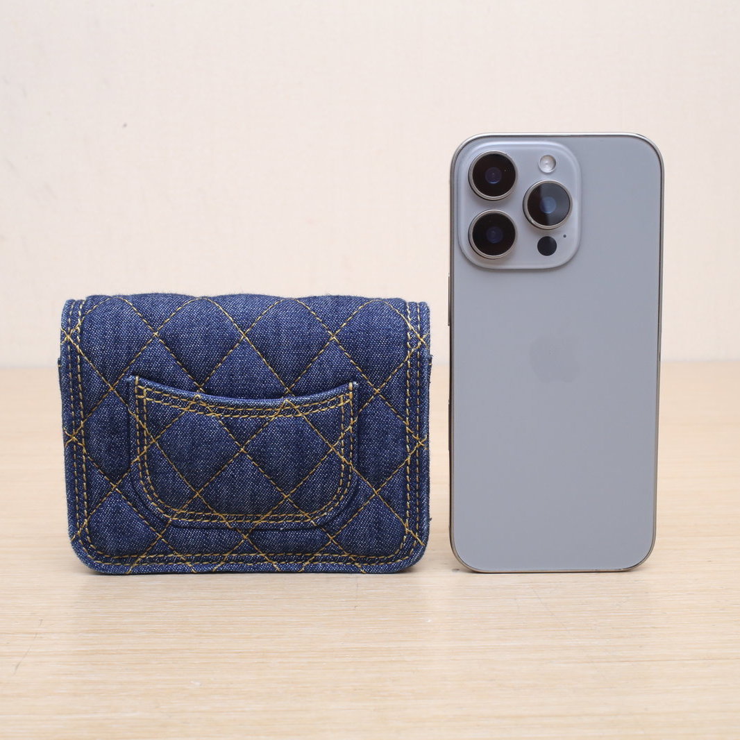Crafted from durable denim with classic diamond quilting and gold-tone CC hardware, this 23S Double You chain bag mini features a detachable strap, a stylish daily luxury piece.
