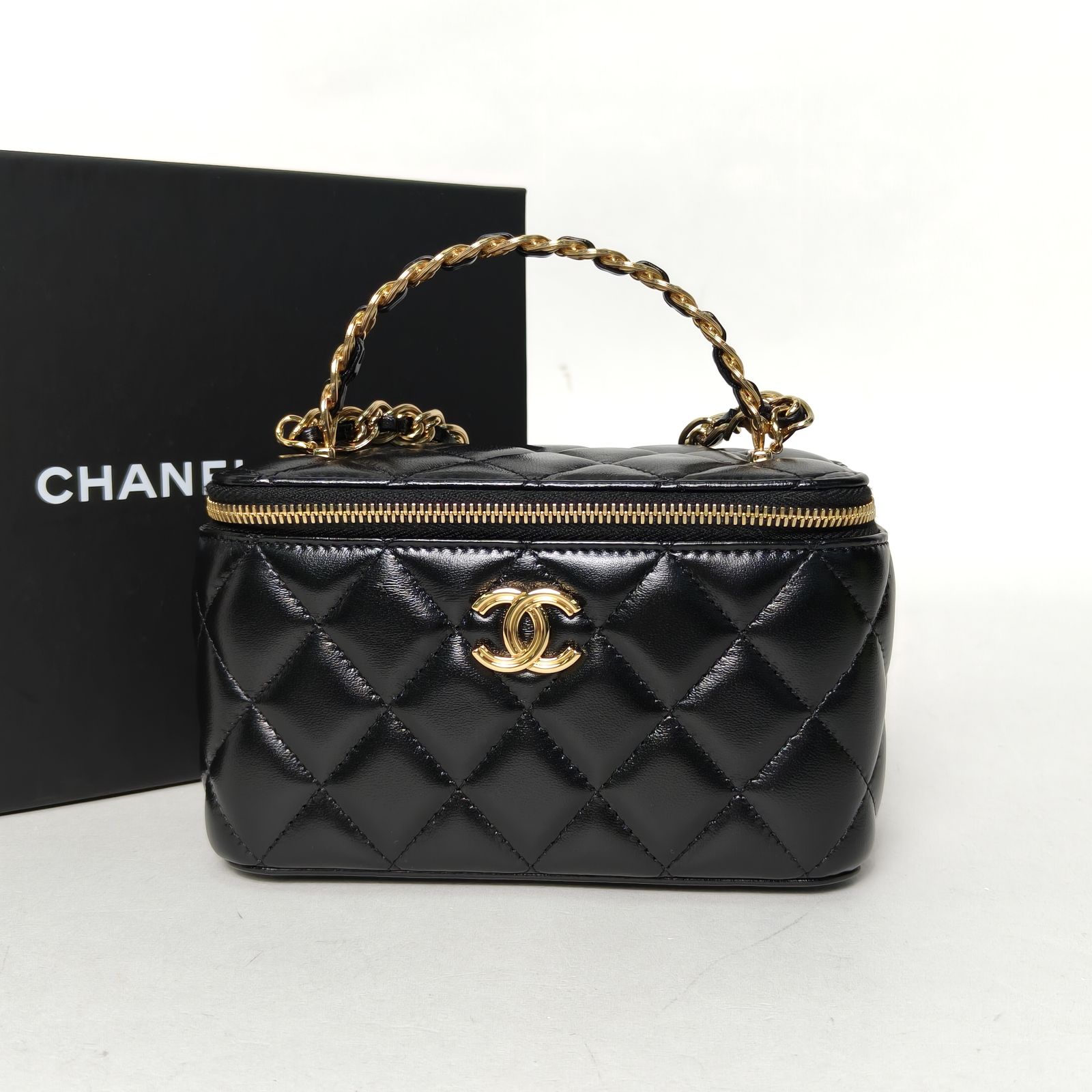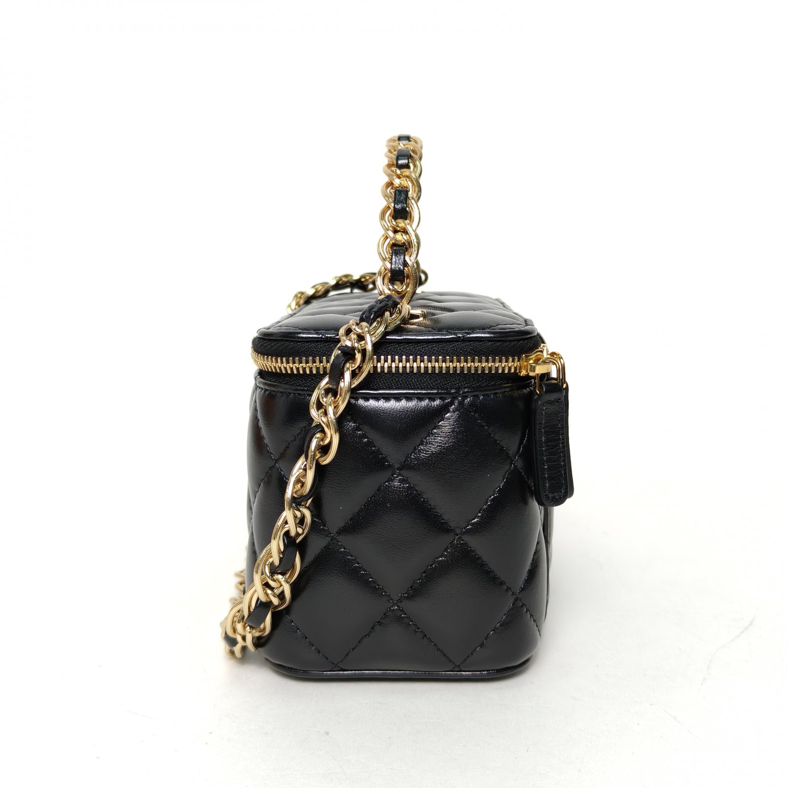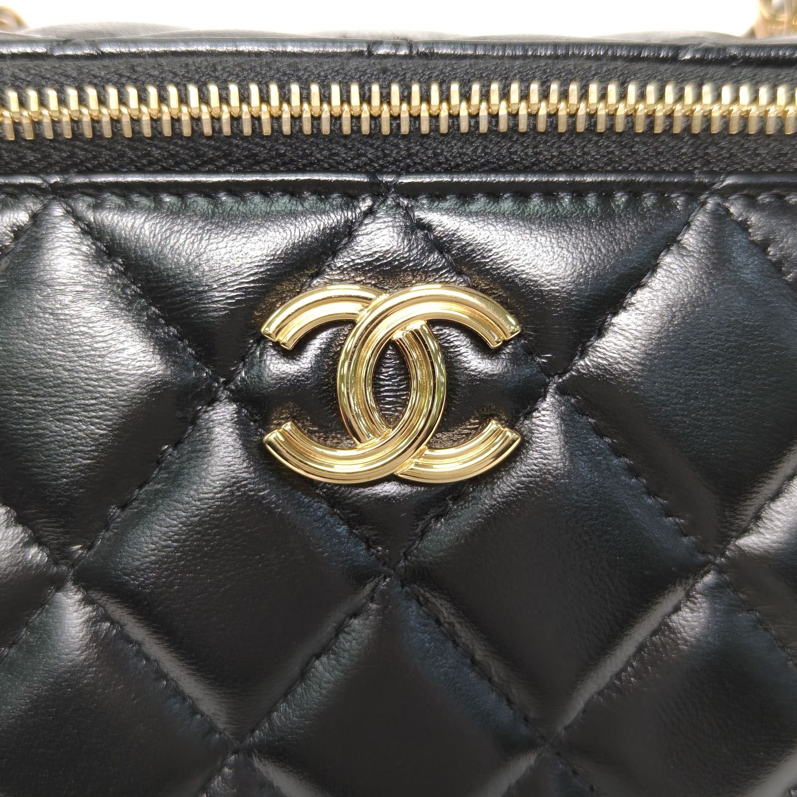 Chanel 23S Long Vanity Case 16.5cm in Black Leather