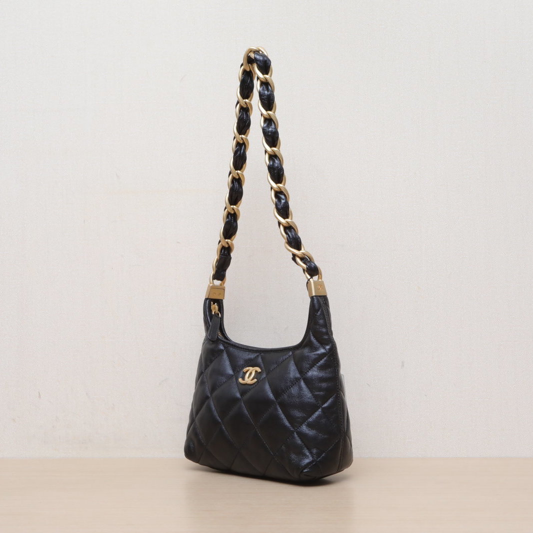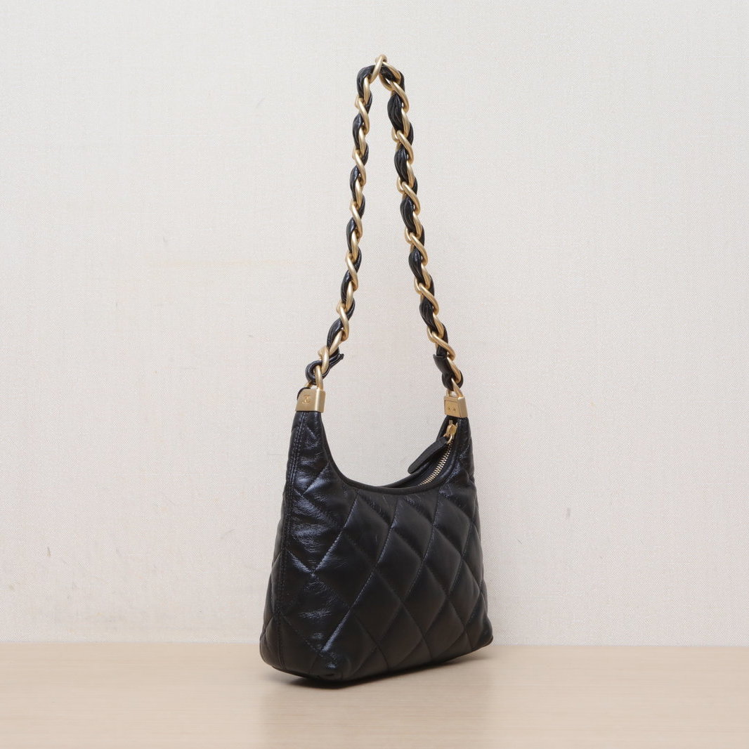 Crafted from premium leather with classic diamond quilting and gold-tone CC hardware, this 24A hobo 22.5cm features a detachable strap, a stylish daily luxury piece.