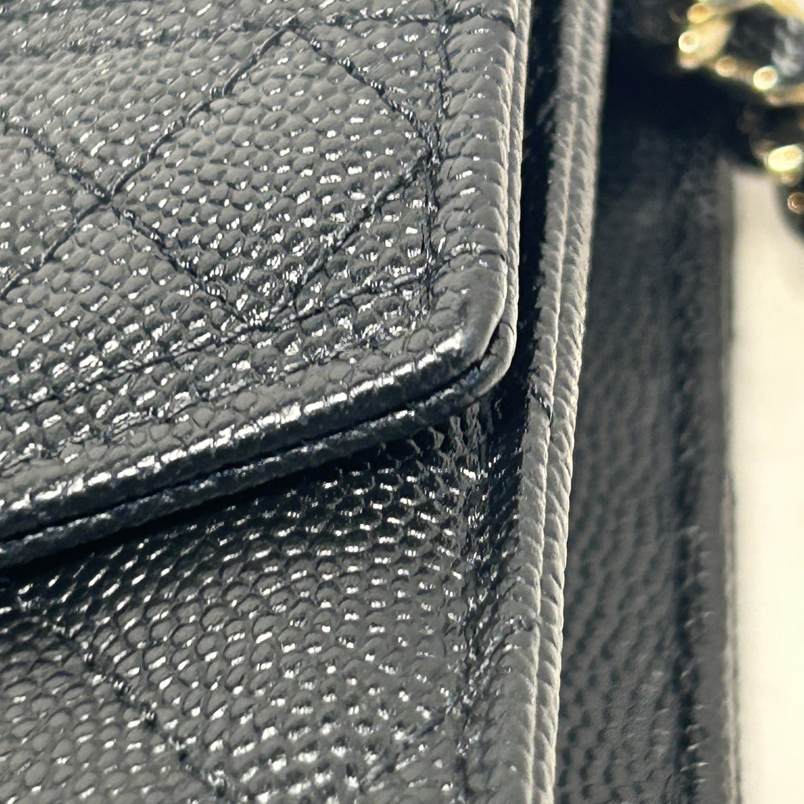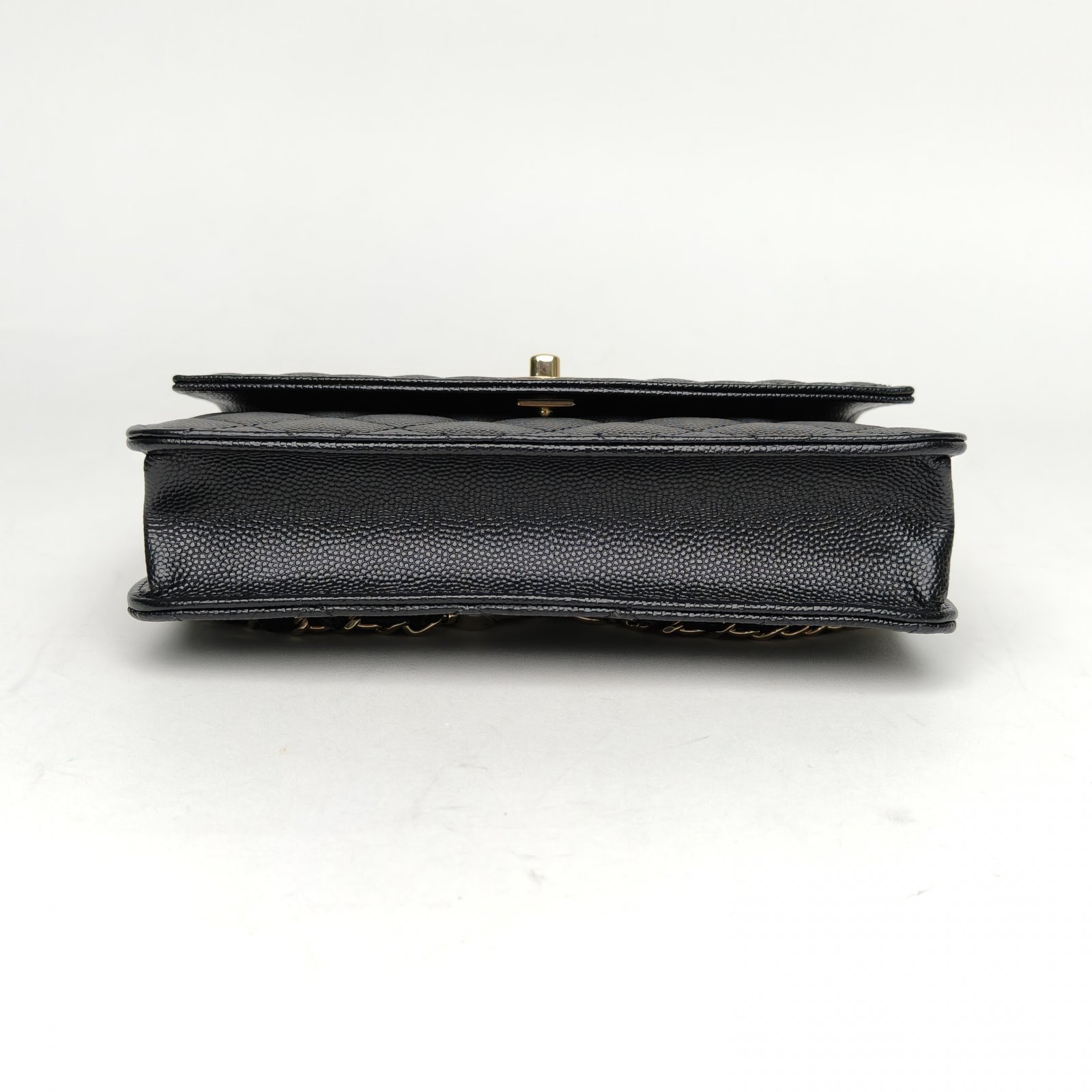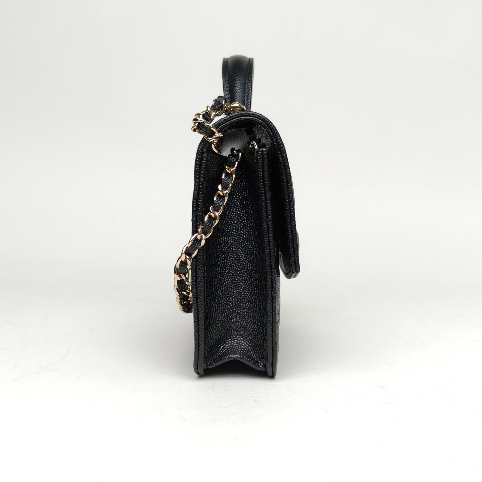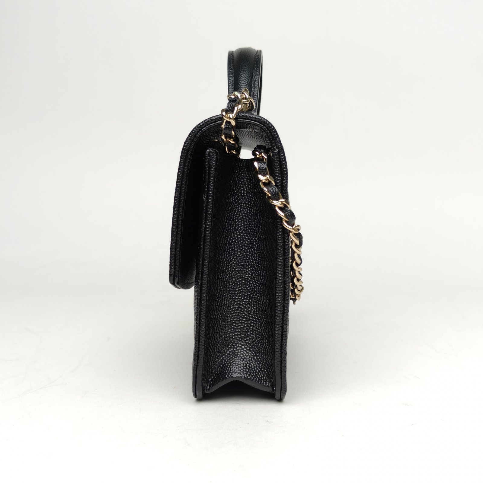 Crafted from black caviar leather with diamond quilting and CC hardware, this 25C accordion backpack features a top handle and chain strap, a unique luxury piece.