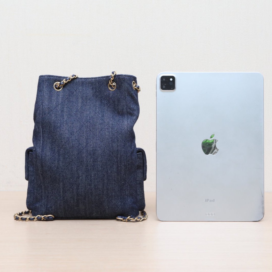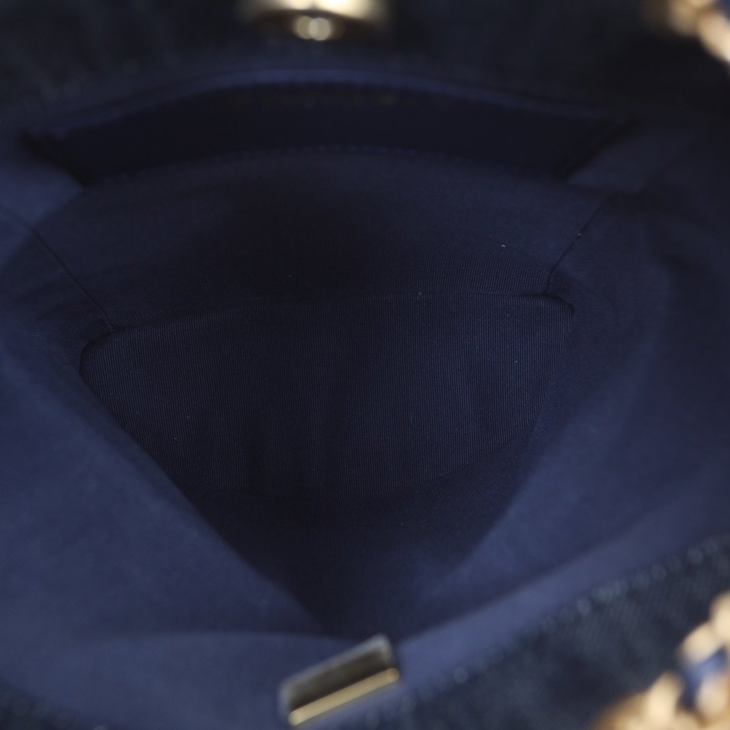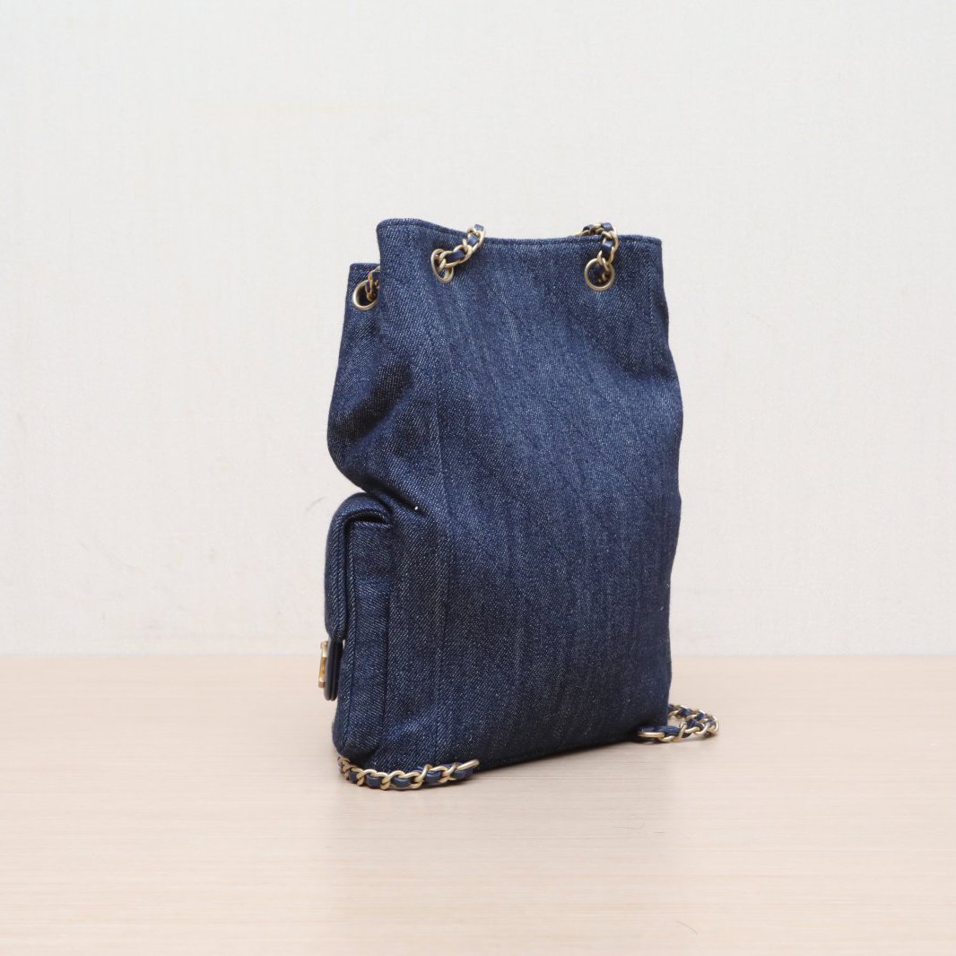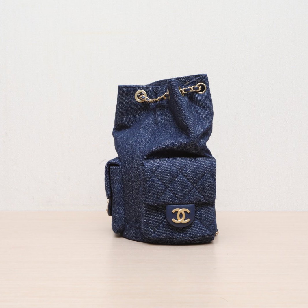 Crafted from durable denim with iconic CC hardware, this drawstring backpack features a casual design with multiple pockets.