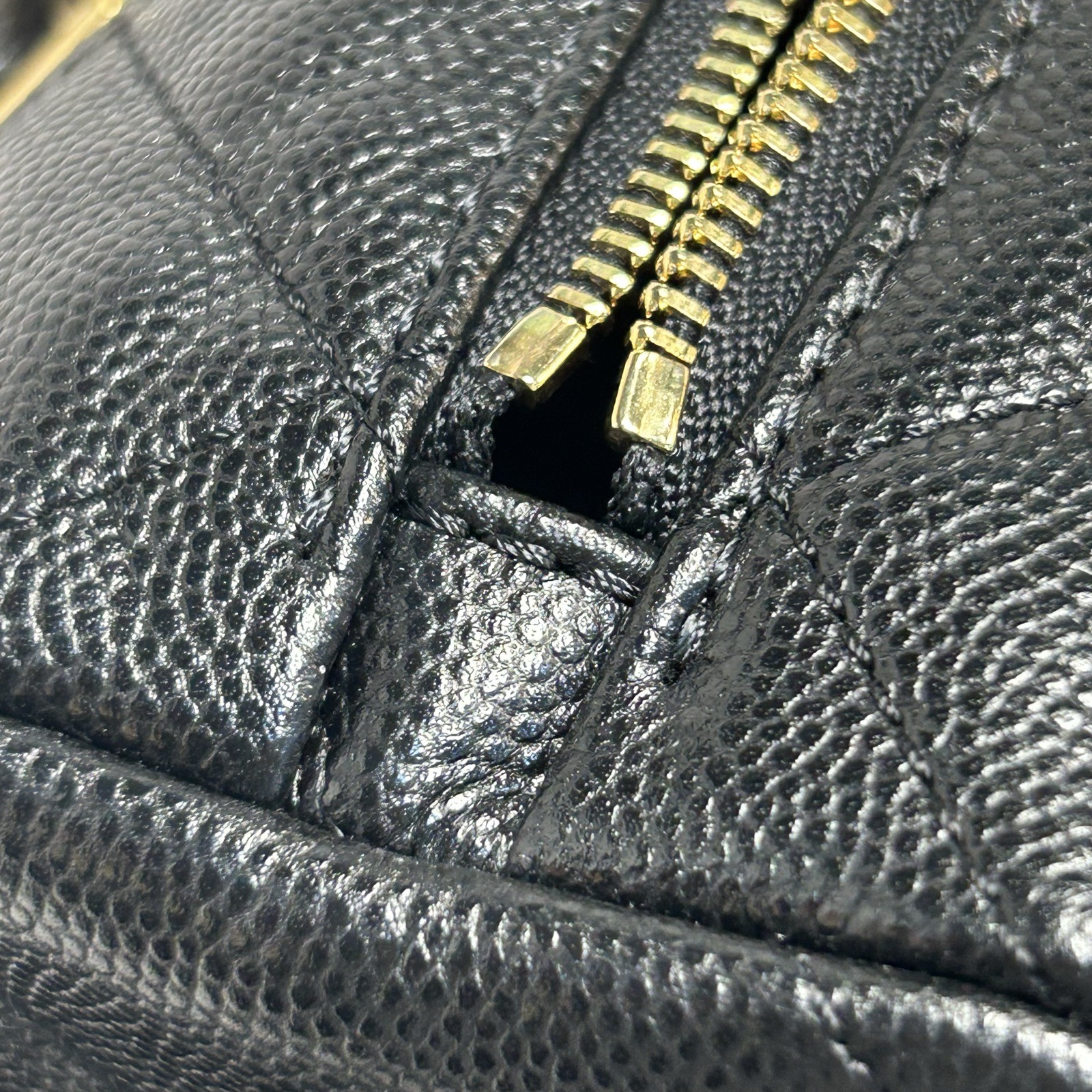 Embodying Chanel’s modern luxury, the 25K Bowling Bag is crafted from black caviar leather with interwoven chain and polished gold hardware, chip authenticated post-2021. A sleek and versatile everyday statement piece.