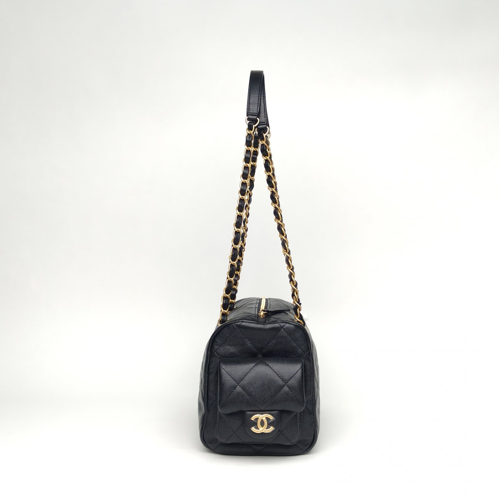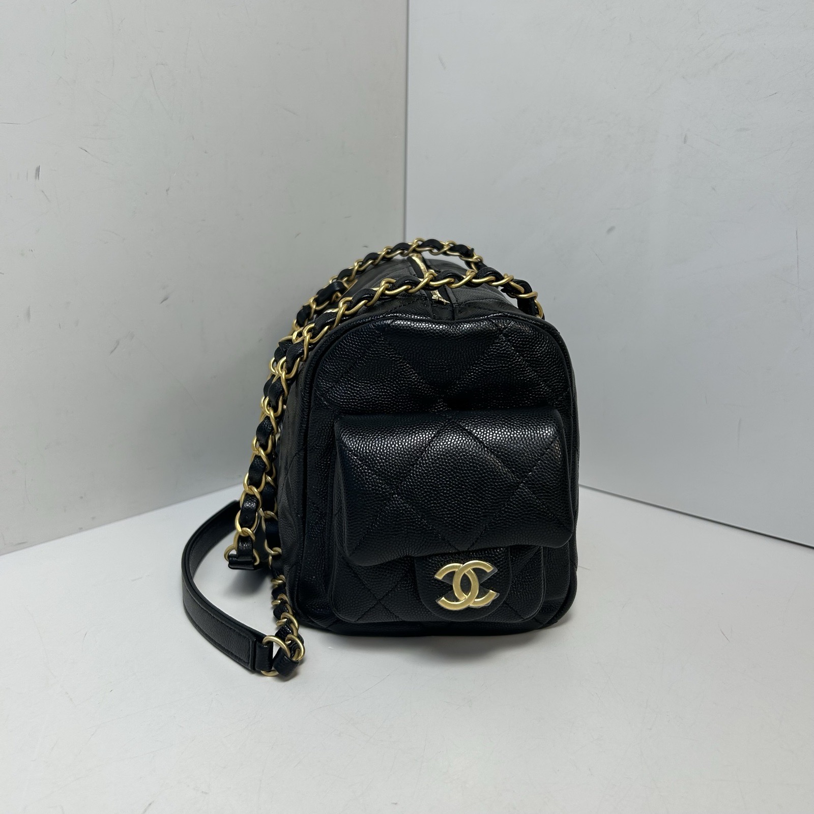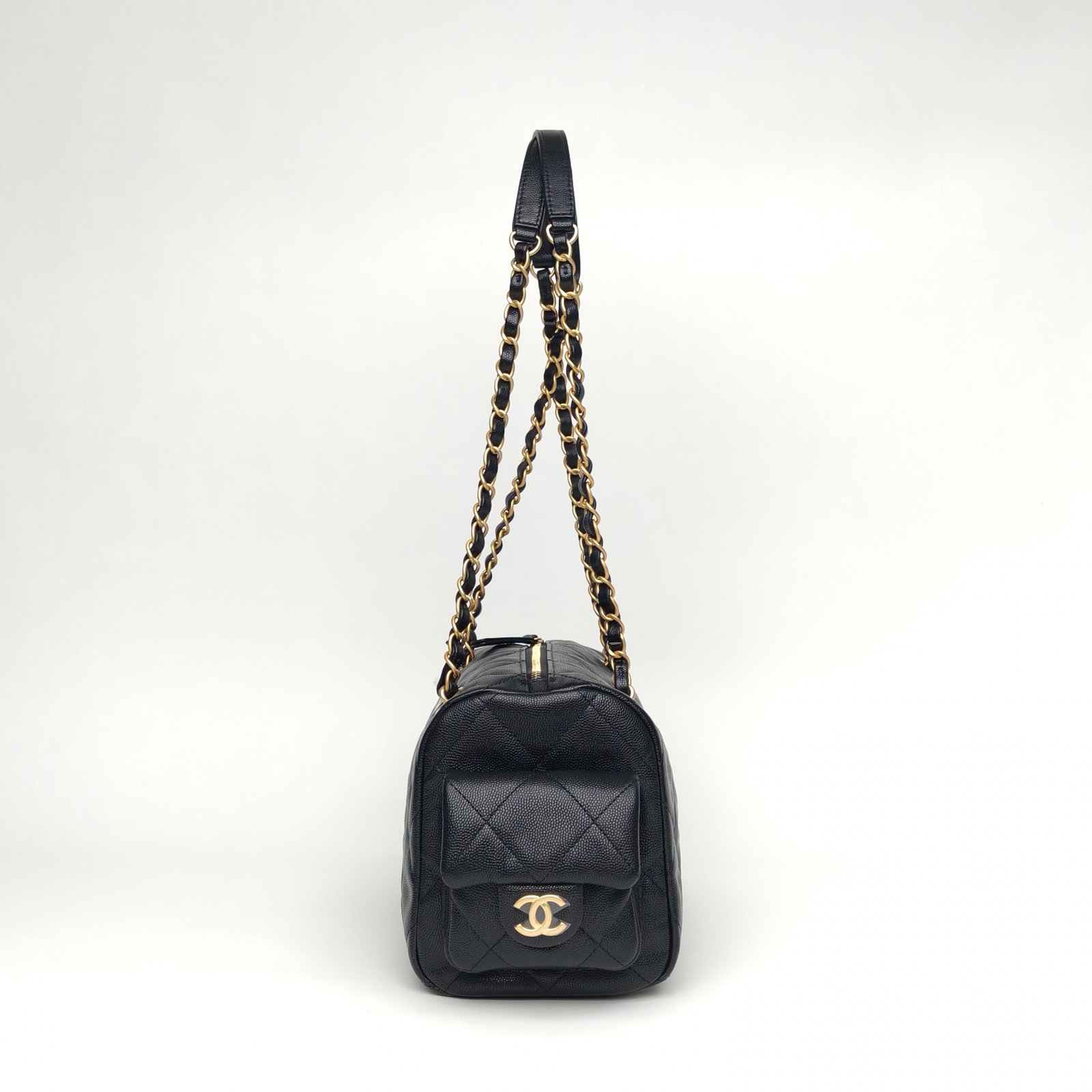 Chanel 25K Bowling Bag Small Black Caviar Gold Hardware