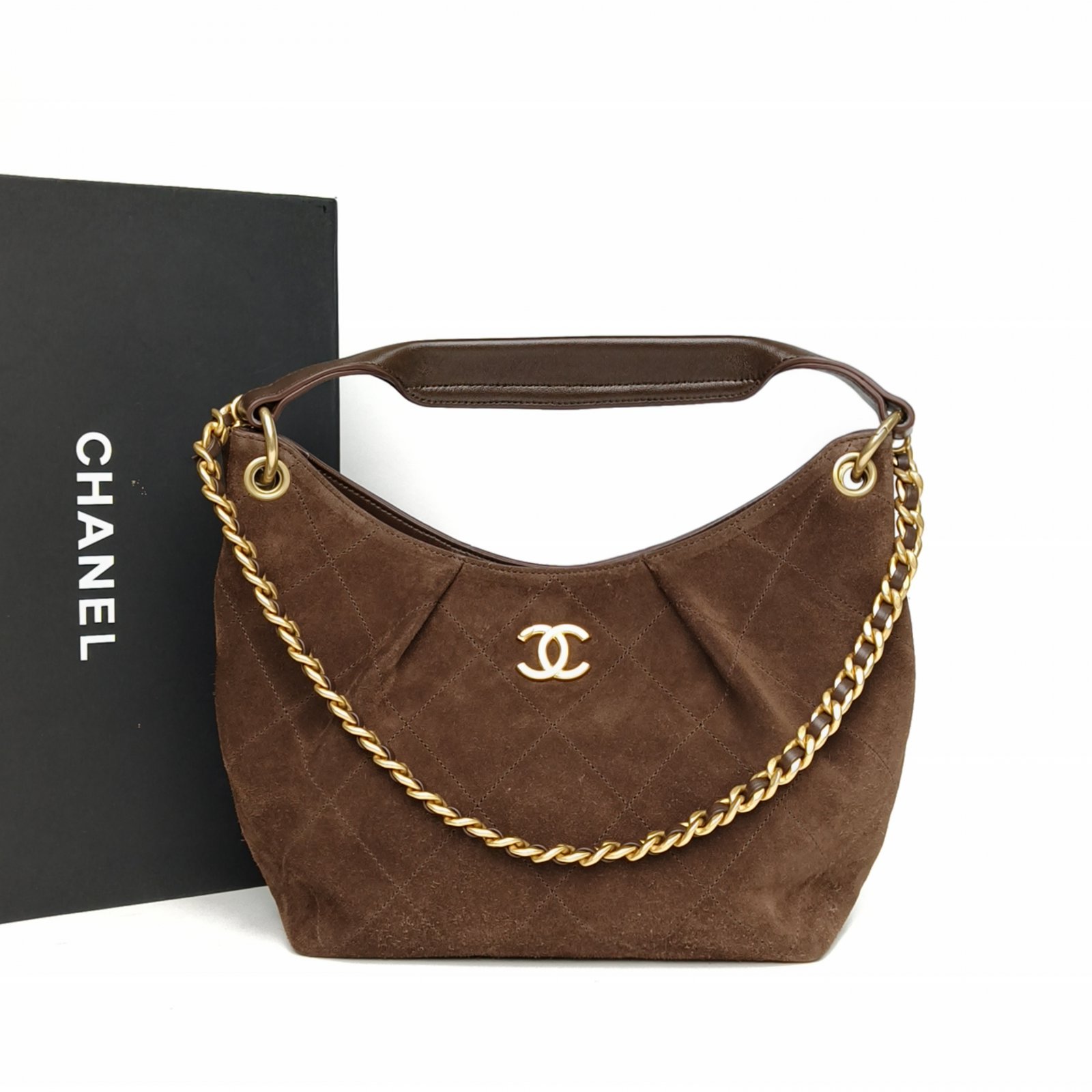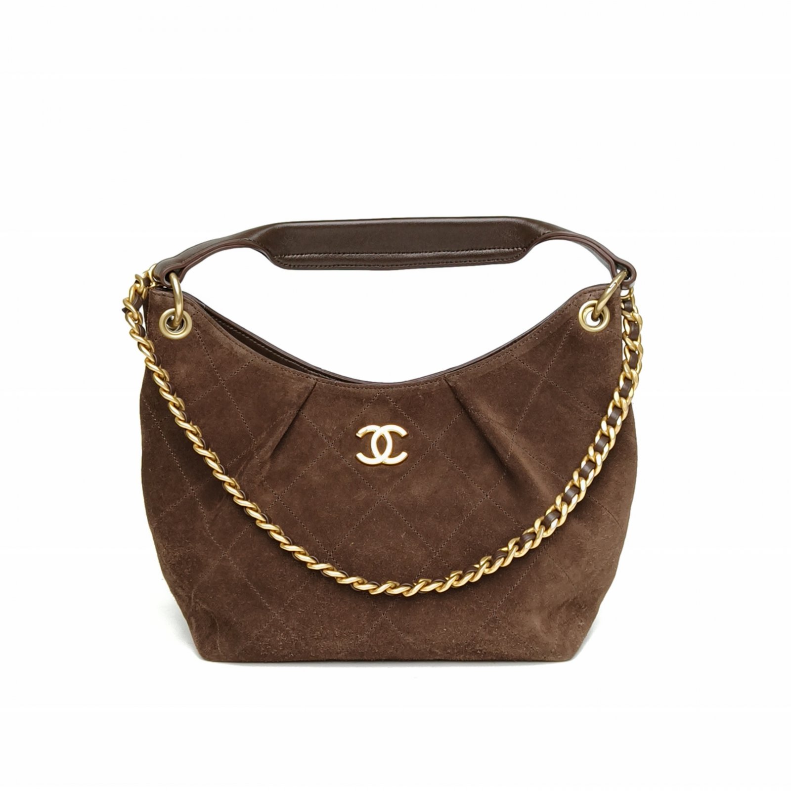 Chanel 26C Hobo Bag Small Brown Suede Gold Hardware