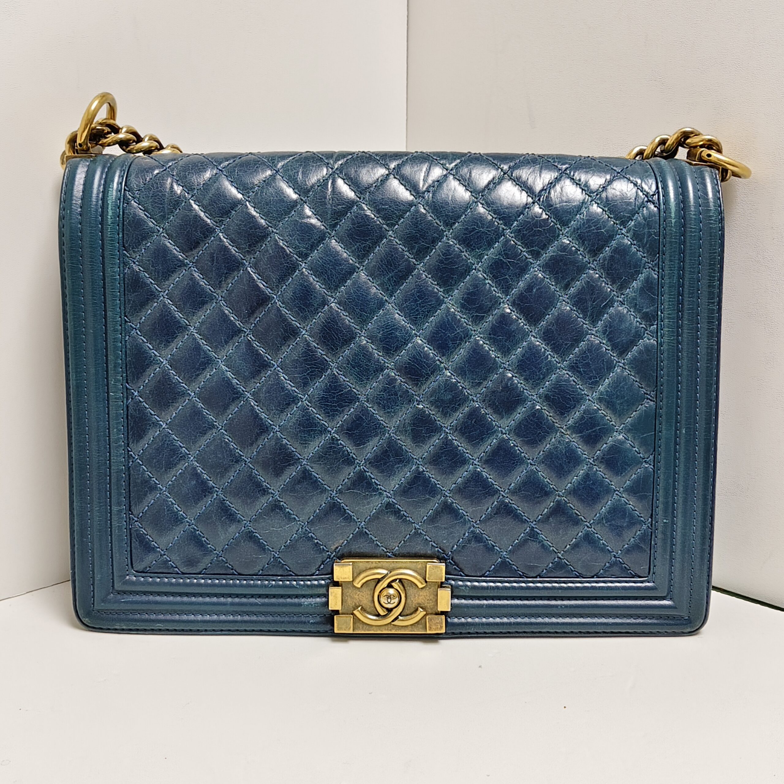 Chanel Boy Bag 30cm in Blue Leather