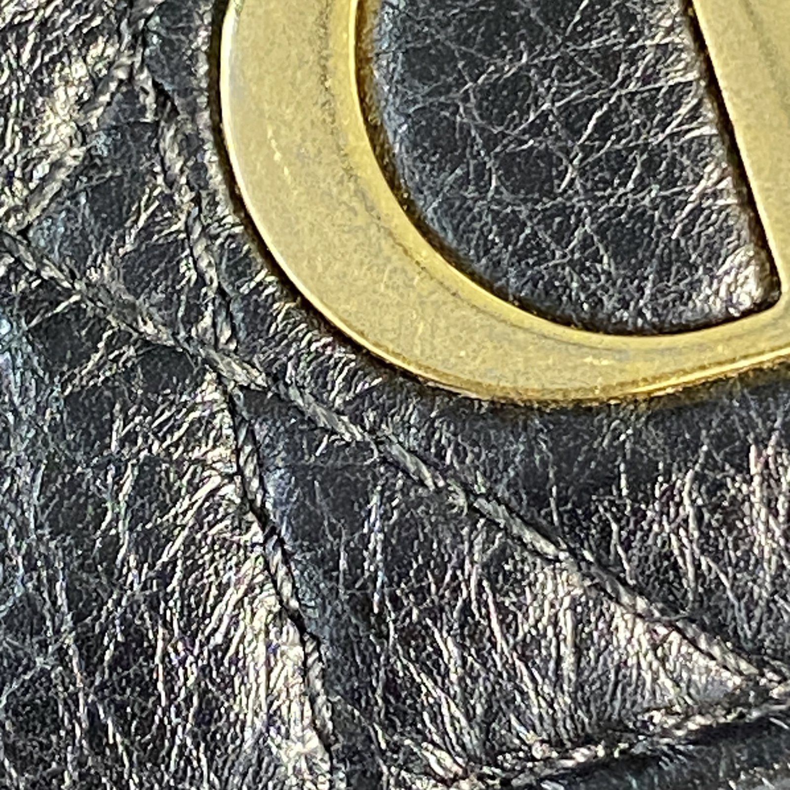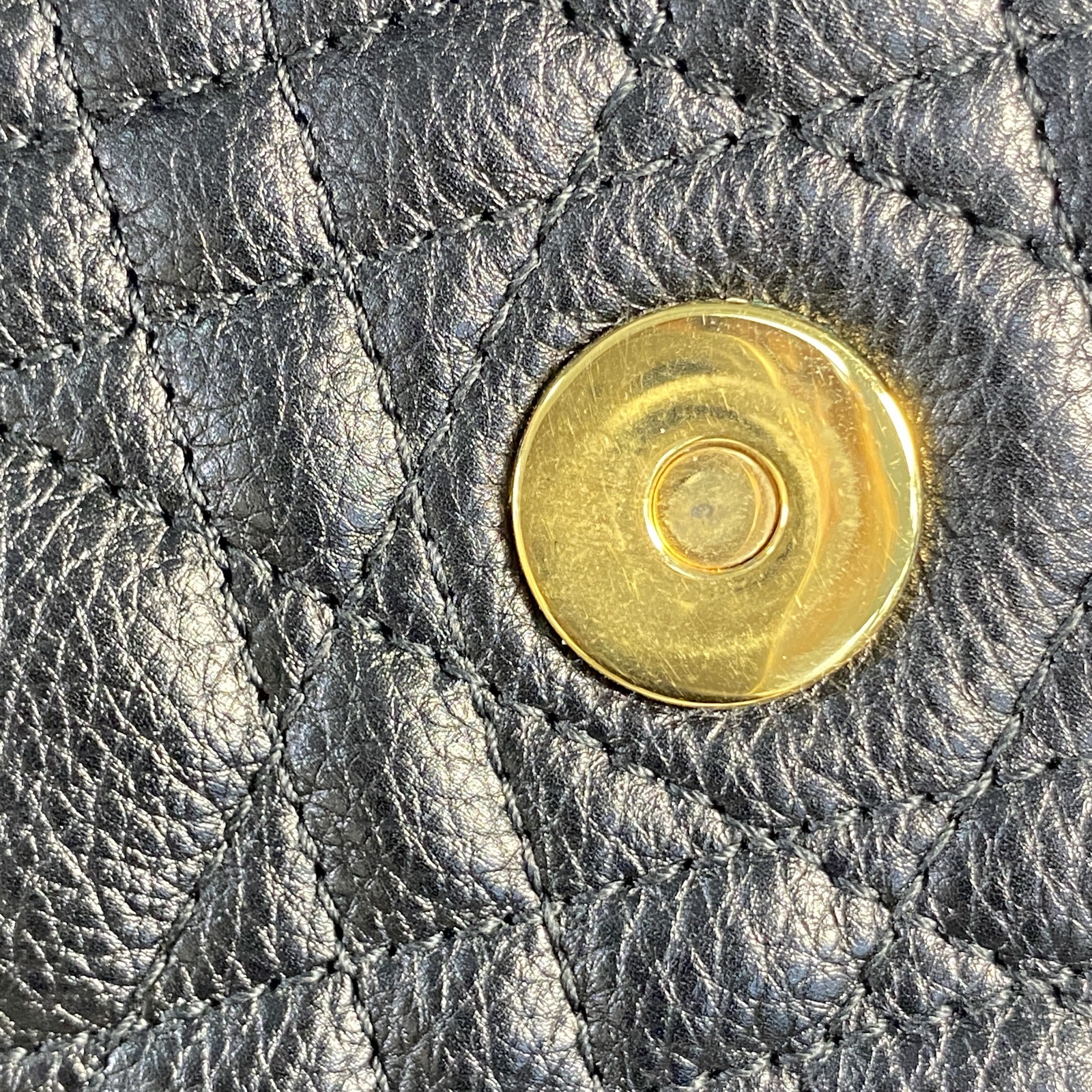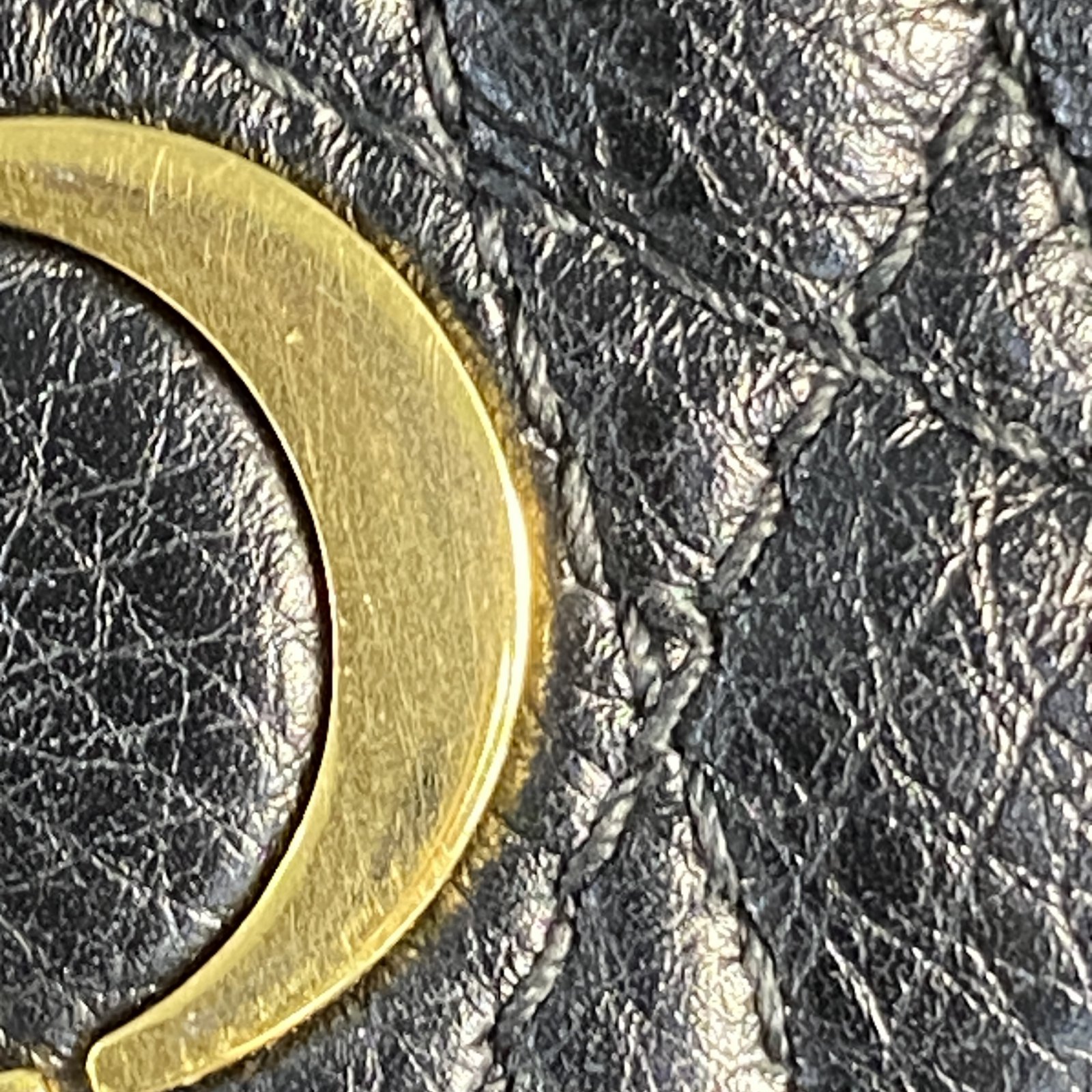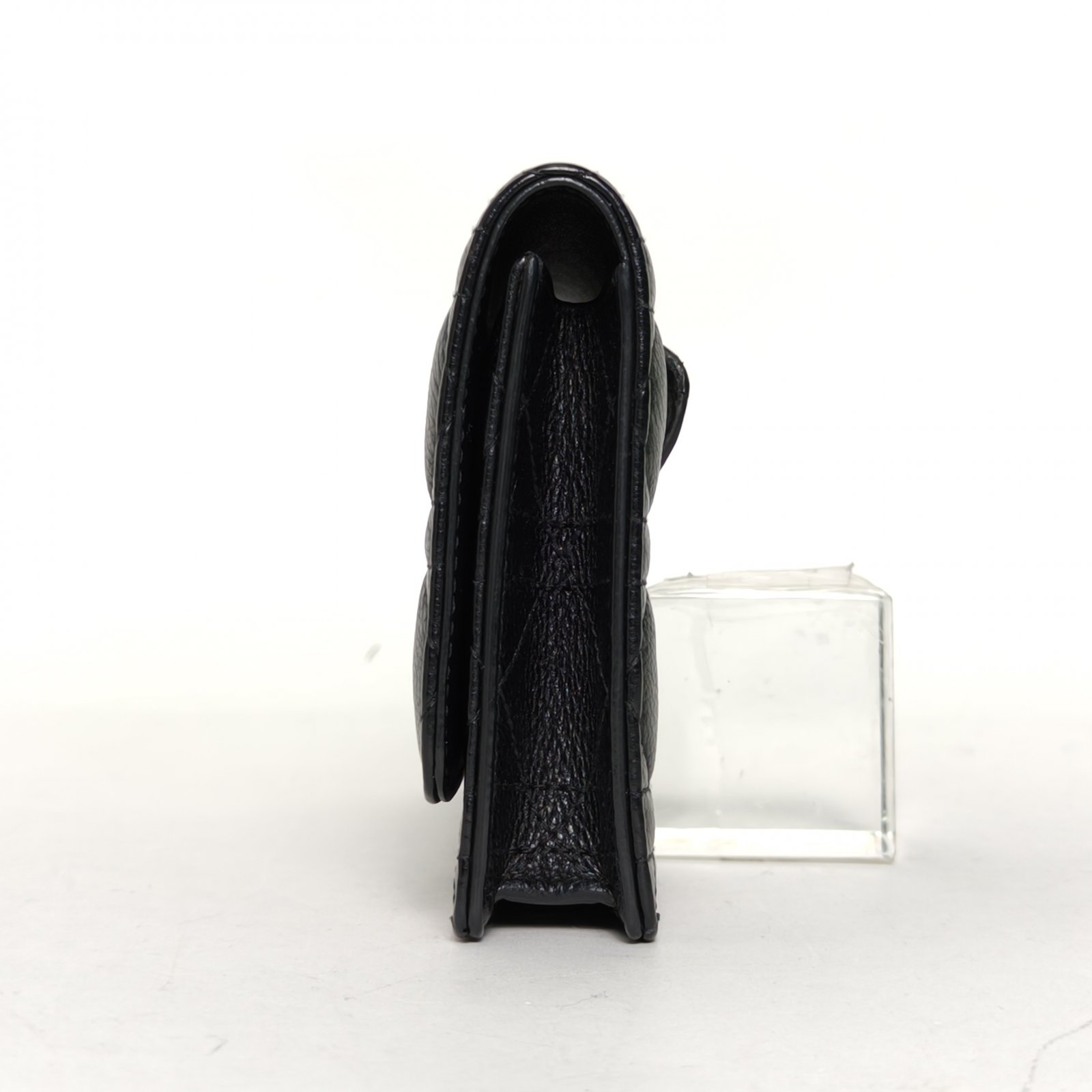 This Chanel Caro chain WOC is crafted from black leather with gold-tone hardware, featuring a quilted pattern and interlocking CD clasp.