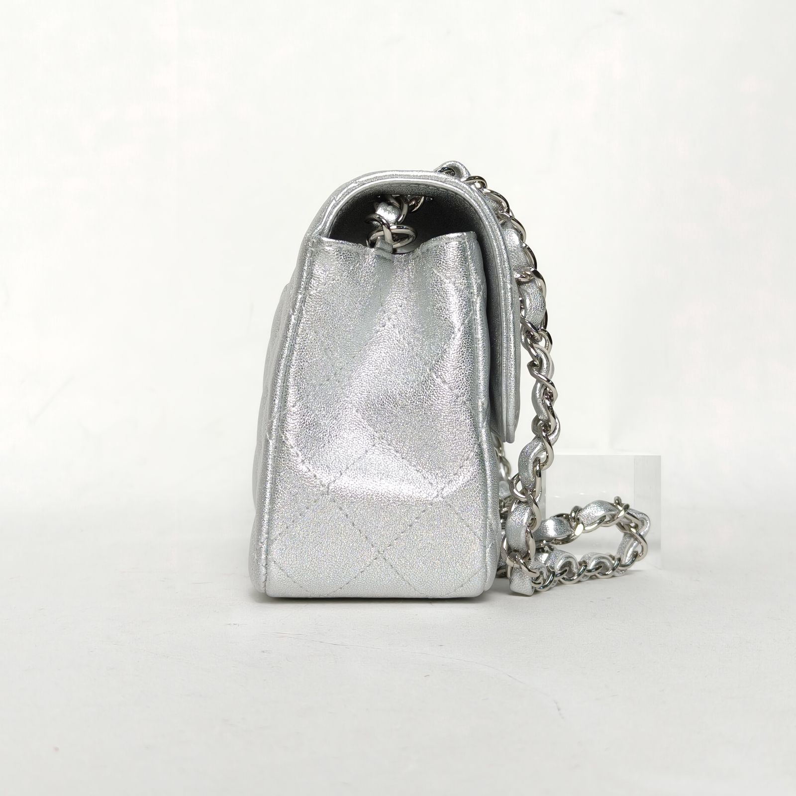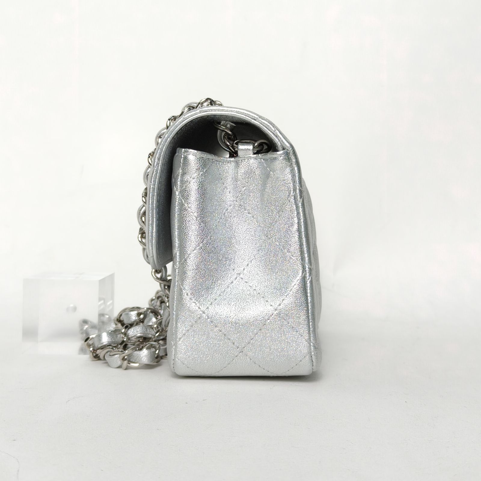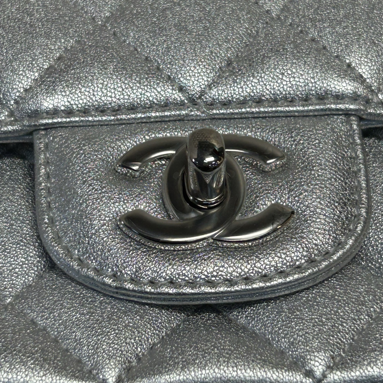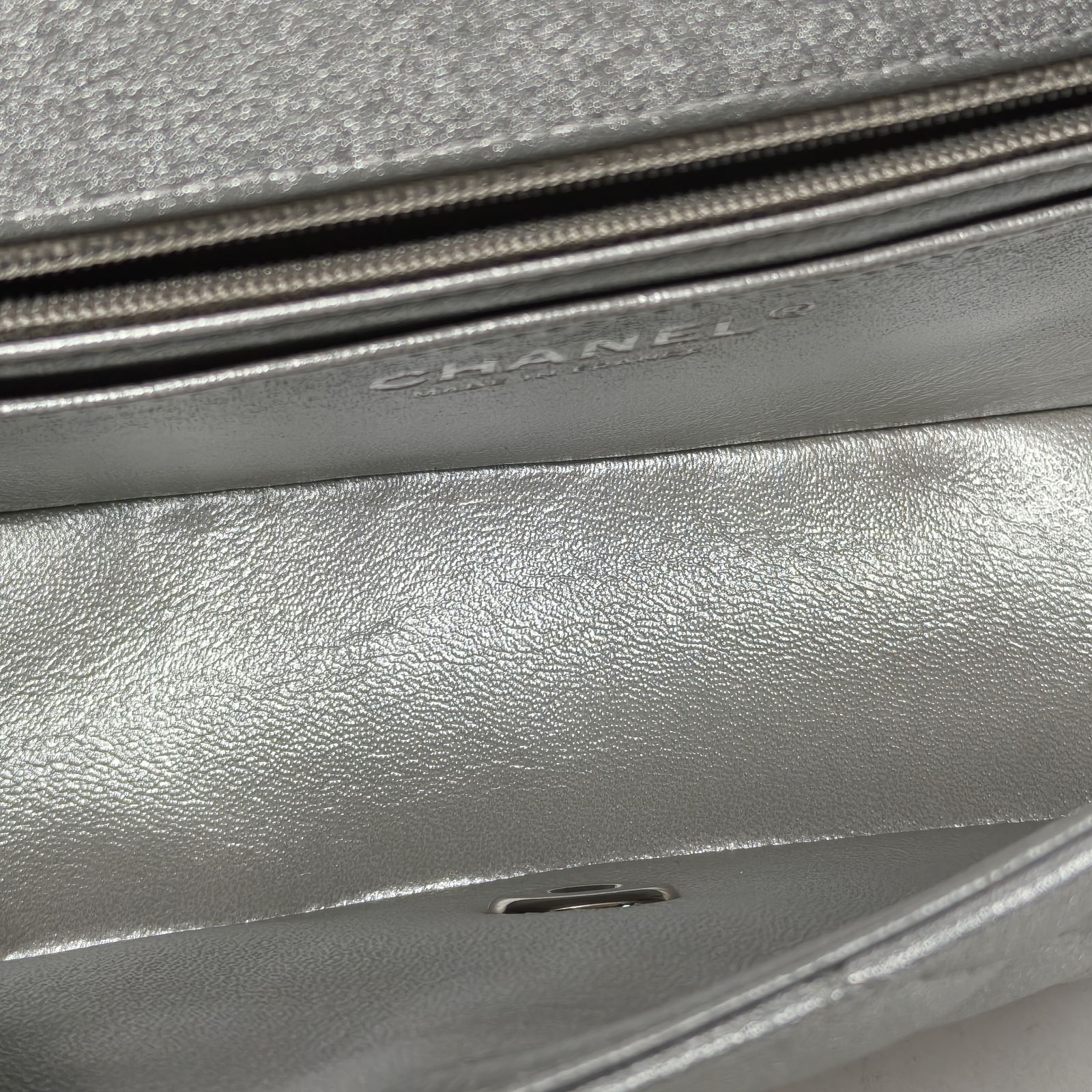 CHANEL CF Flap Bag Large Mini 20cm in Silver Leather