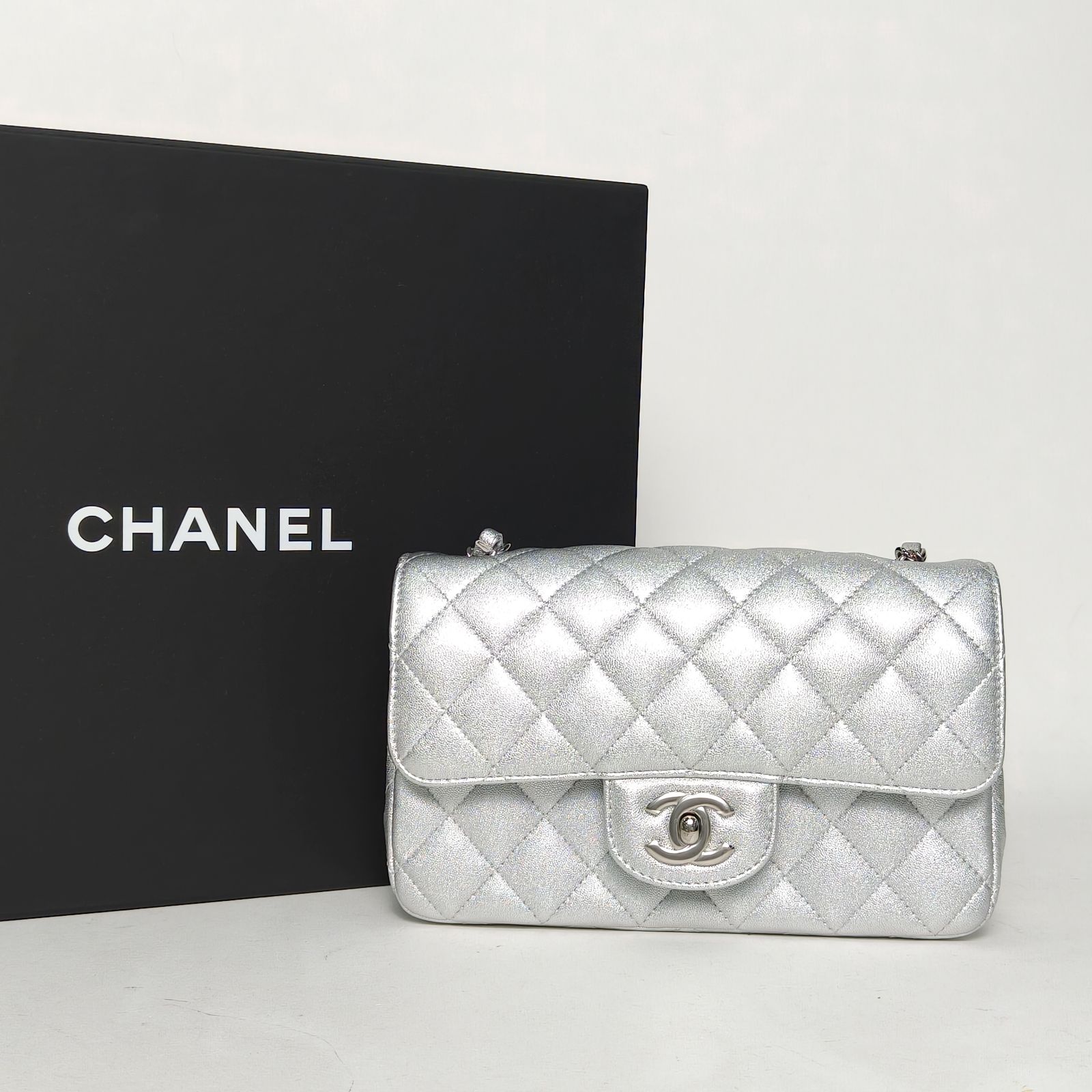Be the first to review “CHANEL CF Flap Bag Large Mini 20cm in Silver Leather” Cancel reply