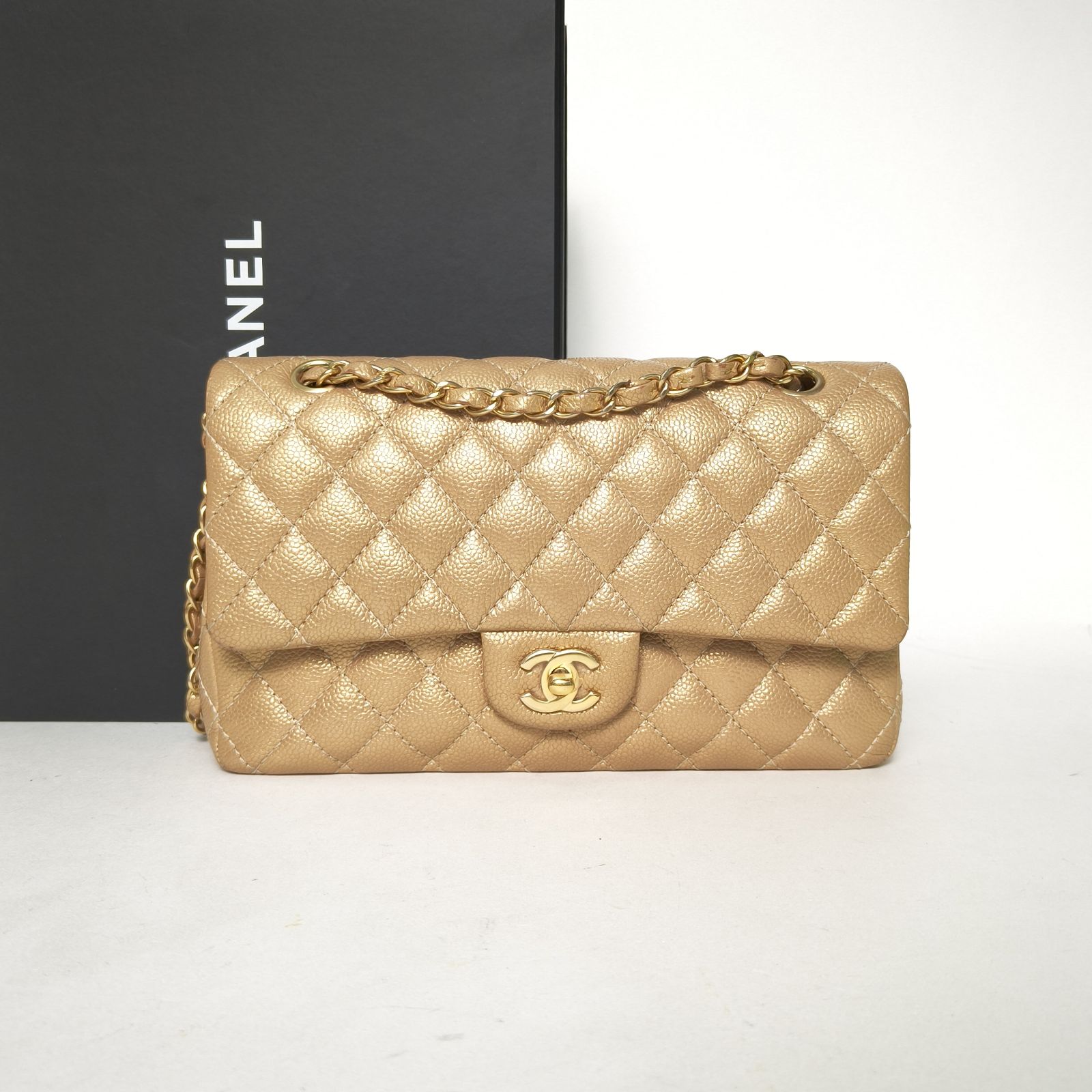 CHANEL CF Flap Bag Medium 25.5cm in Gold Caviar Leather
