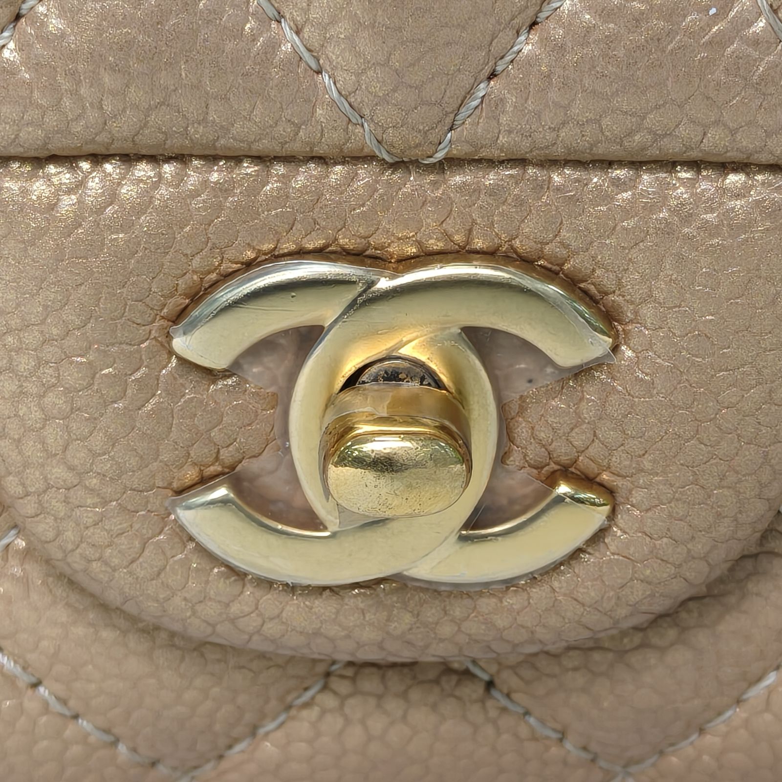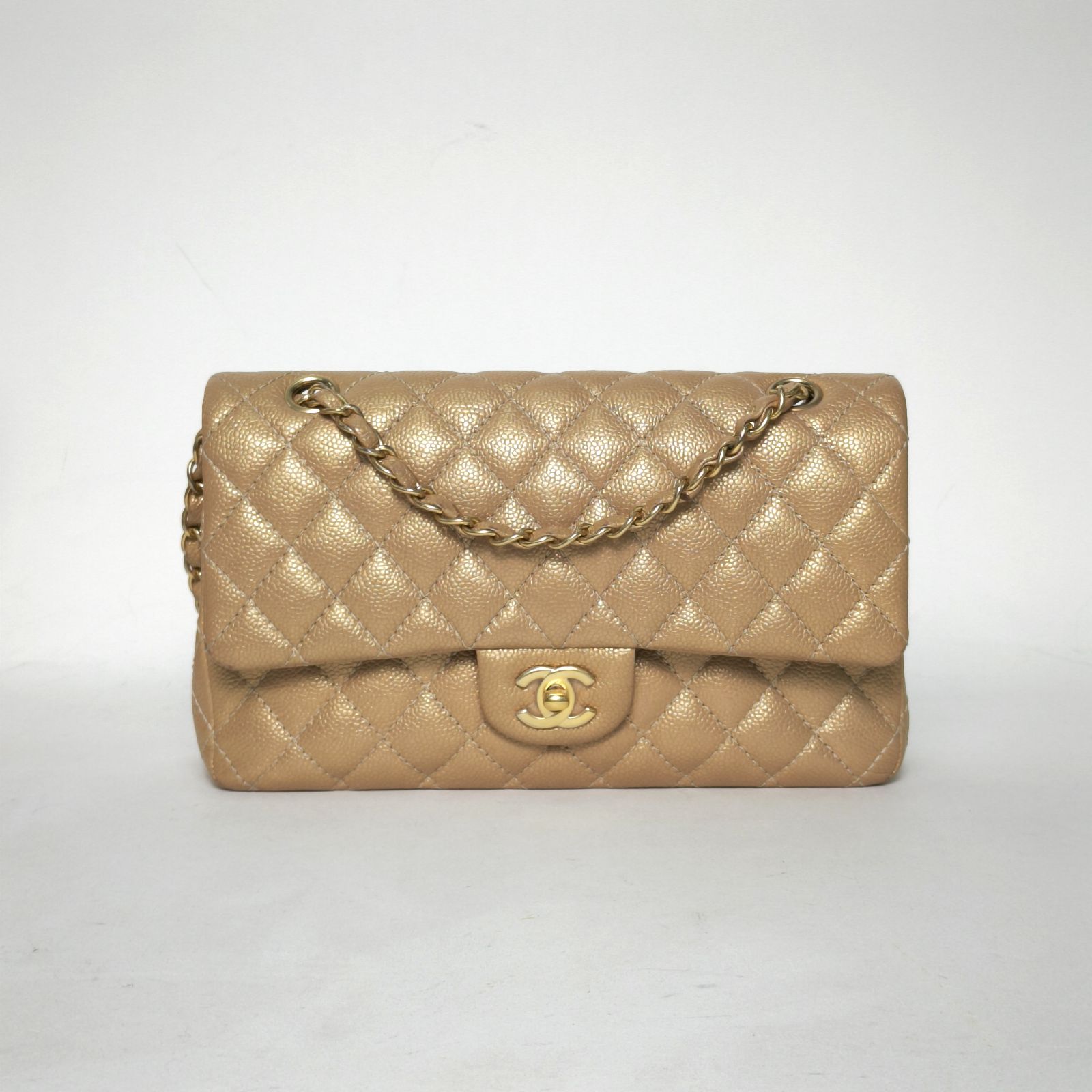 Crafted from gold caviar leather with classic diamond quilting and gold-tone CC hardware, this CF medium 25.5cm flap bag is a timeless luxury icon for daily use.
