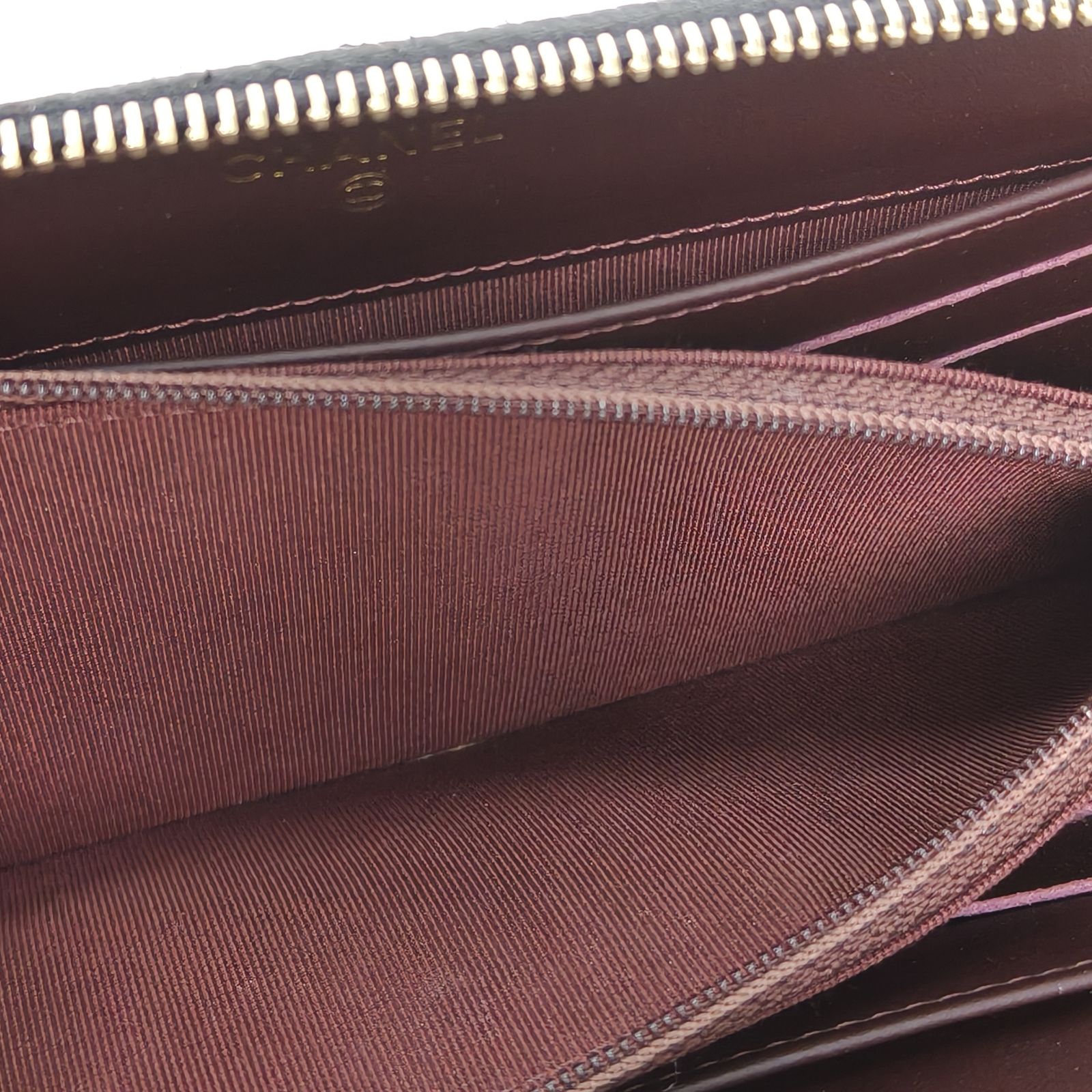 Chanel CF Long Zip Wallet 19cm in Black Grained Leather