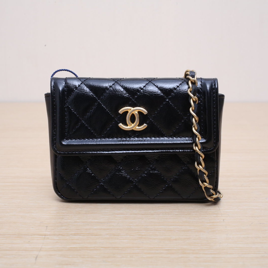 Crafted from premium leather with classic diamond quilting and gold-tone CC hardware, this CF mini 10cm bag features a detachable chain strap, a timeless luxury icon.