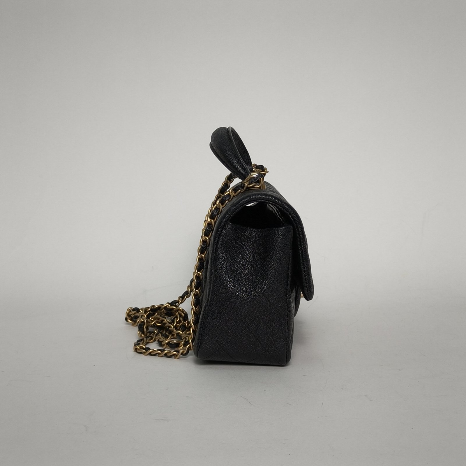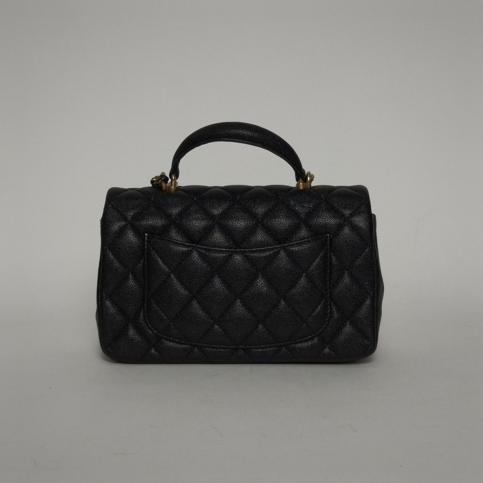 The Chanel CF Top Handle leather handba is a graceful and ladylike structured flap bag crafted from textured lychee calfskin featuring signature diamond quilting and elegant top handle with chain strap option, complete with luxurious gold-tone hardware, exceptional French savoir-faire and timeless Chanel poise in deep black. Feel free to click below for more consultation.