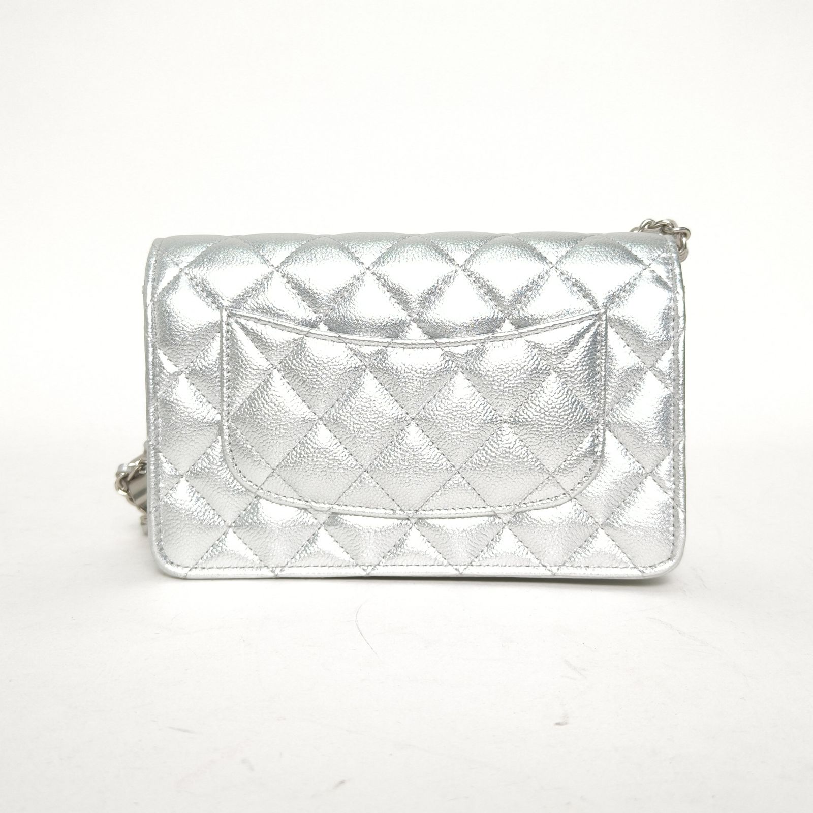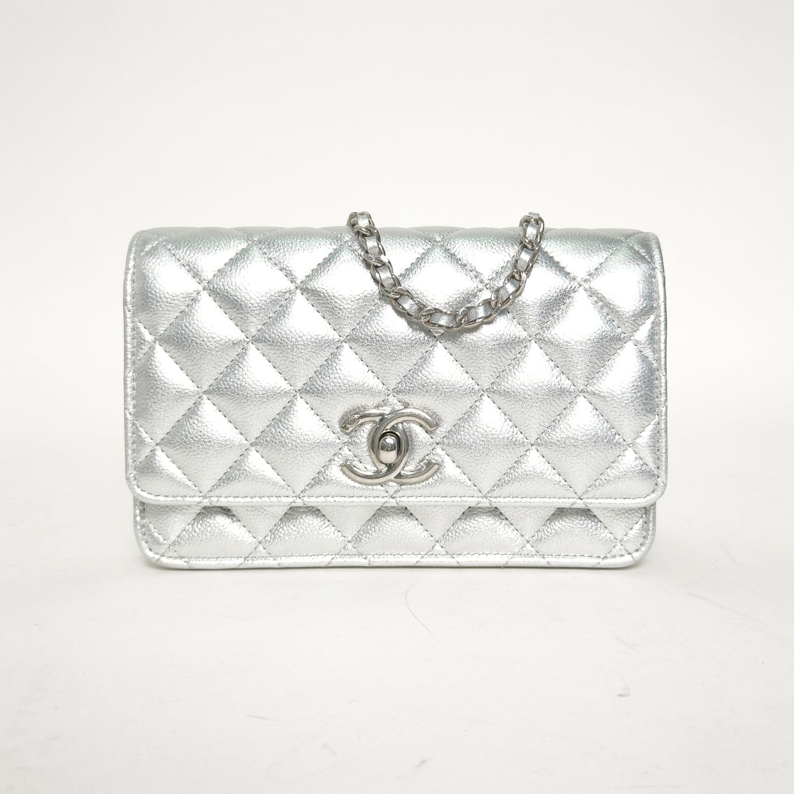 Crafted from premium leather with classic diamond quilting and silver-tone CC hardware, this CF WOC 19cm features a detachable strap, a timeless luxury icon.