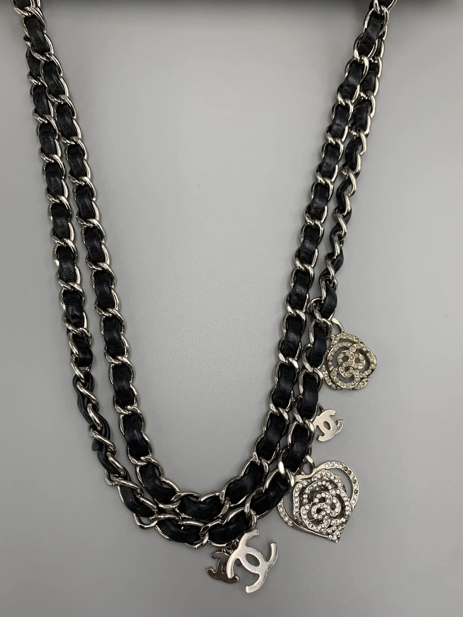 The Chanel Classic Double Flap bag is an iconic and elegant double-flap shoulder bag crafted from buttery lambskin featuring quilted pattern and a chain strap adorned with colorful heart and emblem charms, complete with sleek silver-tone hardware and playful Chanel refinement in classic black. Feel free to click below for more consultation.