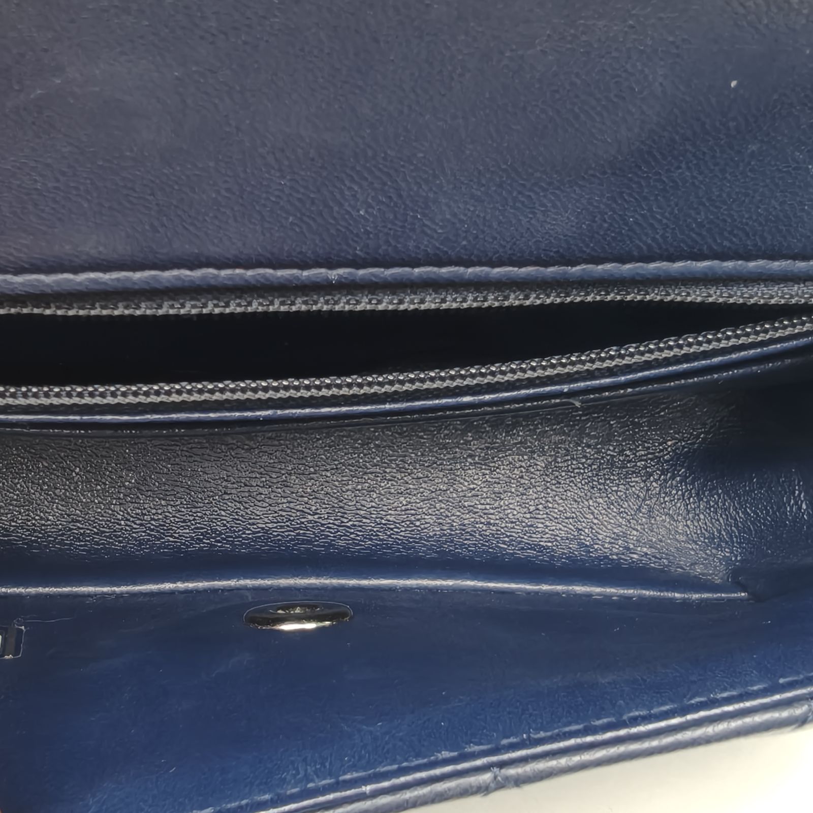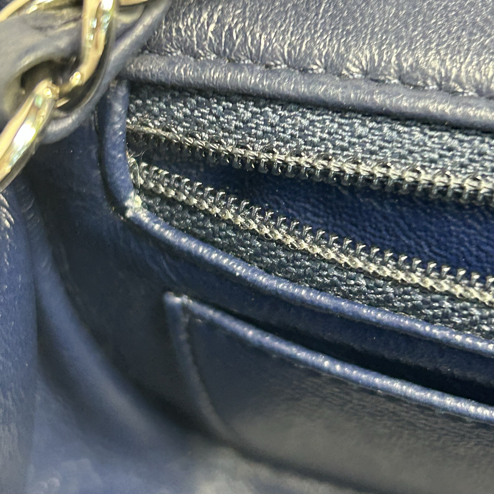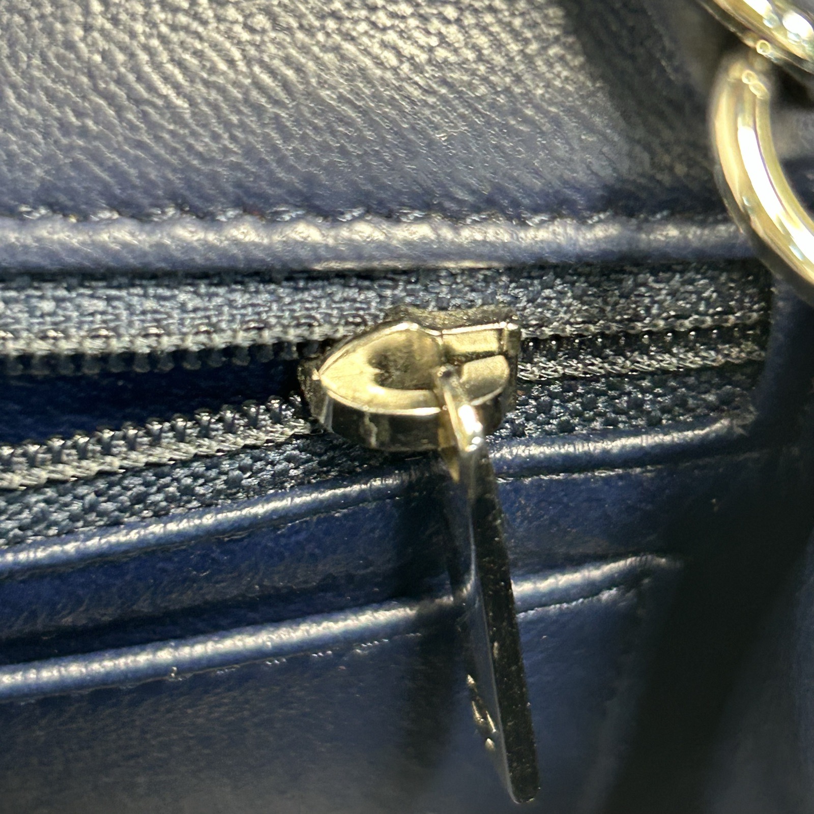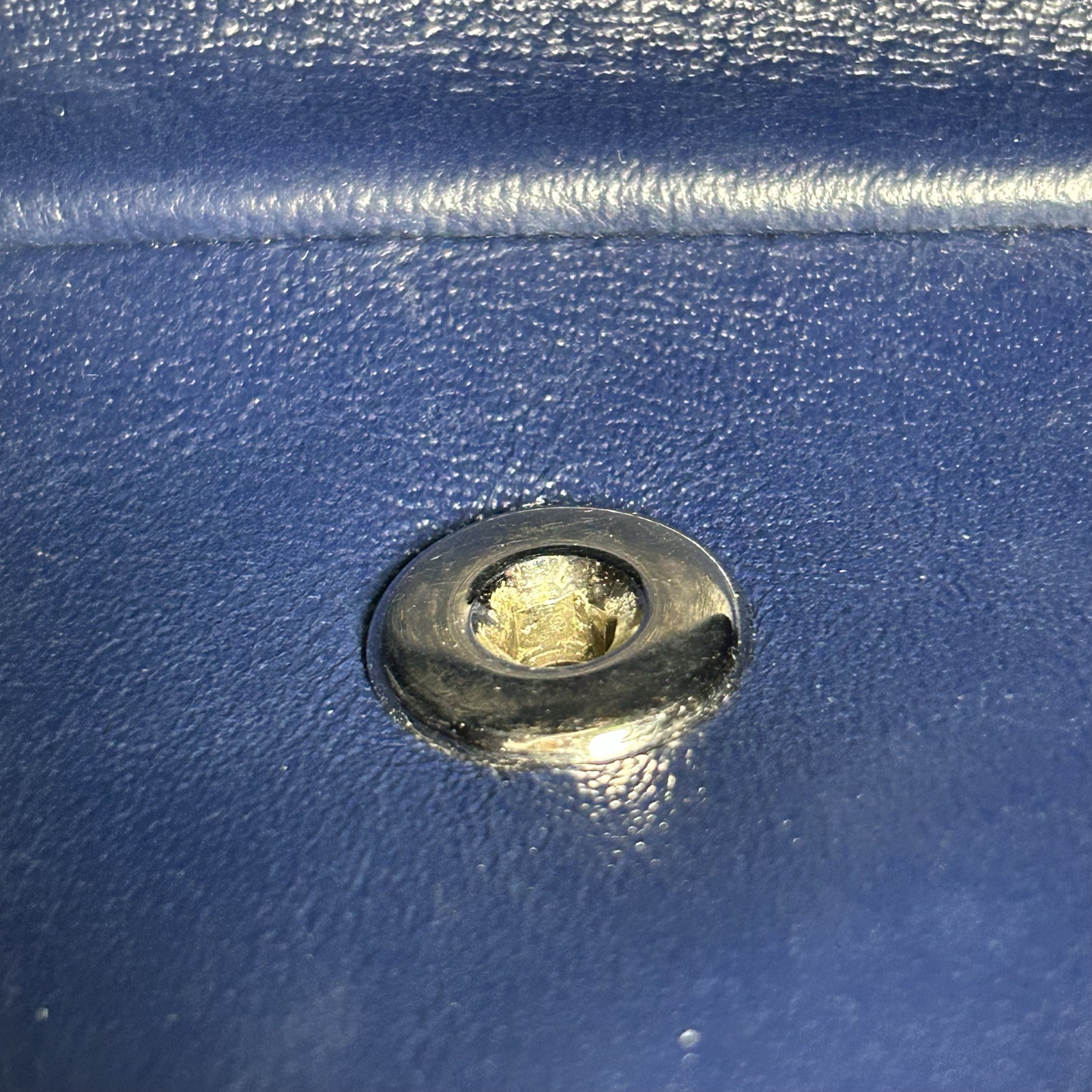 Embodying Chanel’s timeless charm, the Classic Flap Large Mini 20 is crafted from blue caviar leather with polished silver hardware and a 29 open 2020 serial number. Its iconic quilted silhouette remains a luxury staple.
