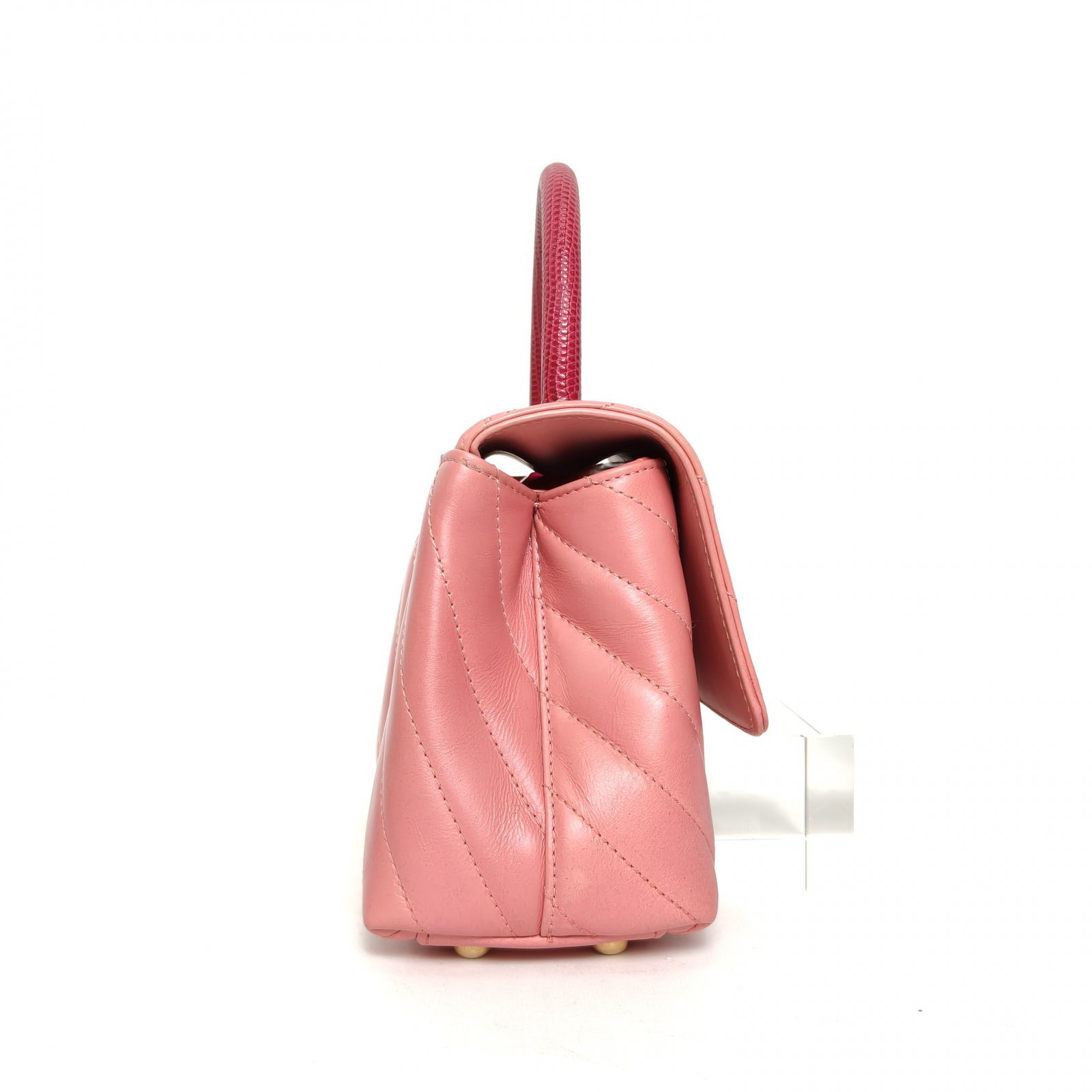 Crafted from premium leather with V-stitch and gold-tone CC hardware, this Coco Handle mini bag features a top handle and detachable strap, a stylish daily luxury piece.
