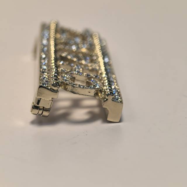 The Chanel Crystal Letter Logo Brooch is a stunning embodiment of modern luxury from the Fall 2023 collection. This architectural piece features a bold, rectangular frame crafted in radiant gold-tone metal, meticulously encrusted with shimmering pavé crystals. At its center, the ‘CHANEL’ name is spelled out in dazzling crystal-set lettering, creating a high-impact graphic statement. This brooch perfectly balances the Maison’s timeless elegance with a contemporary, logocentric aesthetic, making it a highly versatile accessory. As a recent release from the 2023 archives, it remains a favorite for collectors who appreciate pieces that seamlessly transition from classic formalwear to modern streetwear-inspired styling.