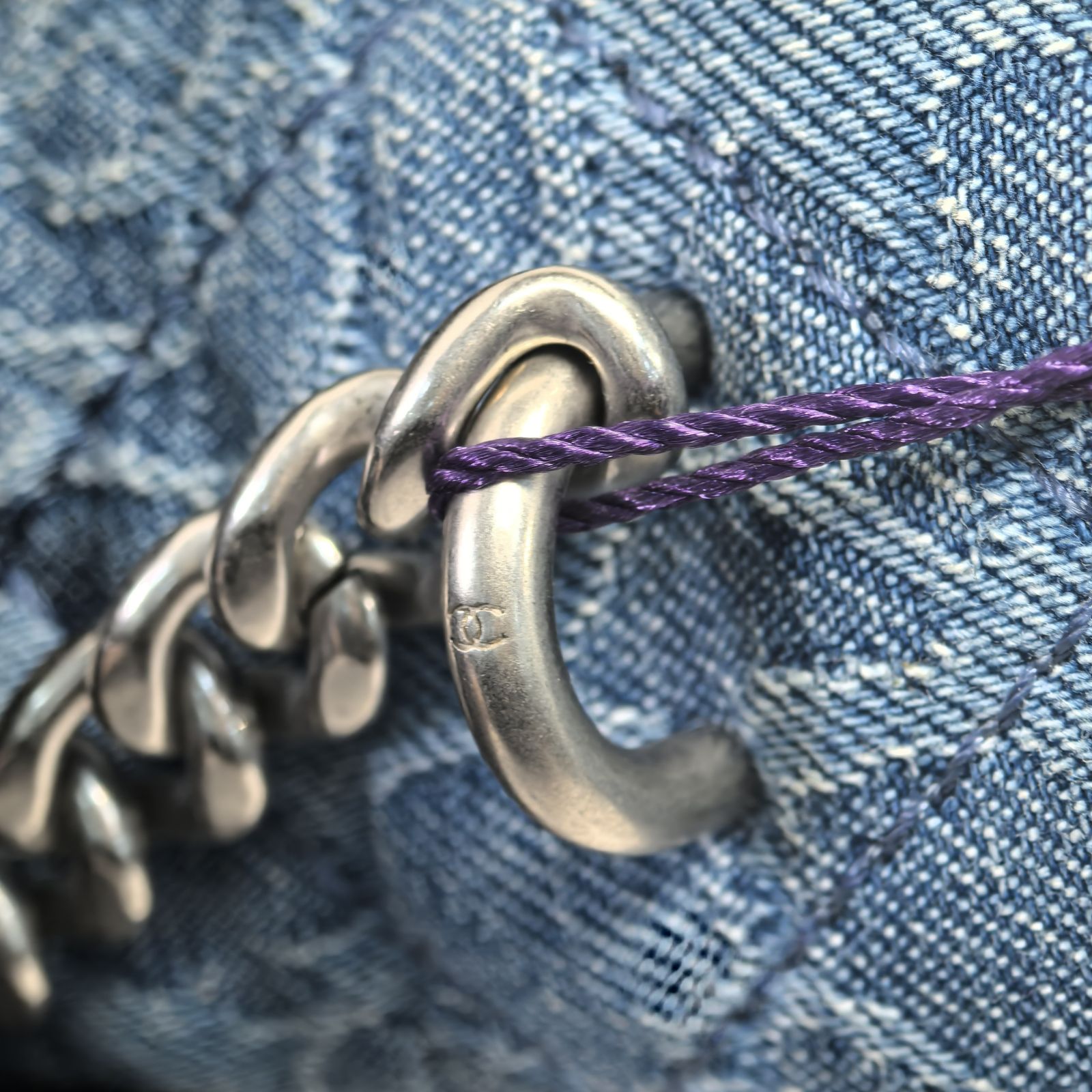 Be the first to review “CHANEL Denim Blue Denim Hobo Bag with Heart Gold Ball Strap” Cancel reply