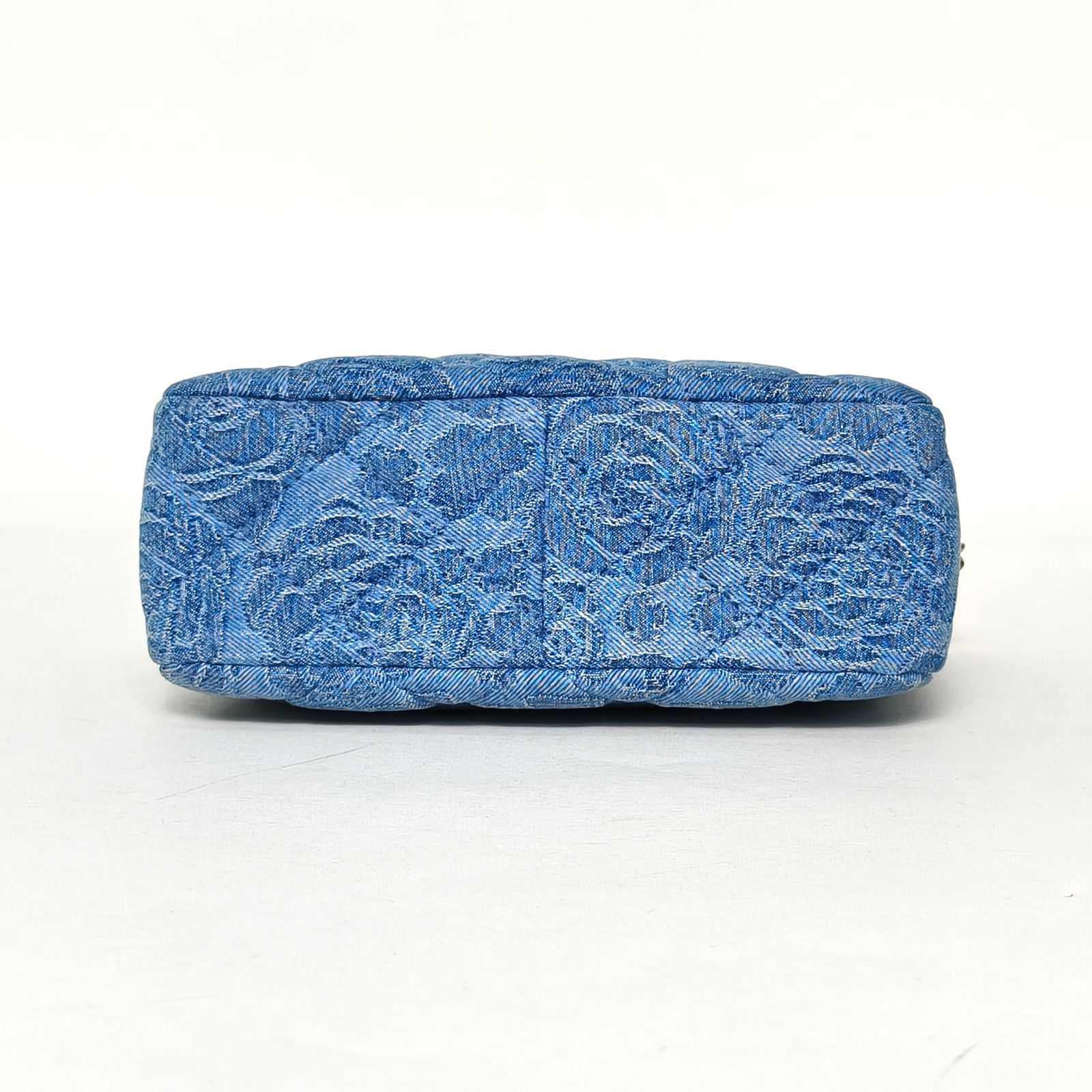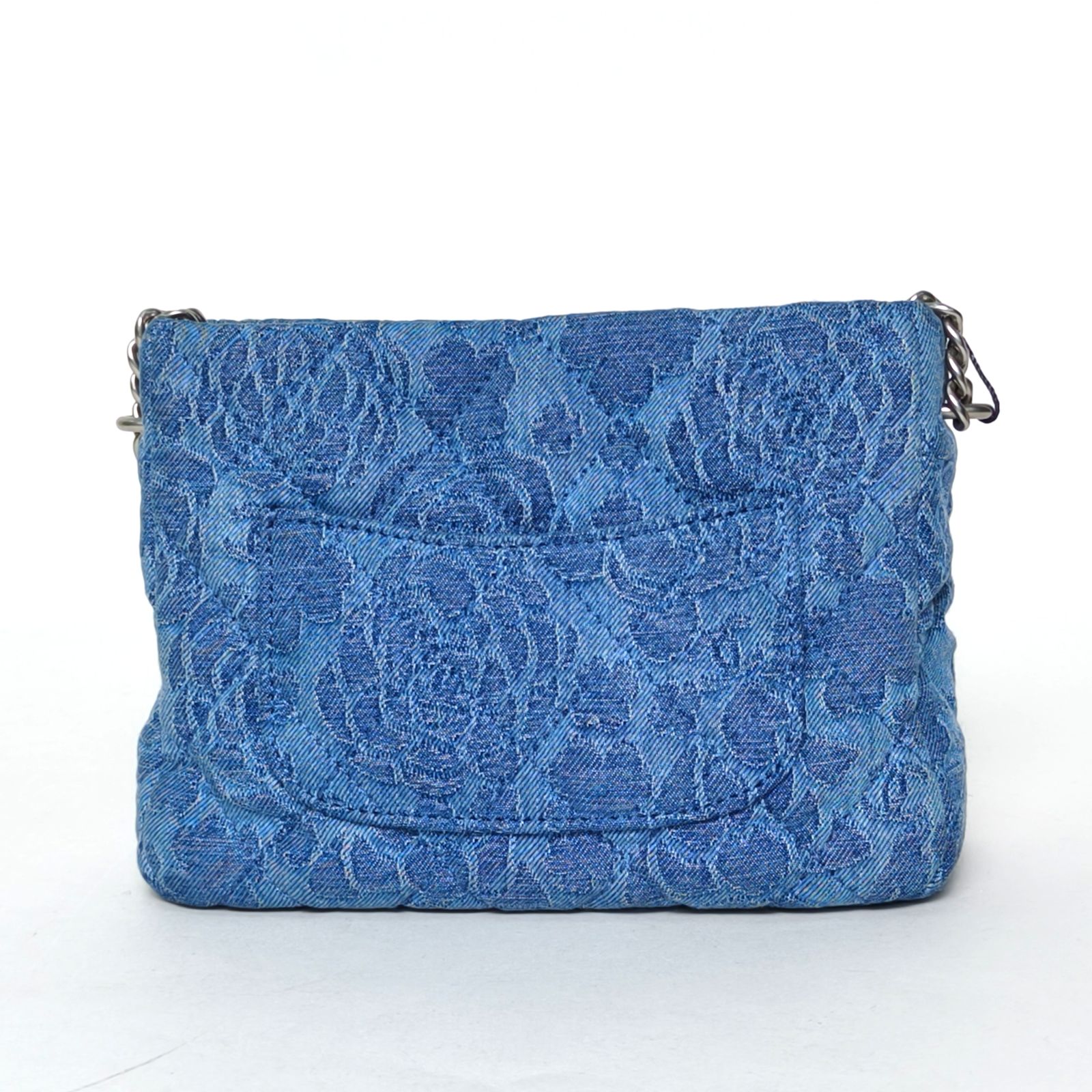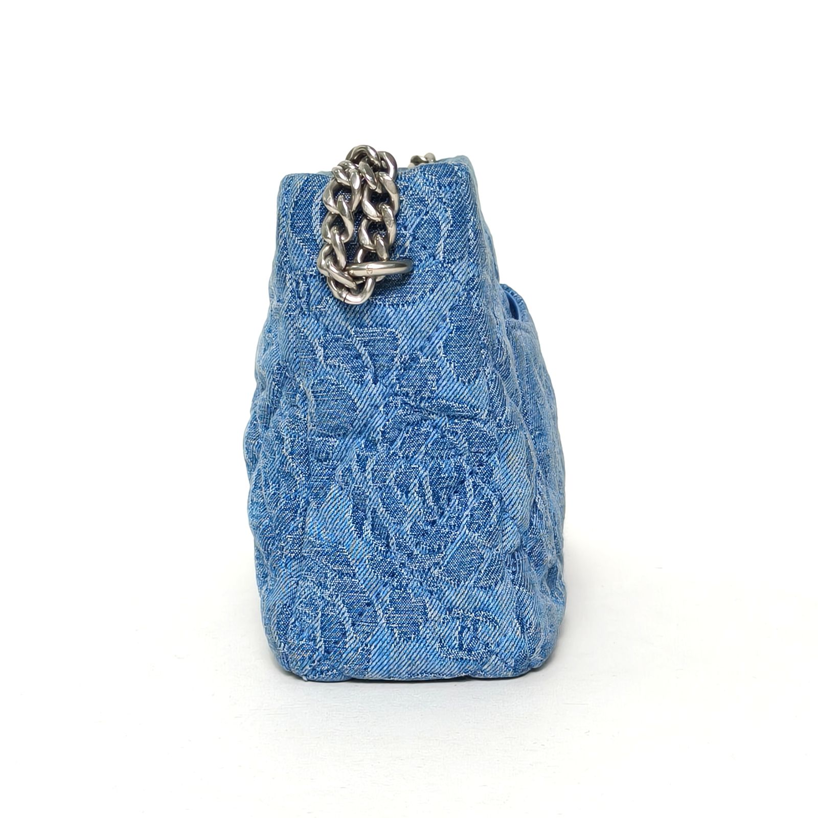 This CHANEL hobo bag is crafted from blue denim with a heart gold ball strap for a stylish look.