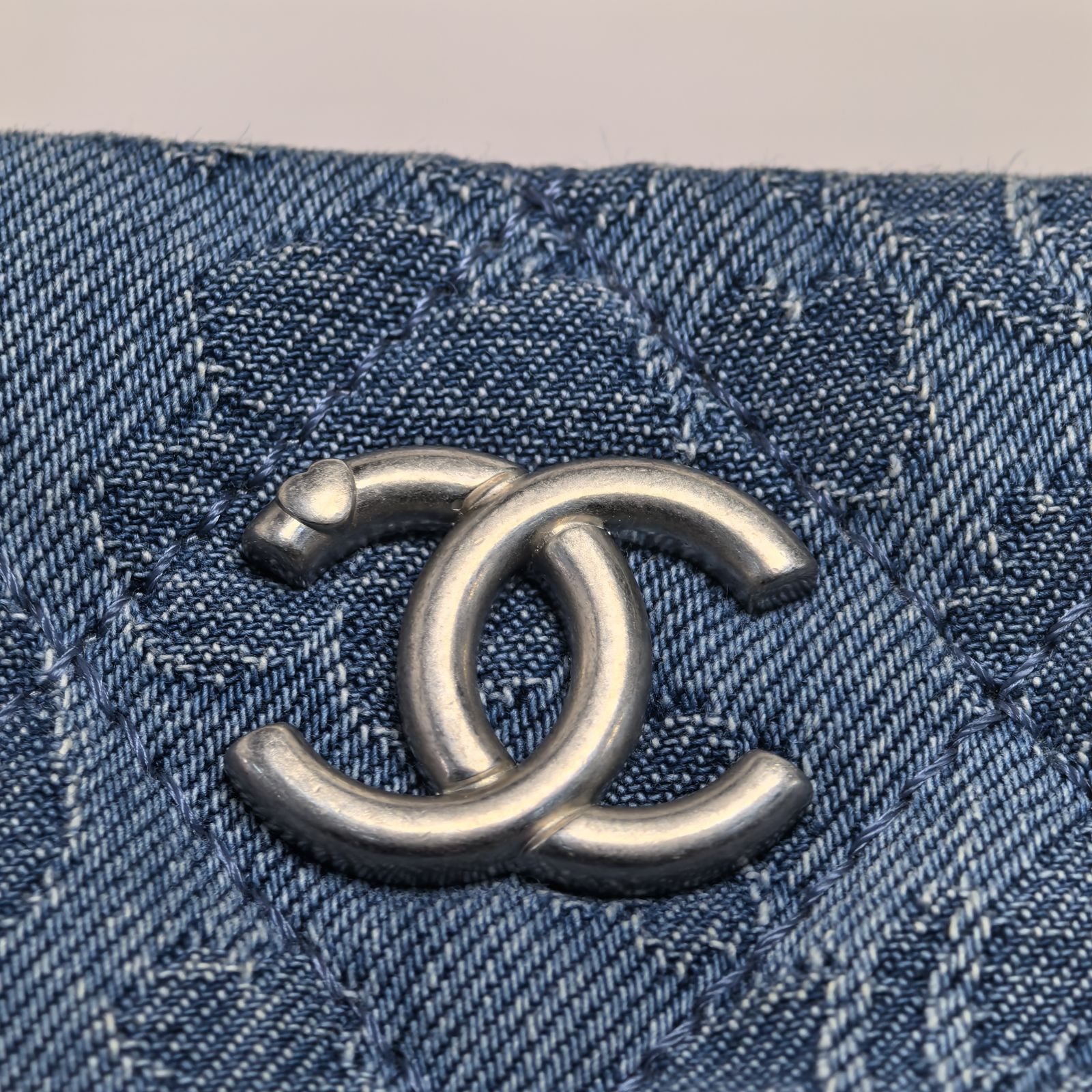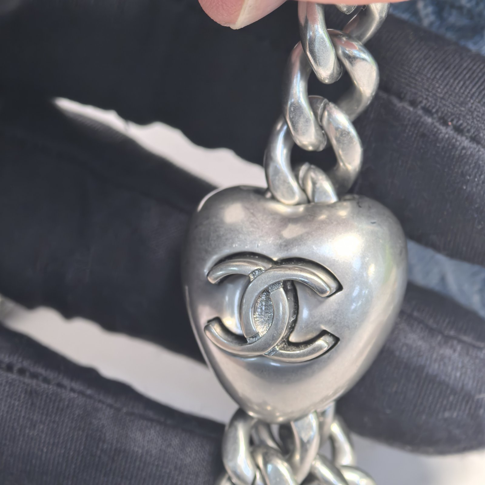 CHANEL Denim Blue Denim Hobo Bag with Heart Gold Ball Strap