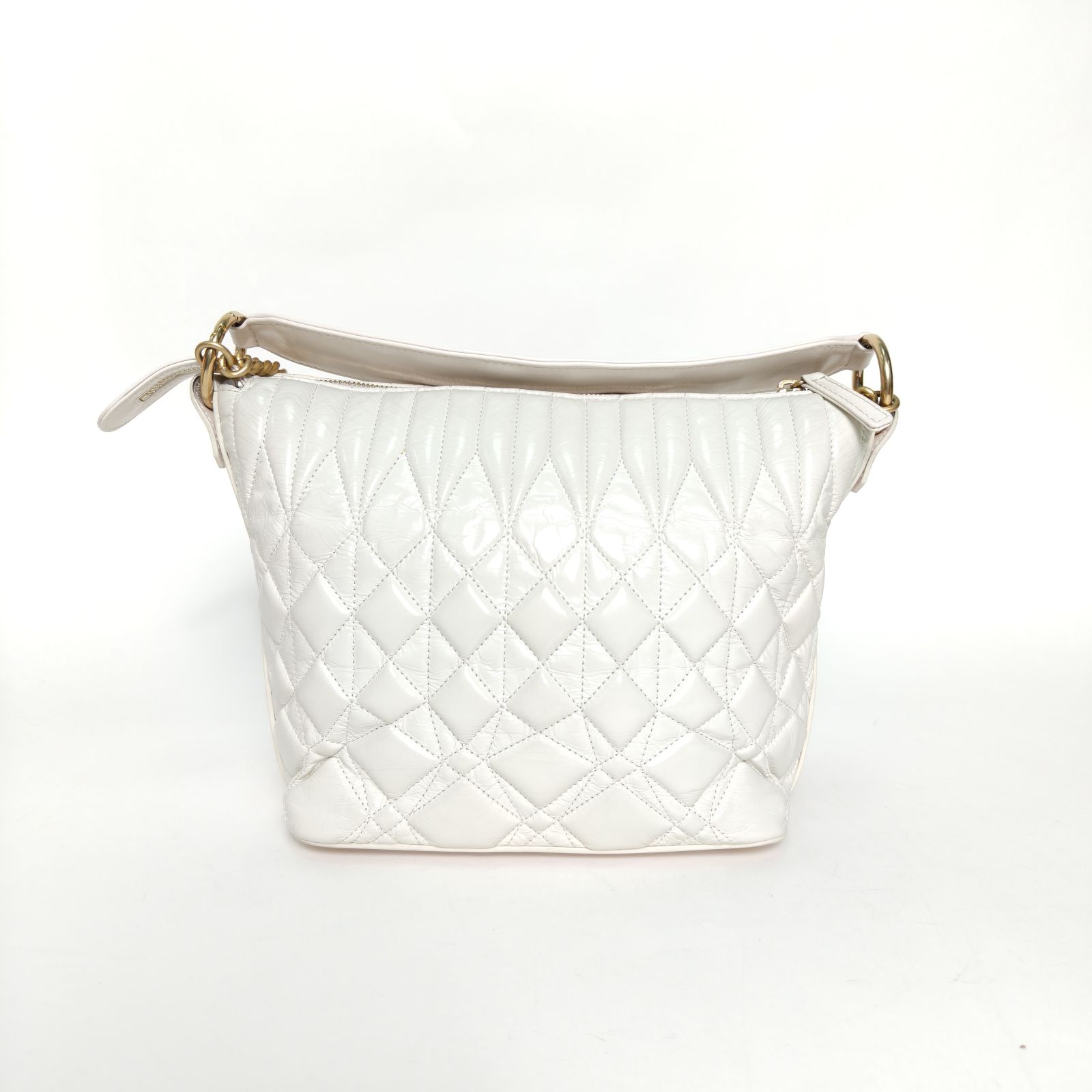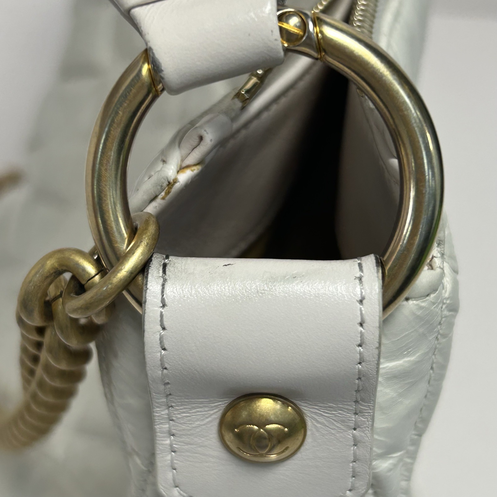 Made from white leather with classic quilting and gold-tone CC hardware, this hobo bag features a detachable chain strap, a stylish daily luxury piece.